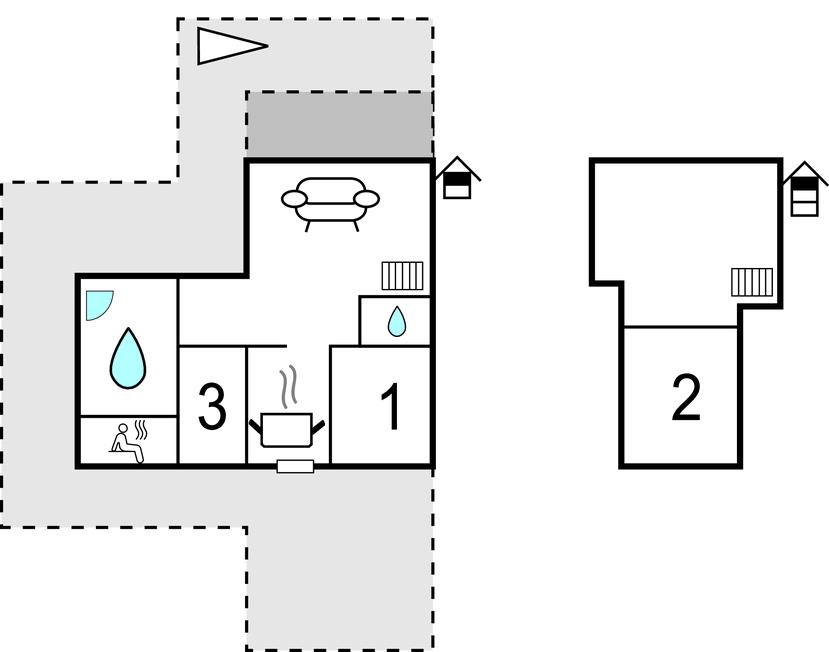 Badeværelse (nr. 1) - WC. Varmt og koldt vand. Bruser