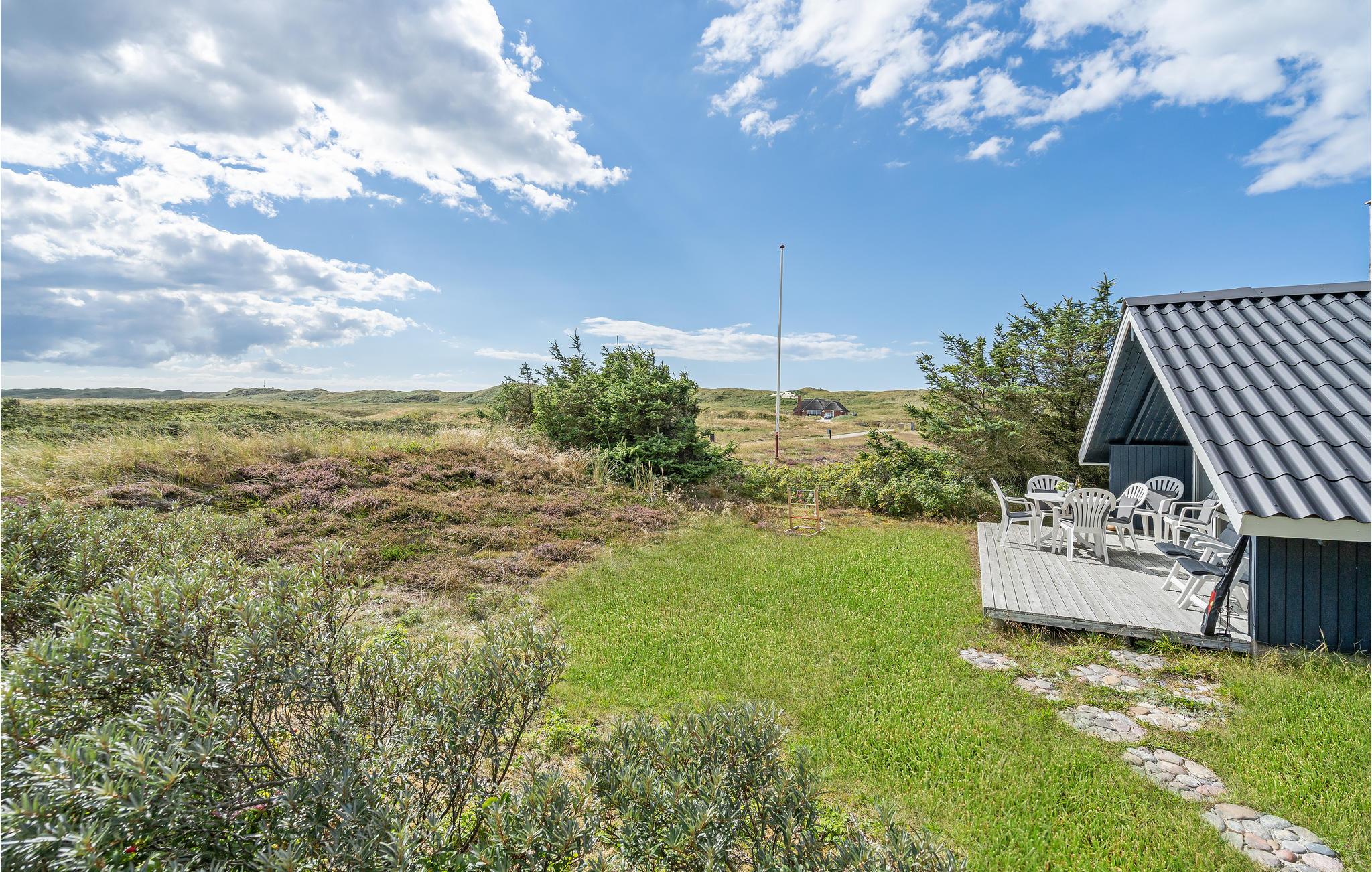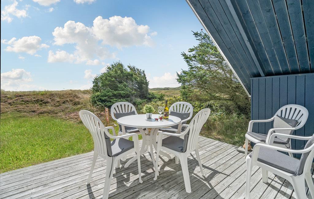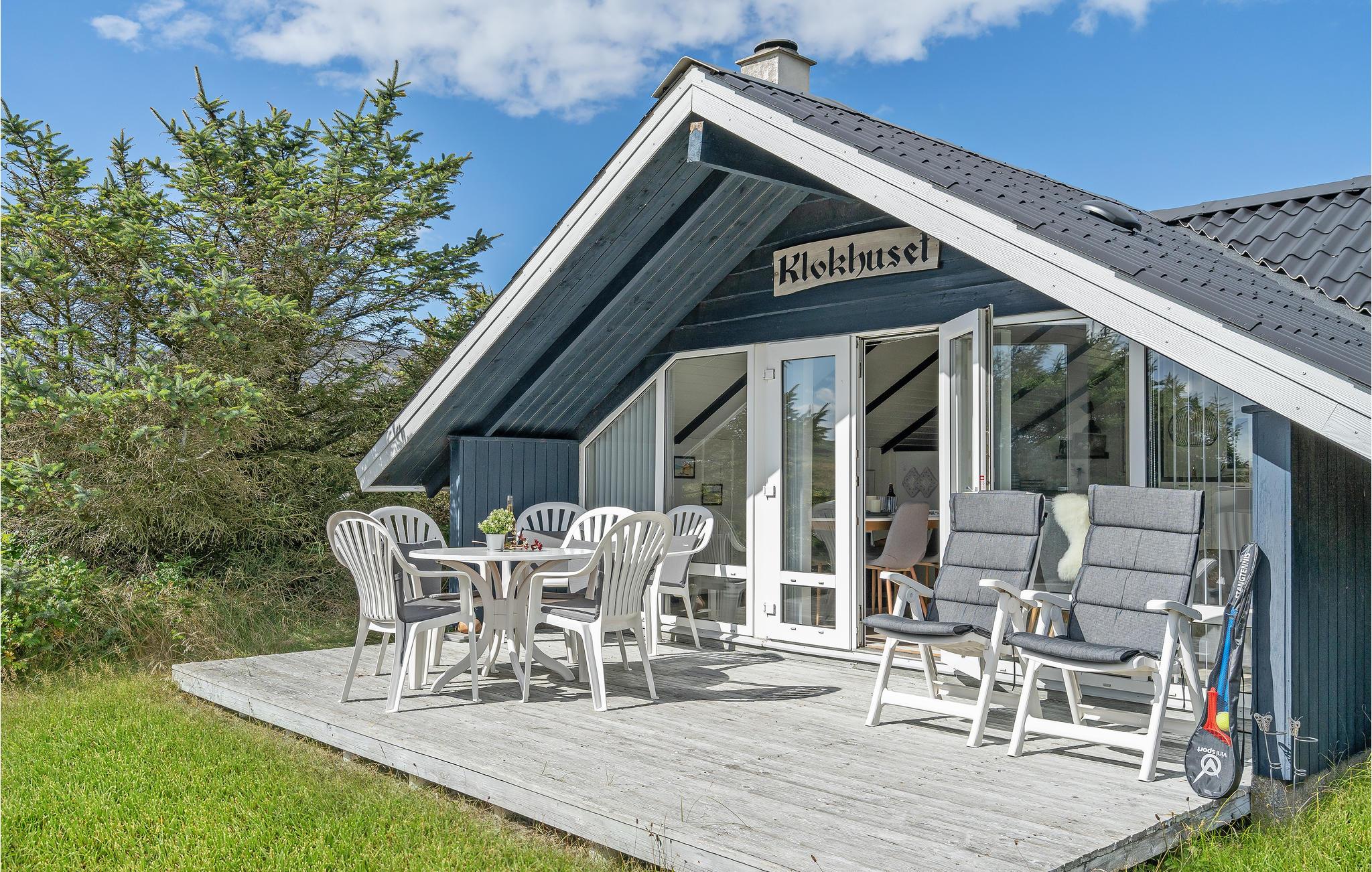 Udendørs finder i en træterrasse med havemøbler til jeres rådighed, så I let kan nyde feriens måltider i det fri og drikke et glas kølig vin på de lune sommeraftener. Fra terrassen har I en skøn udsigt til de omkringliggende klitter - Glæd jer ægte Vesterhavsstemning i "Klukhuset".
