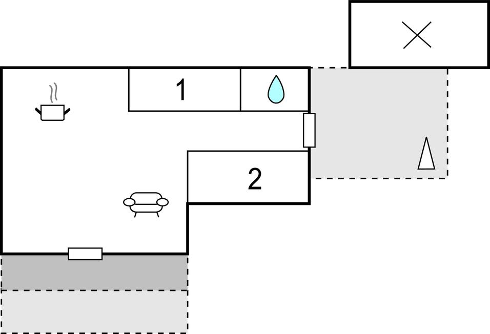 Opholdsstue/køkken - 1 Soveplads. (Sofa, madras eller lignende).