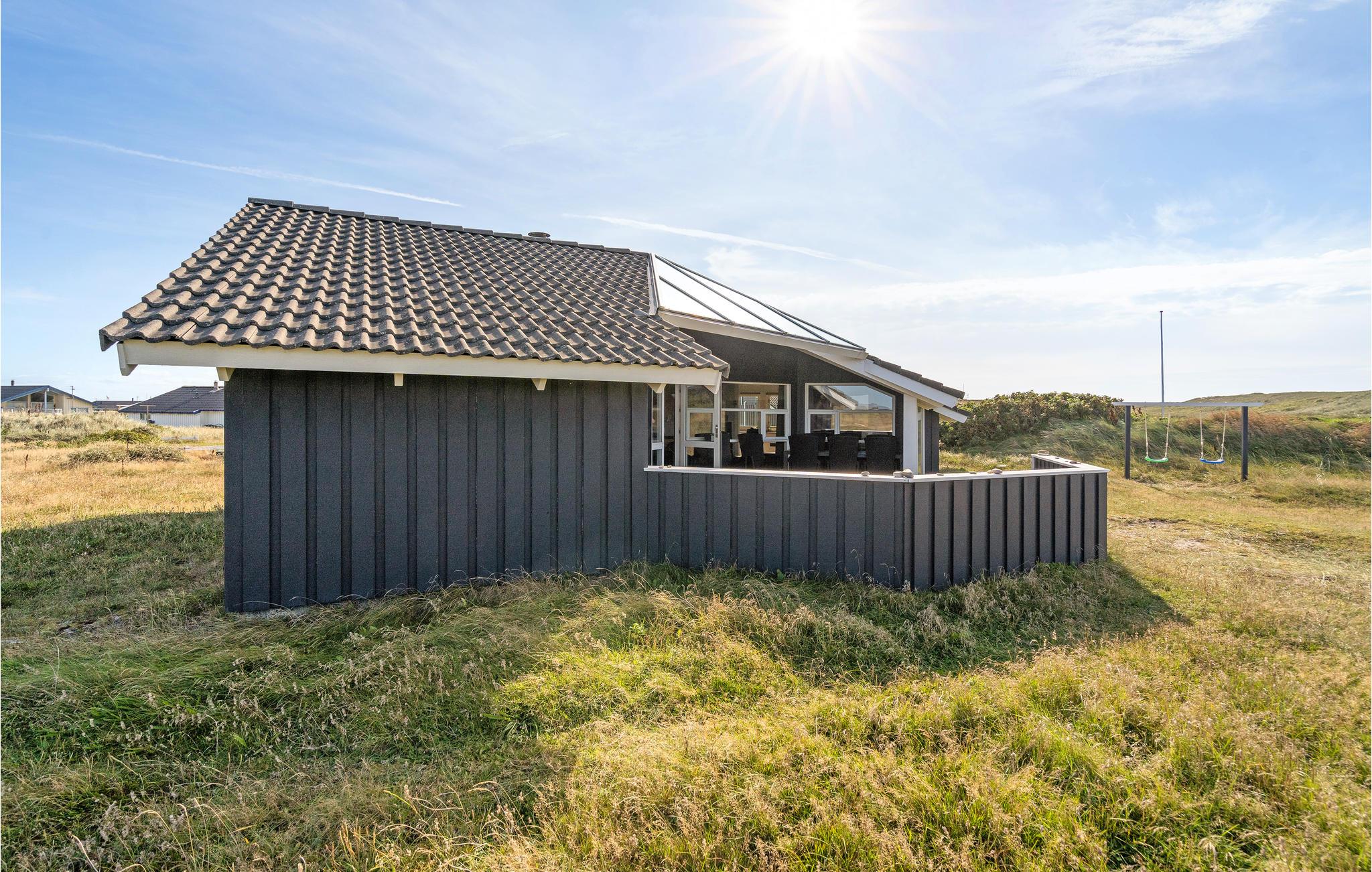 Hyggeligt fritidshus i 1. klitrække ved Vesterhavet med sauna, spabad og smuk udsigt til klitterne.