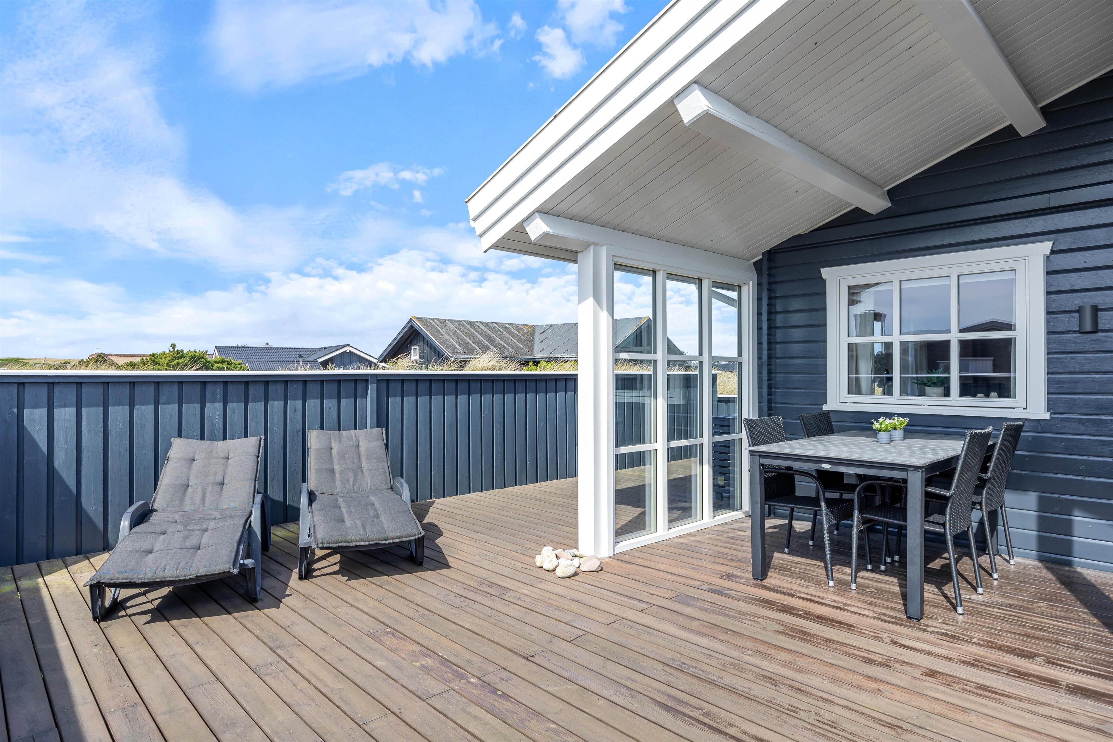 Udvendigt hører 2 skønne terrasser med, som begge er godt afskærmede og helt lukkede. Her kan I altid finde både sol og læ, og ligegyldigt hvad vejret melder, kan I nyde den friske luft fra havemøblerne uden problemer.