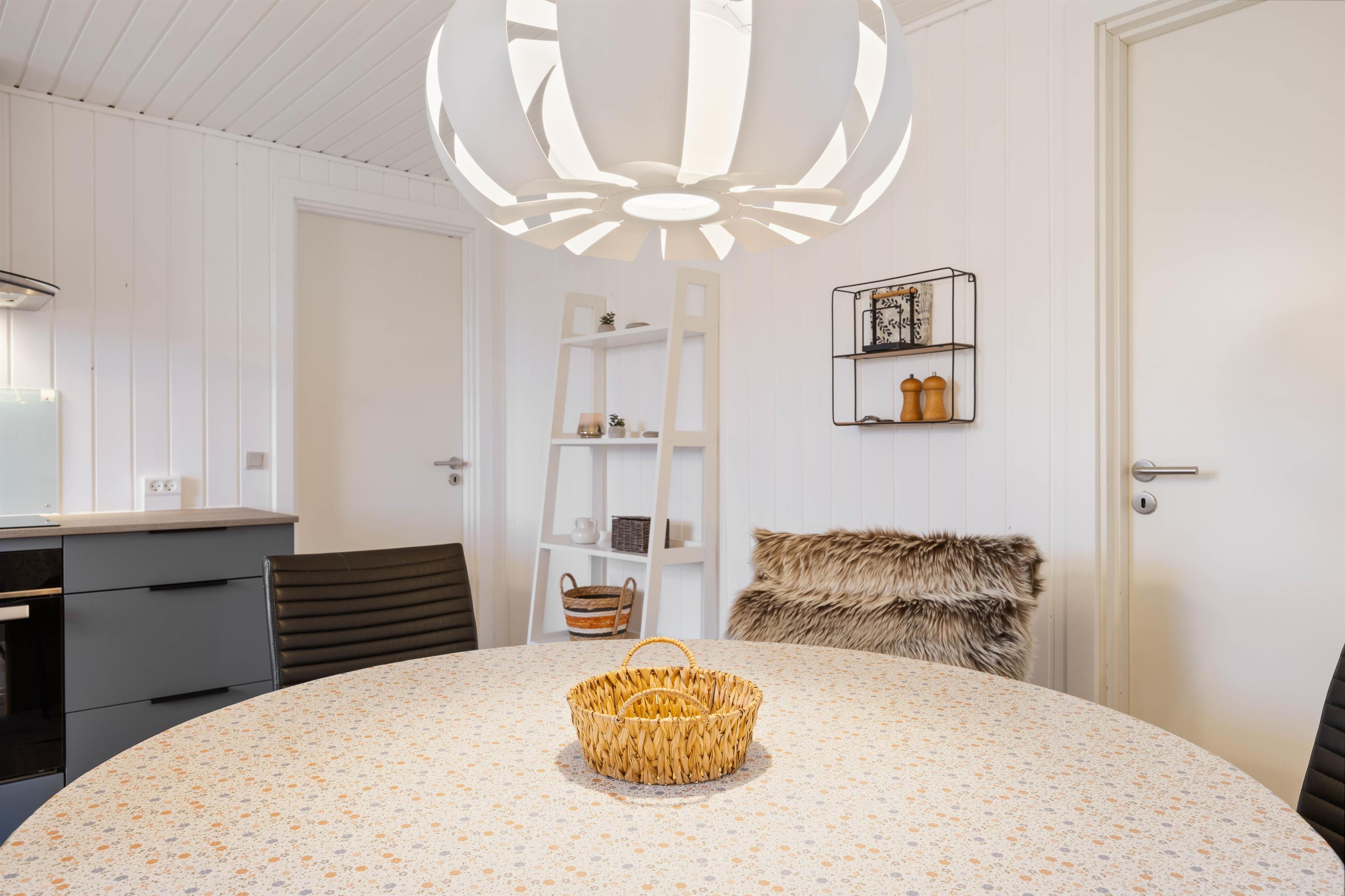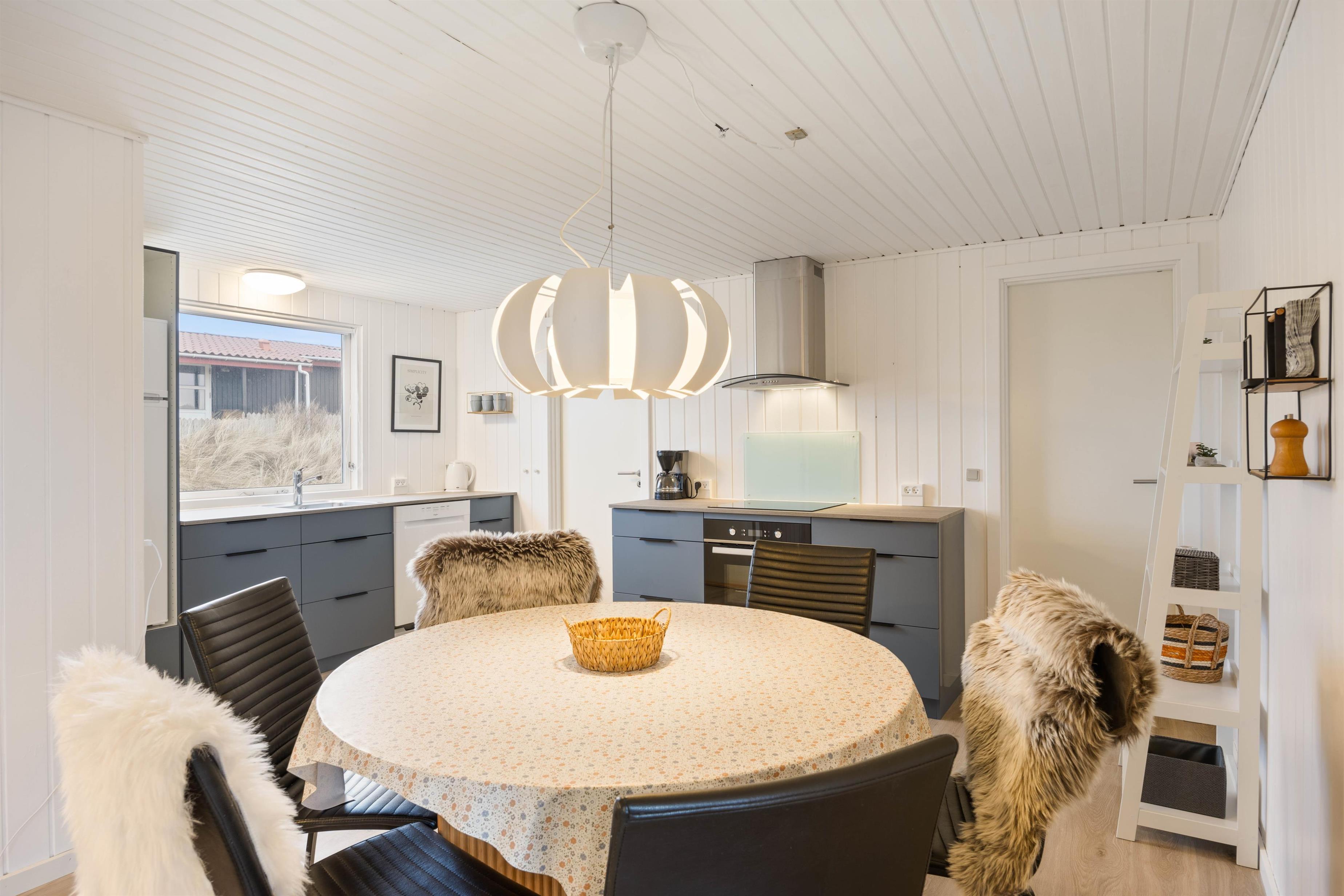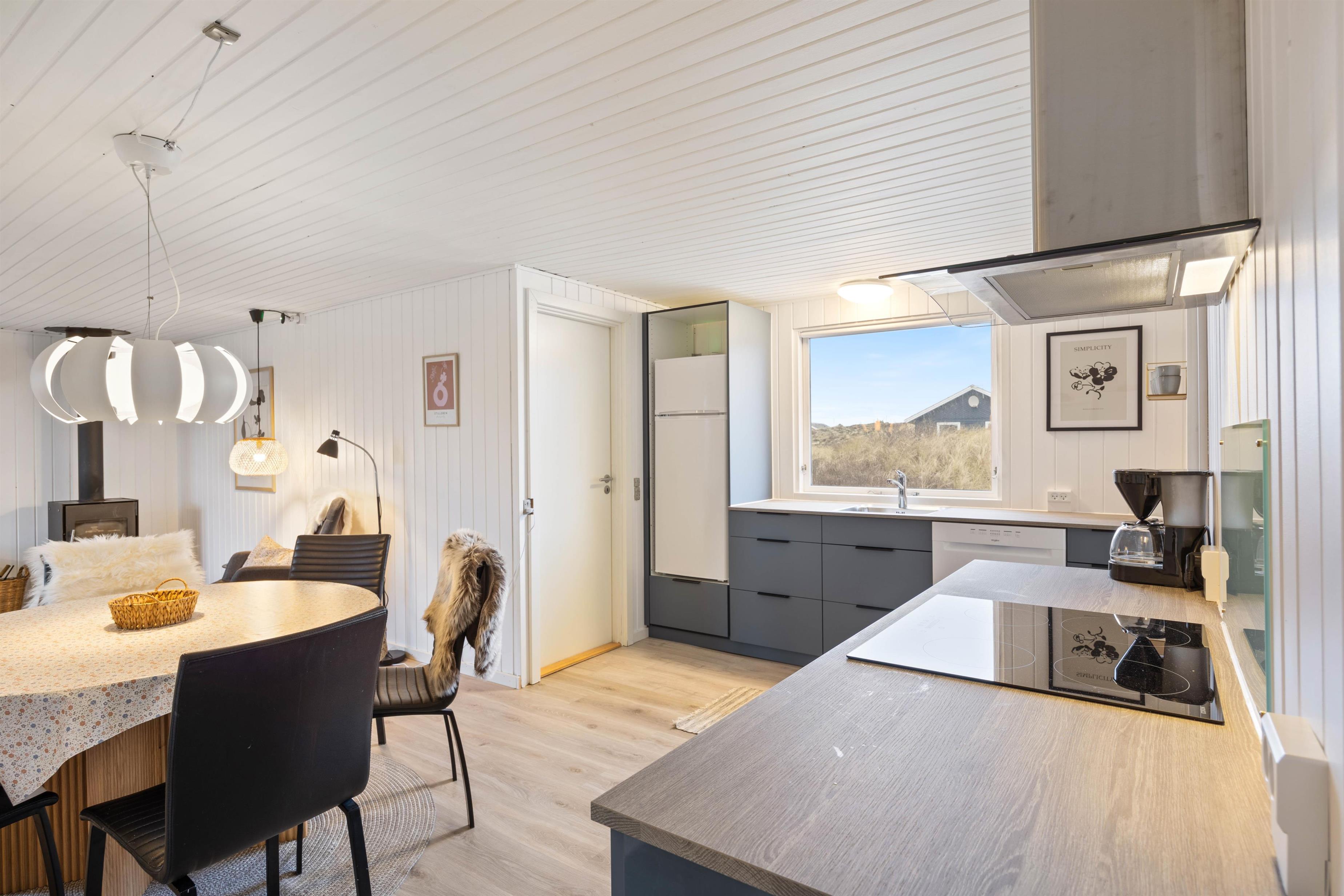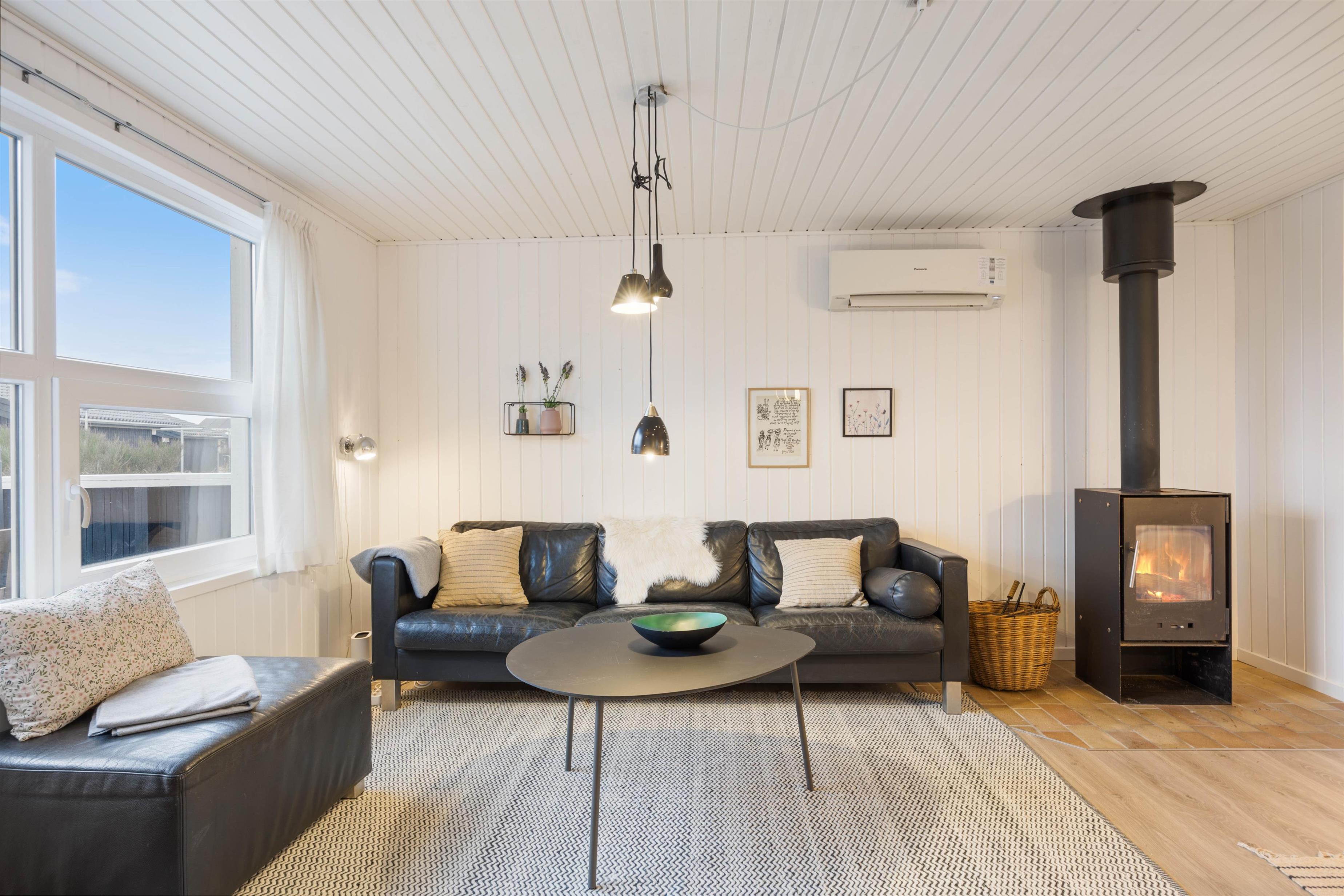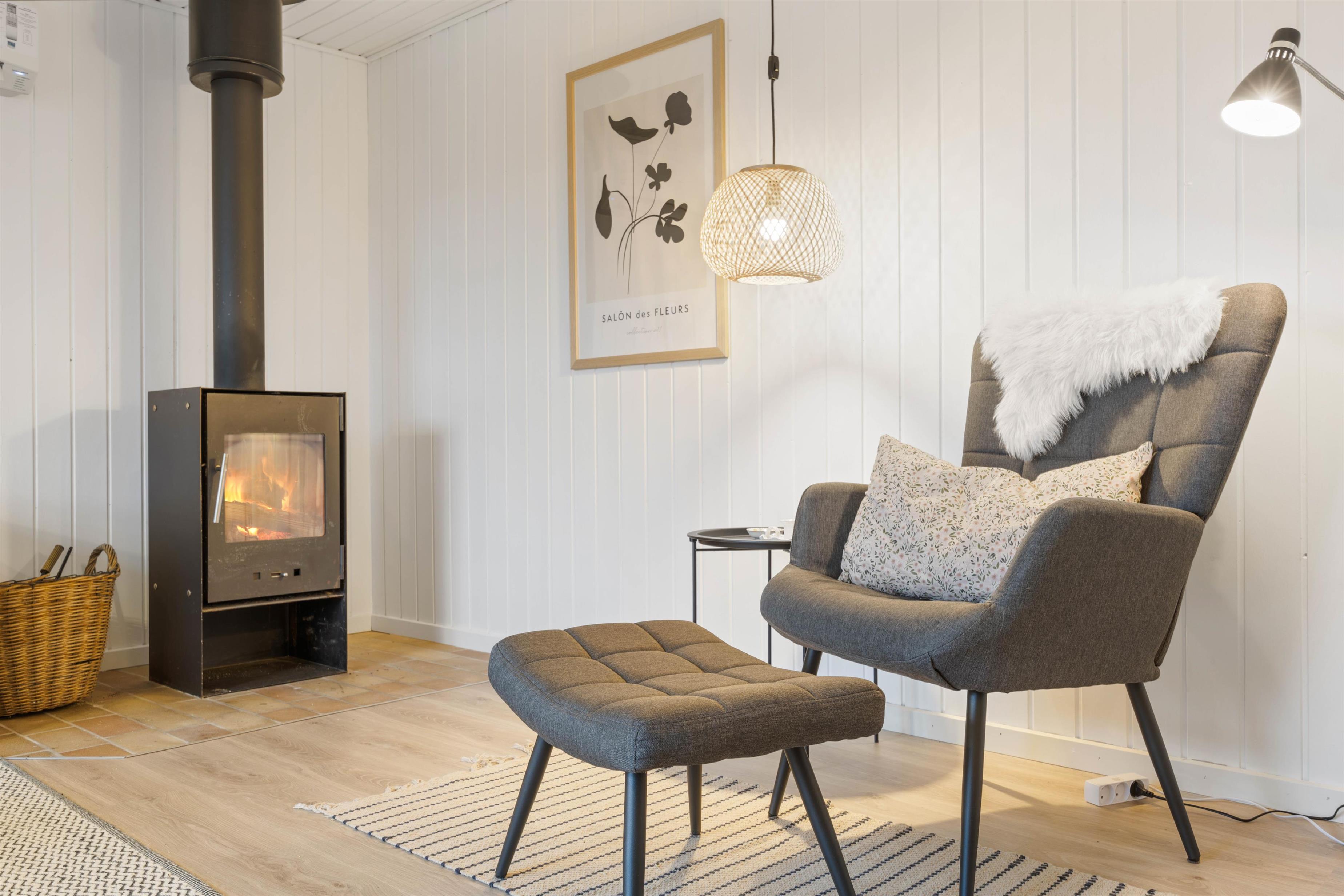 Feriehusets brændeovn sørger for både varme og ægte feriestemning, og på de køligere årstider er den knitrende lyd af flammerne perfekt til at skabe hygge.