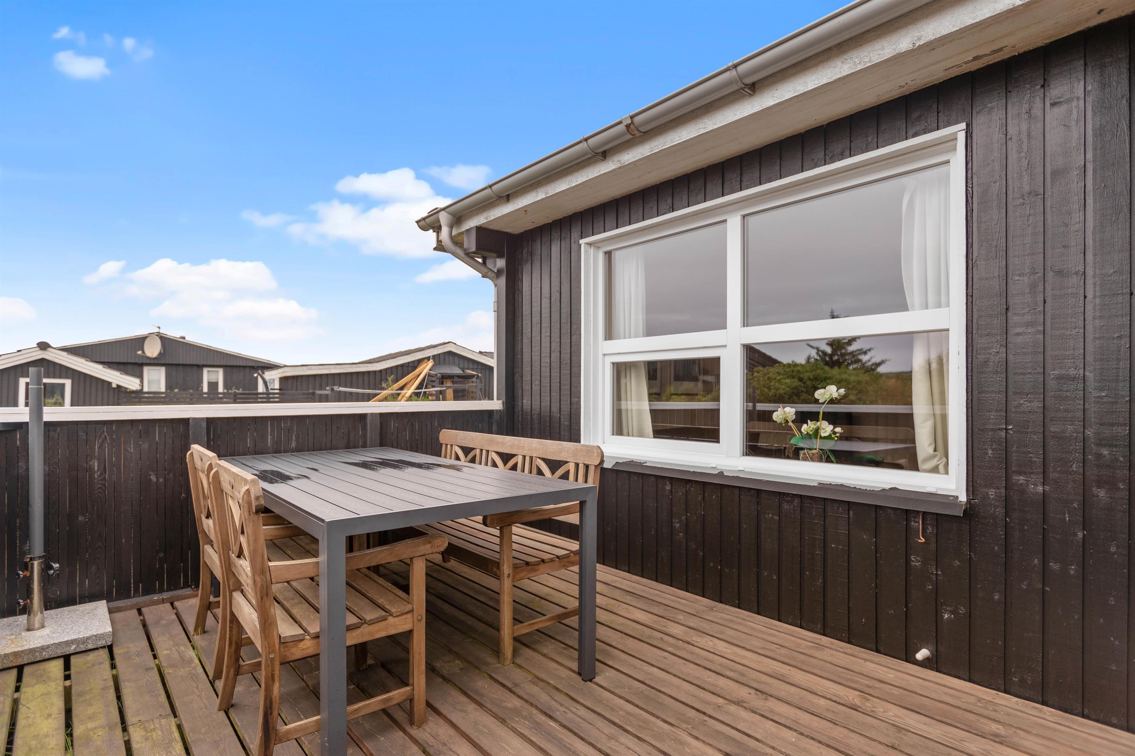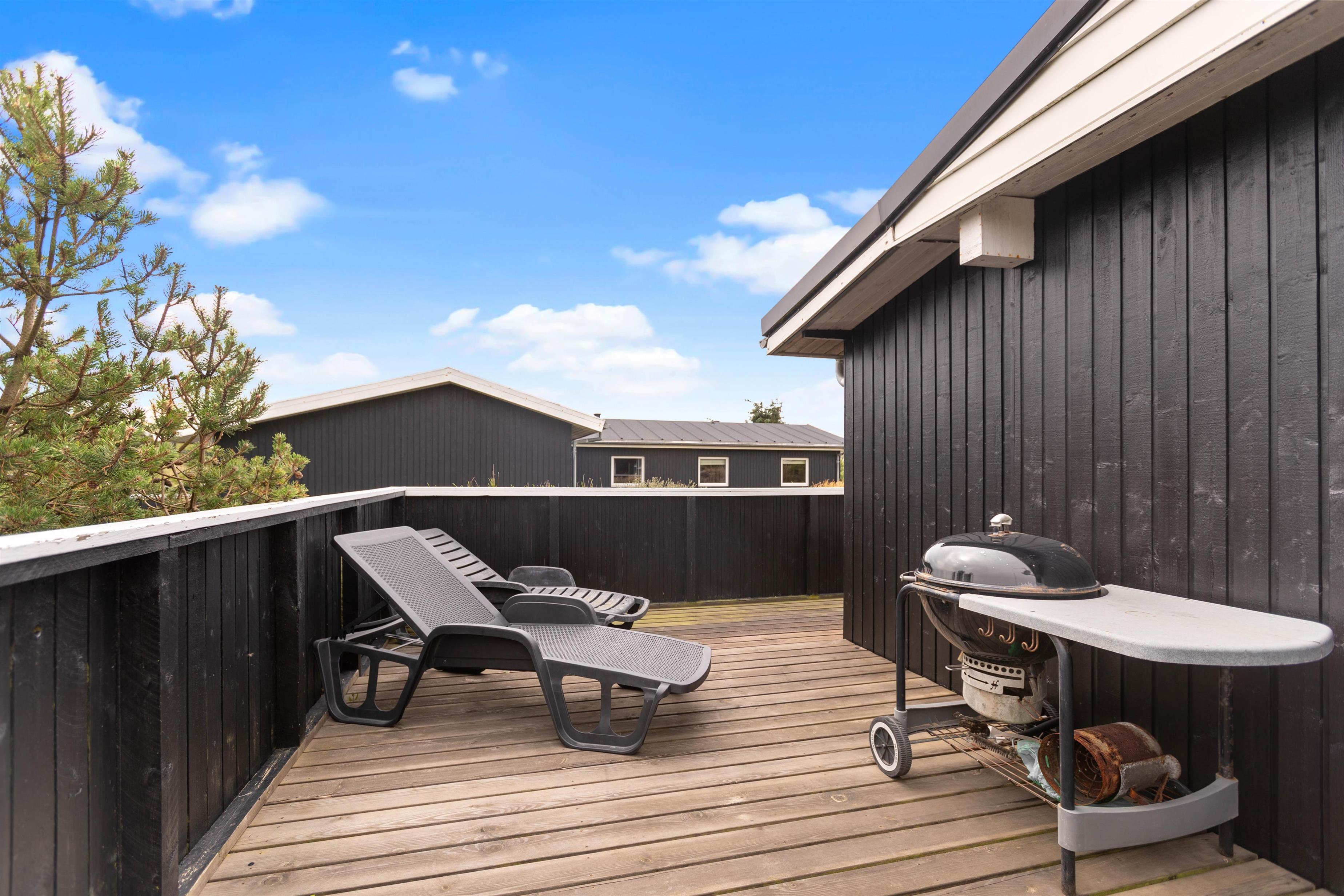 Eftersom terrassen næsten omslutter hele feriehuset, kan I følge med solen hele dagen og udnytte hver eneste stråle. Der står også en grill klar til jer, så I kan holde en hyggelig grillaften med hele familien.