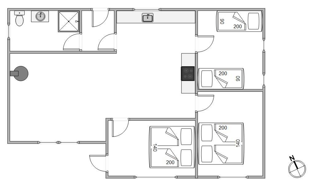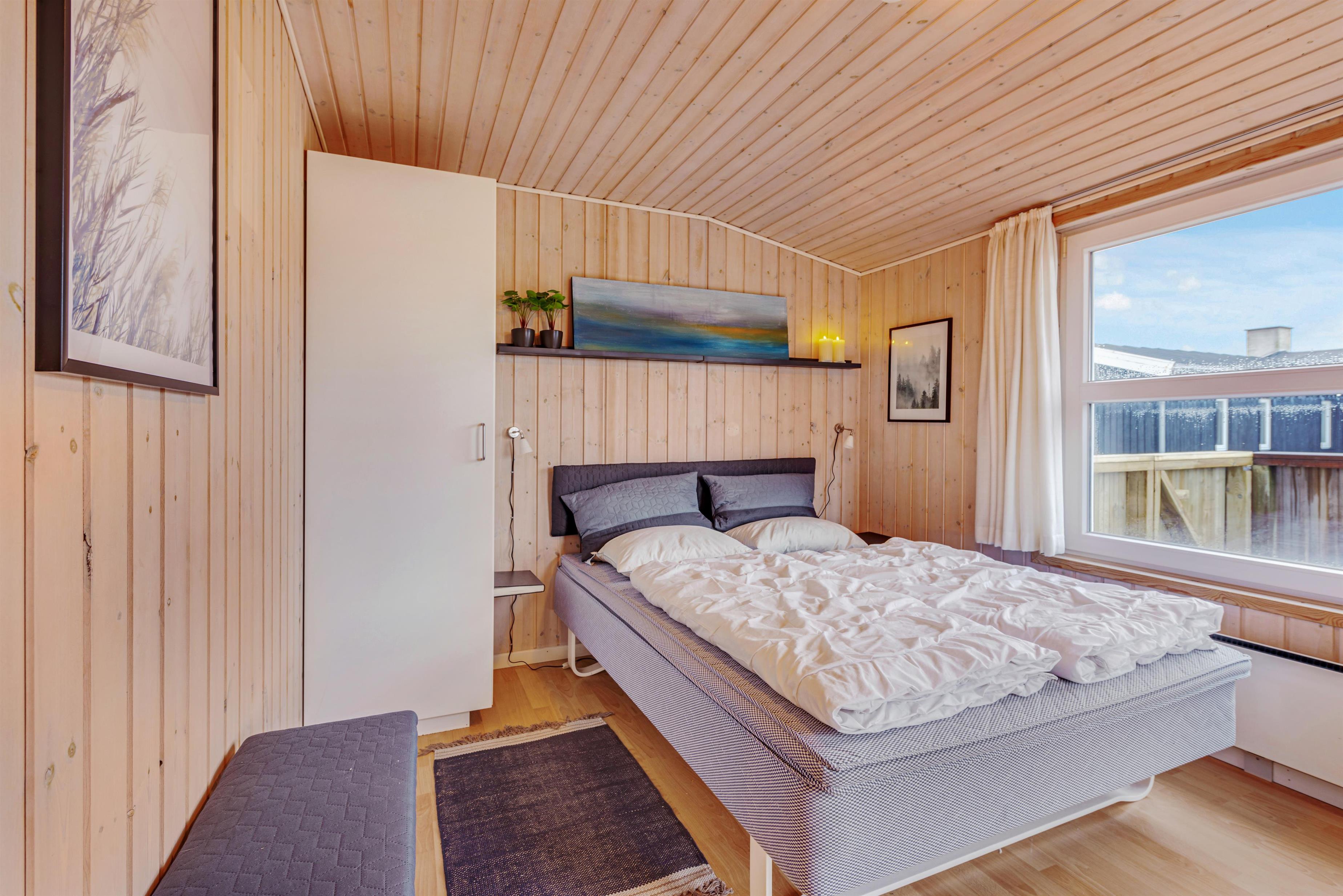 Dette skønne sommerhus på Bjerregårdsvej 215 råder over tre soveværelser – to med dobbeltseng, og et sidste med to enkeltsenge. Der er altså plads til op til 6 personer i sommerhuset. Også de to hunde er velkomne og kan komme med uden beregning.