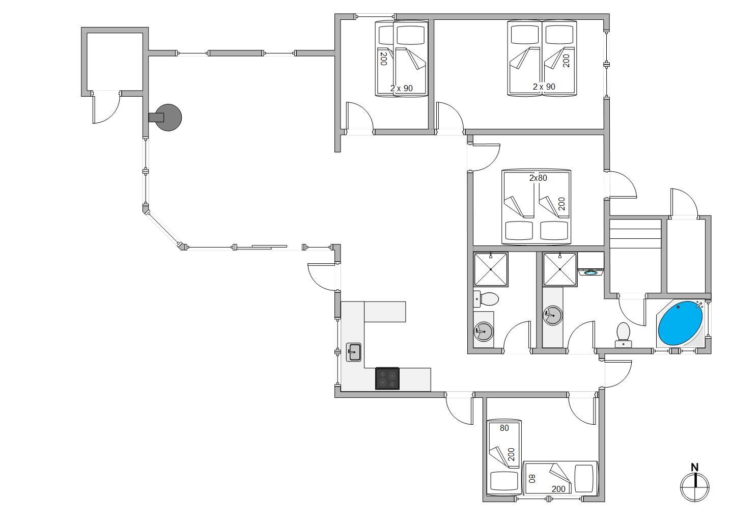 Vil du gerne have lidt komfort i ferien, så er dette hus lige noget for dig. Det er meget smagfuldt indrettet. Med 10 sovepladser er her også plads til 2 familier. Her er 3 dobbeltværelser med boksmadrasser og et børneværelse med køjeseng. På den store hems er der 2 sovepladser, samt lille fjernsyn til DVD eller Playstation.
