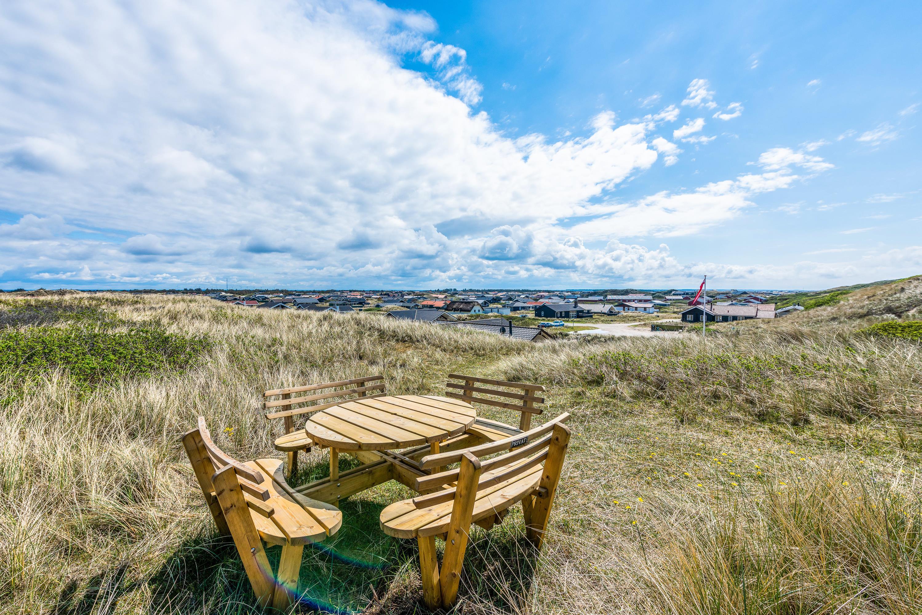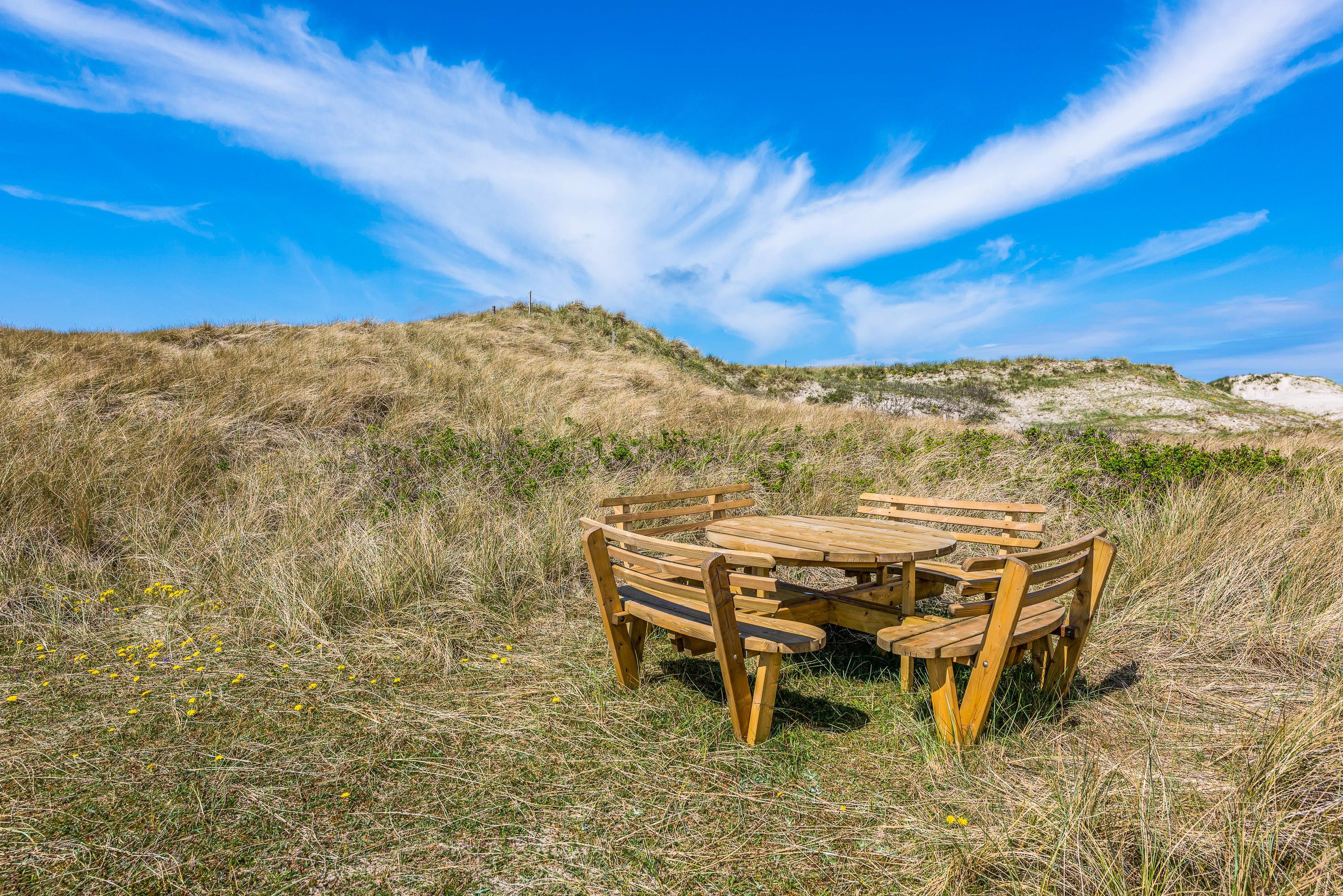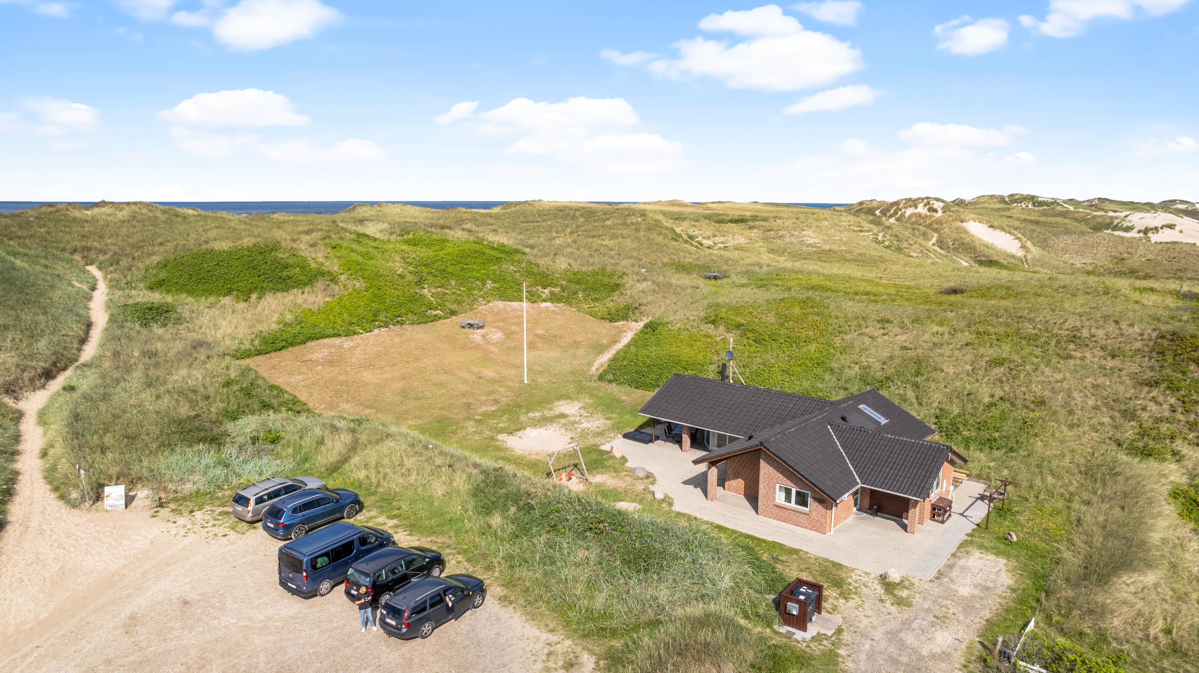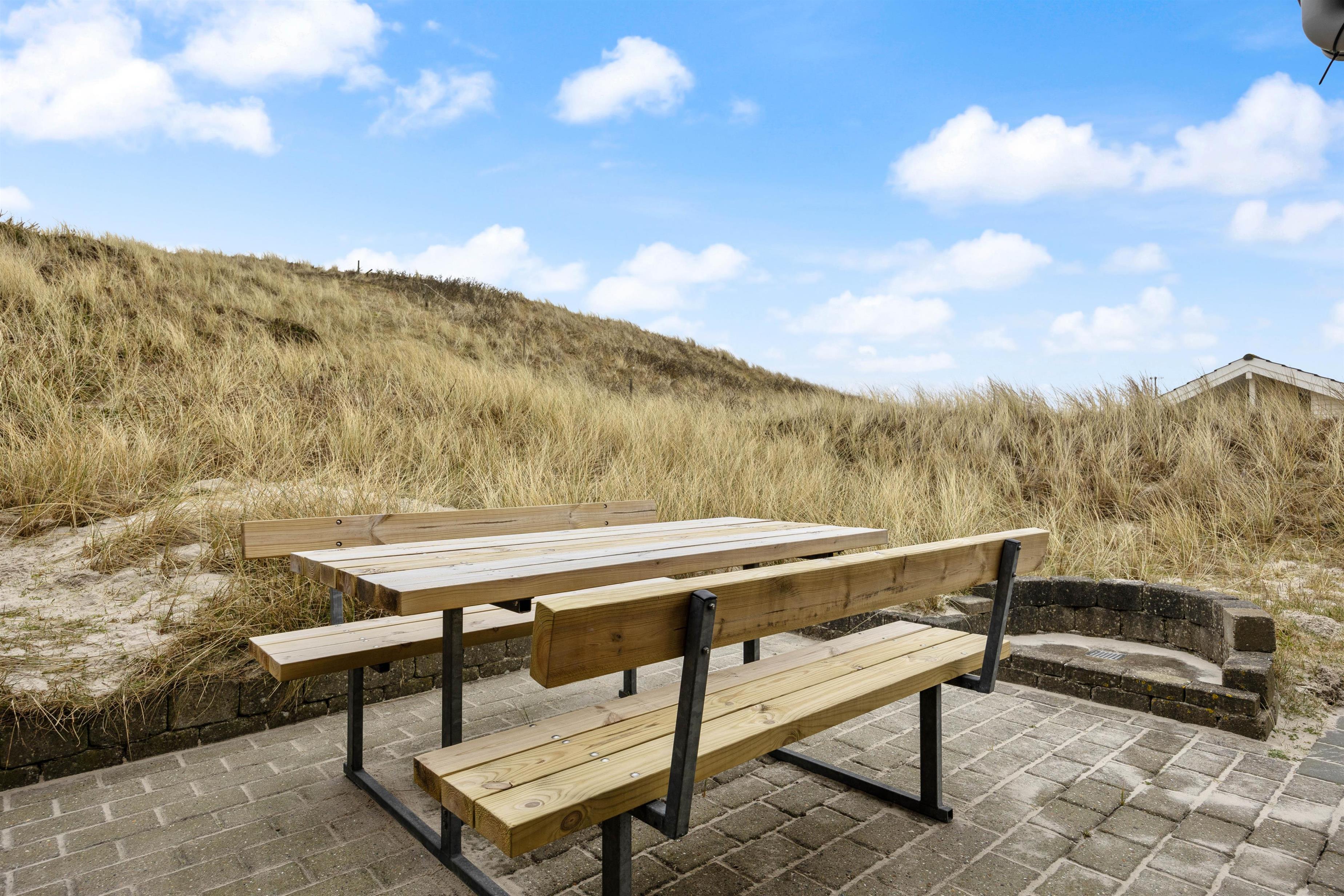 Huset har en supergod beliggenhed lige op af klitten, – så er du frisk på en morgendukkert, kan havet nås på 2 minutter. Terrassen er naturlig afskærmet for nysgerrige blikke og går hele vejen rundt om huset, så her finder du altid en læfyldt plet.
