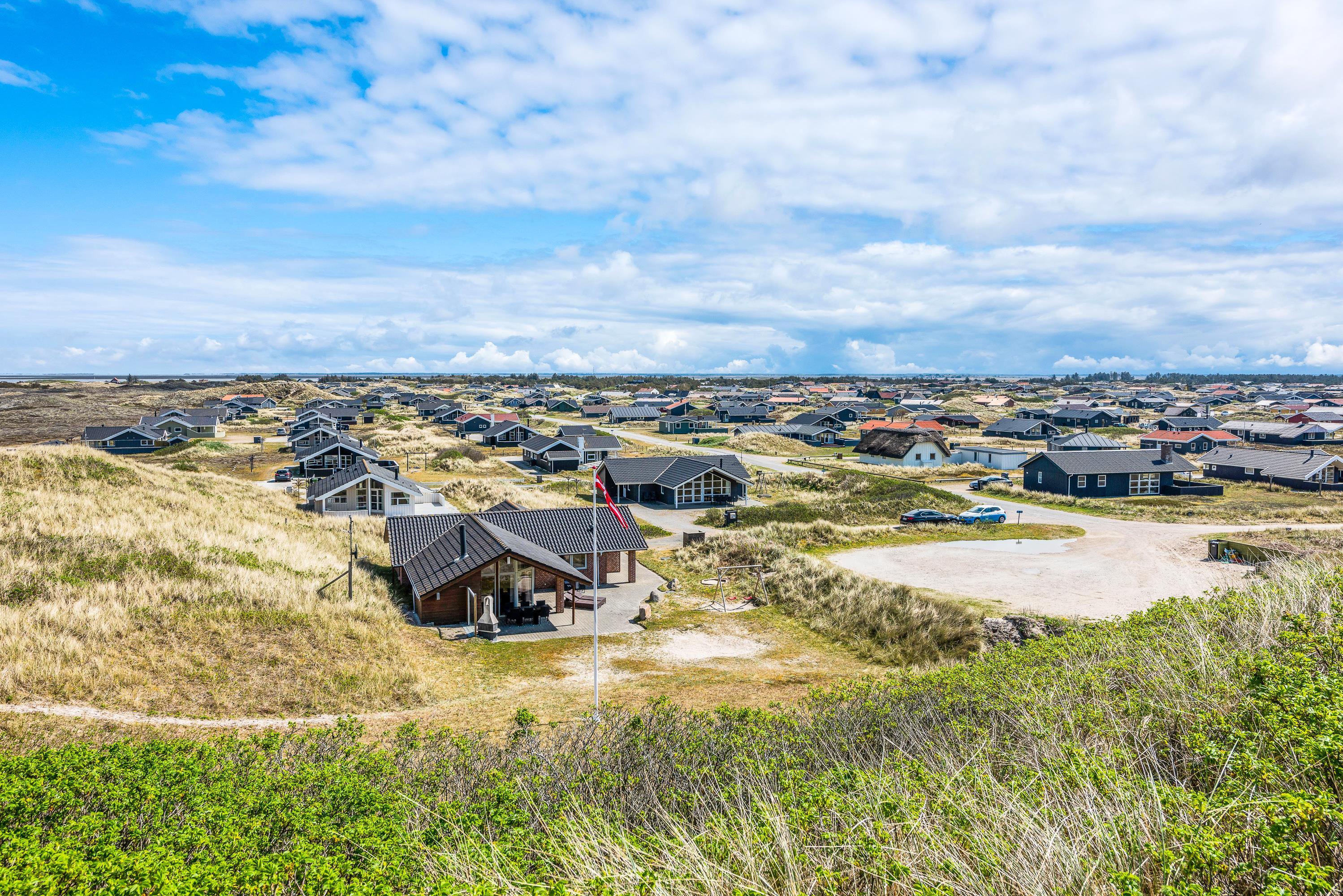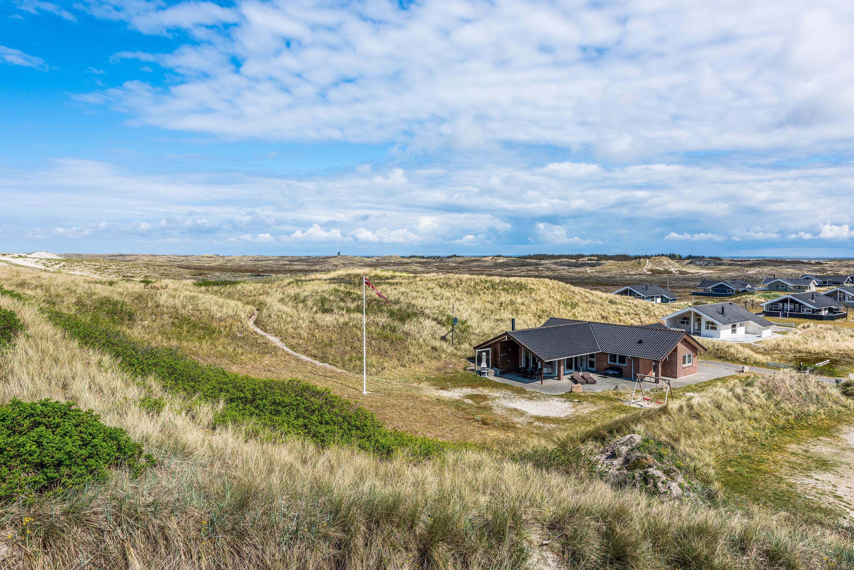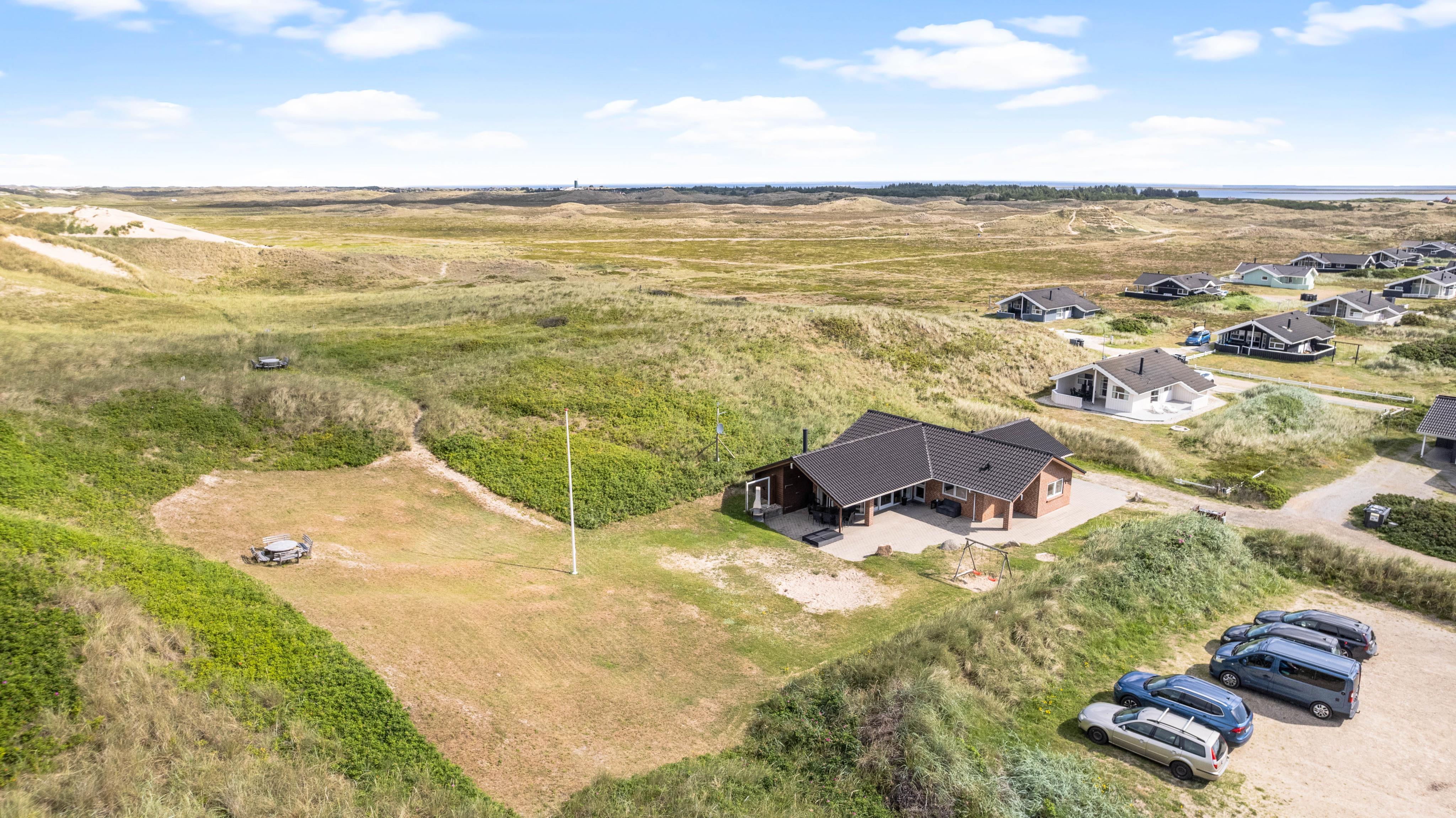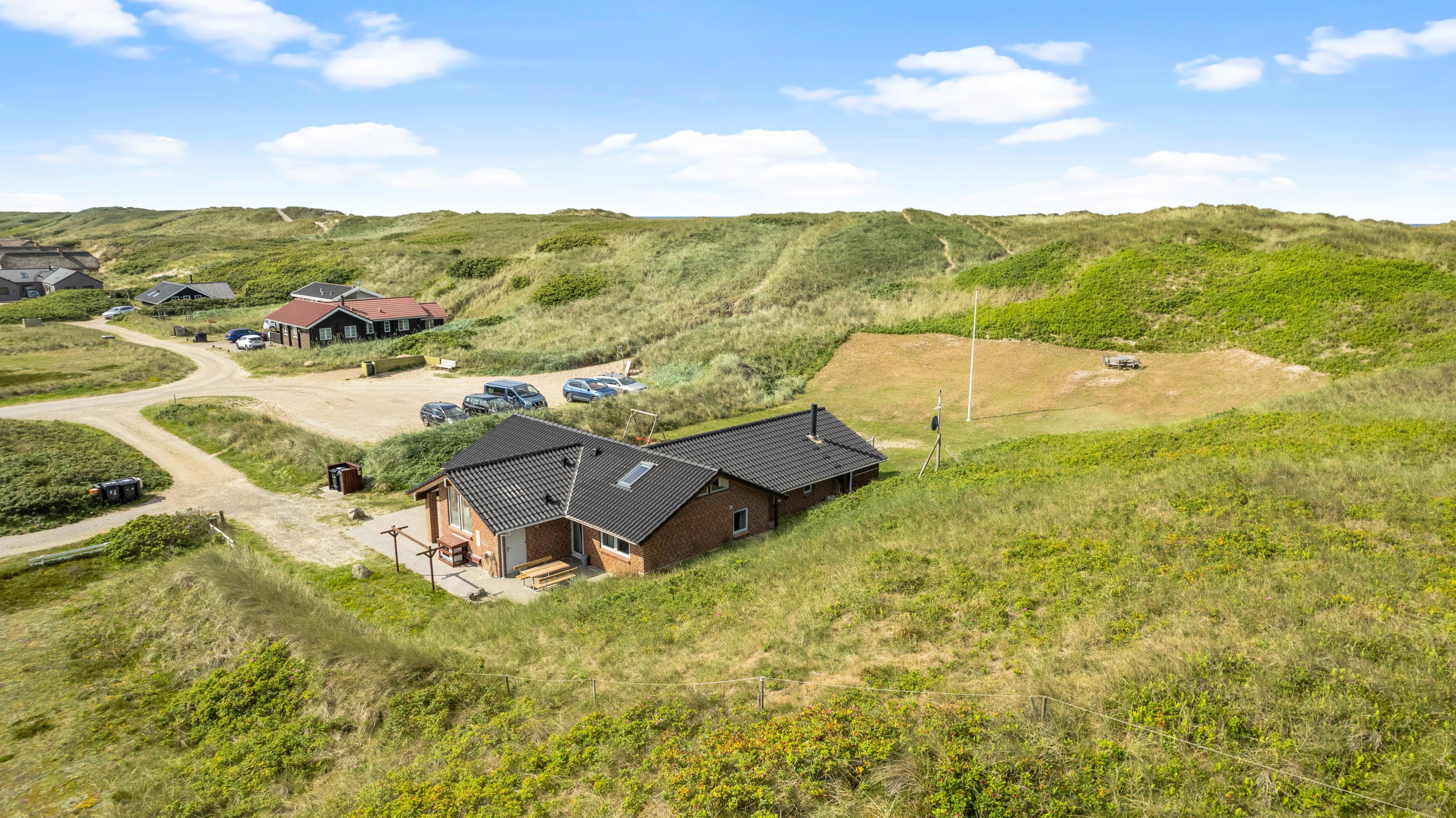 Huset har en supergod beliggenhed lige op af klitten, – så er du frisk på en morgendukkert, kan havet nås på 2 minutter. Terrassen er naturlig afskærmet for nysgerrige blikke og går hele vejen rundt om huset, så her finder du altid en læfyldt plet.