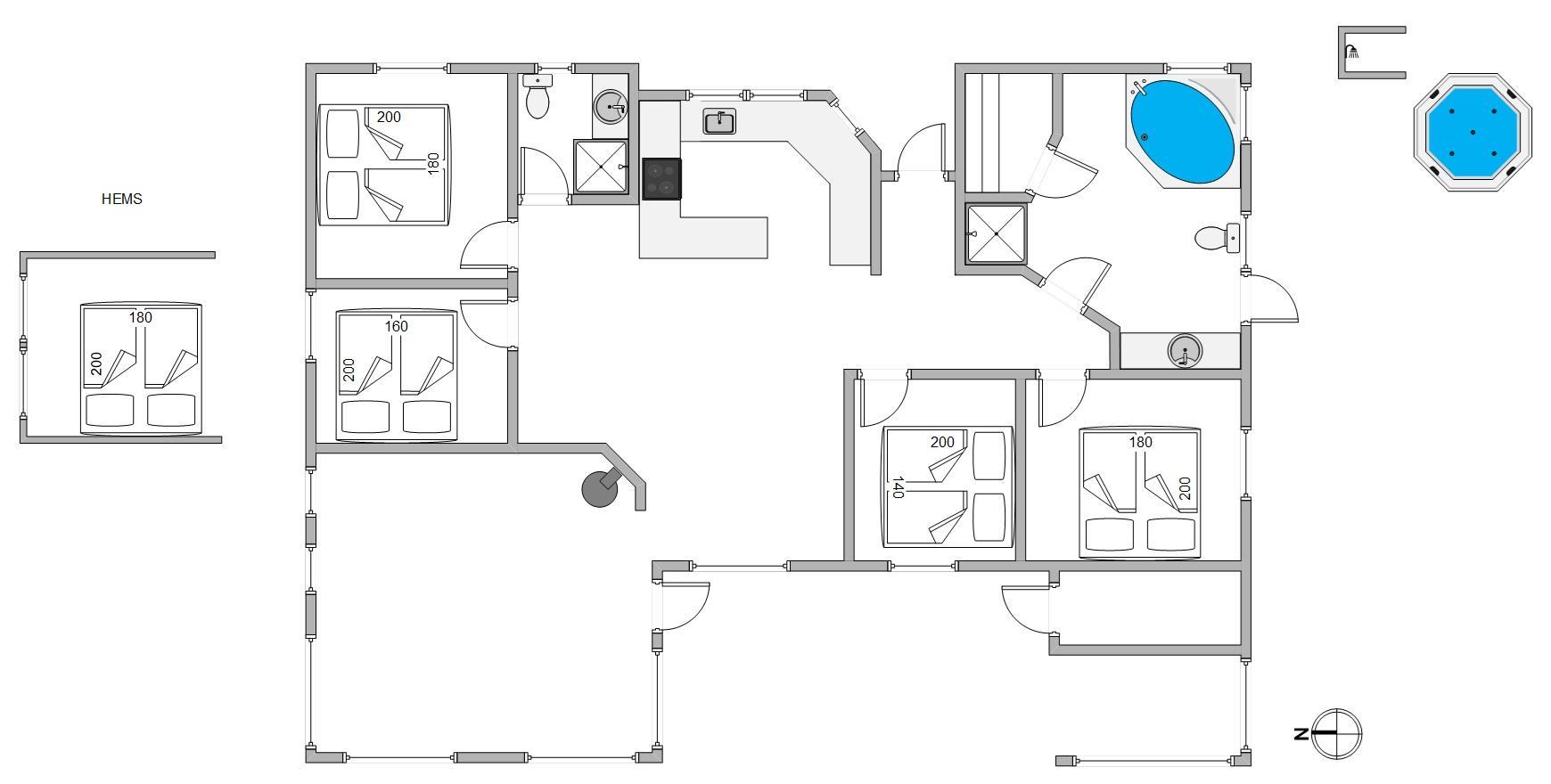 En god og oplevelsesrig feriedag kan afsluttes med en tur i den varme udespa, inden sengen kalder. Om sommeren kan I få et hurtigt skyl under udendørsbruseren efter din tur i wellnessområdet. Udebruseren kan benyttes fra april til november.