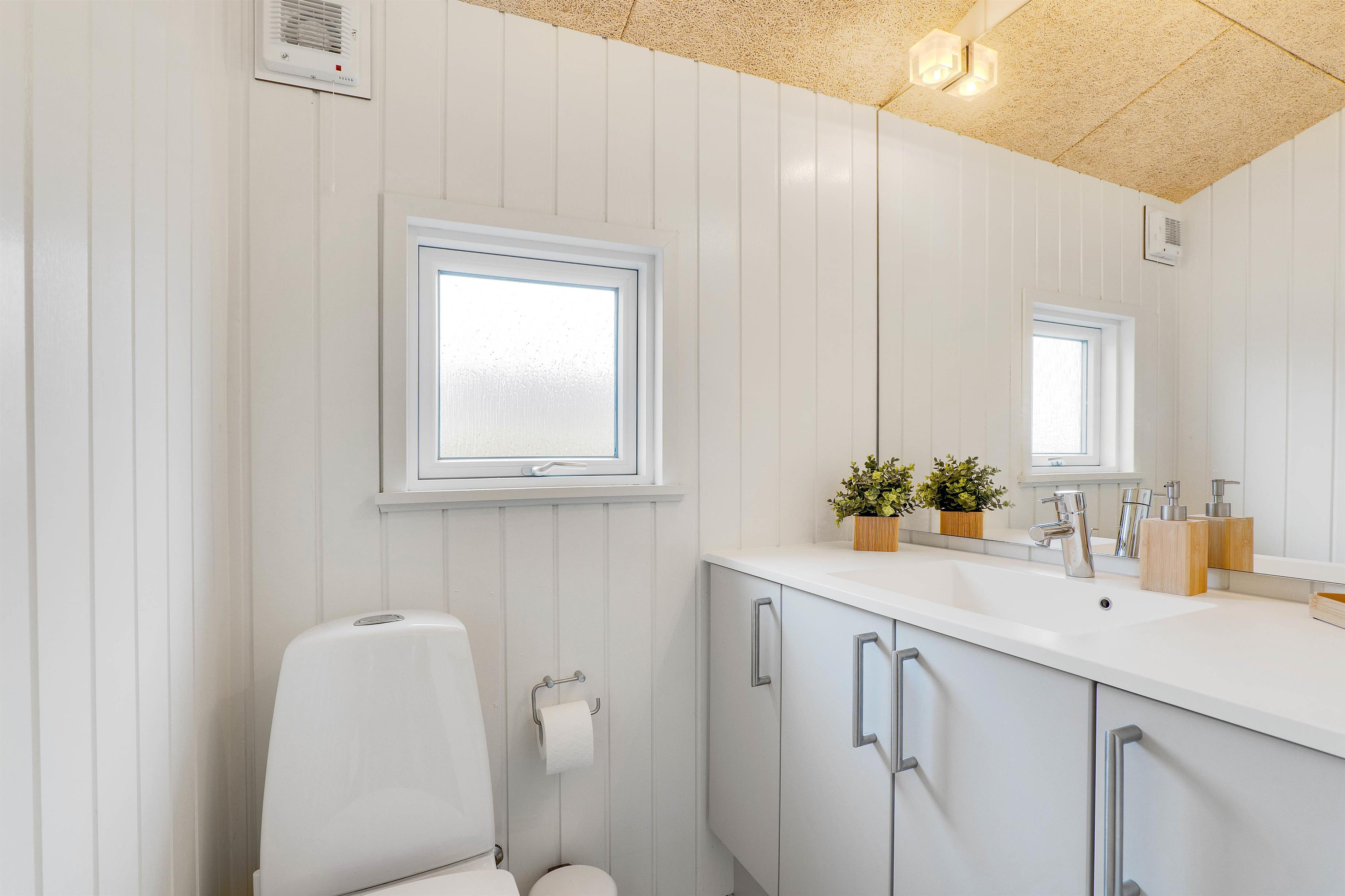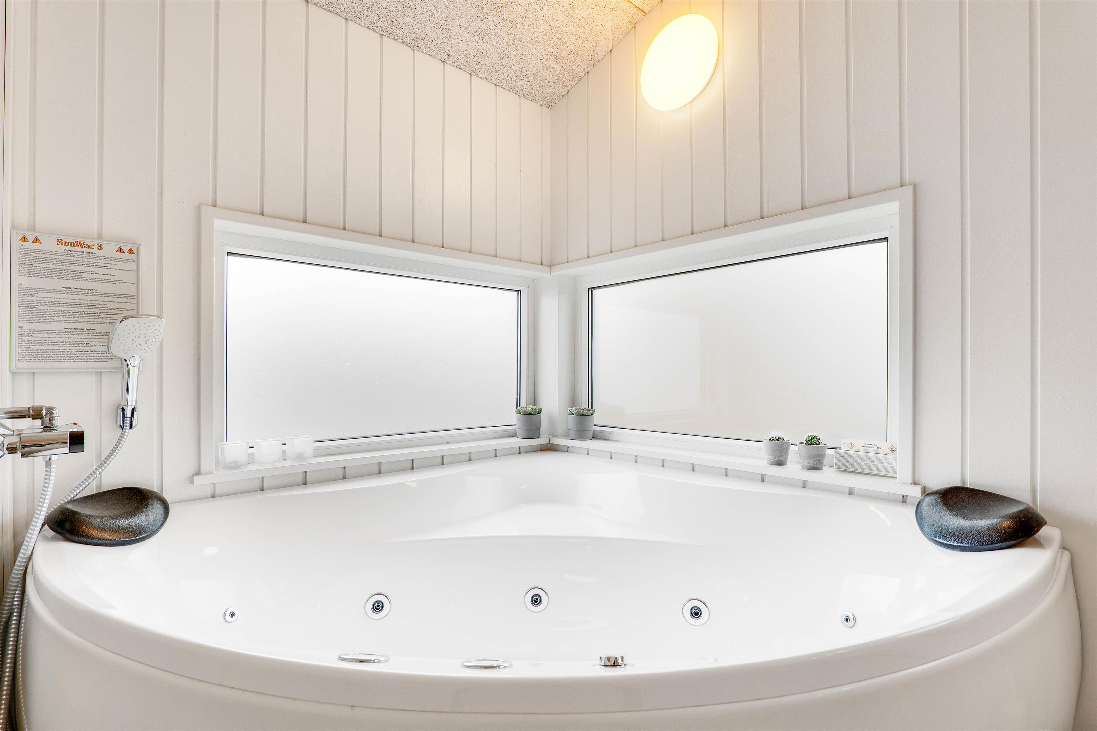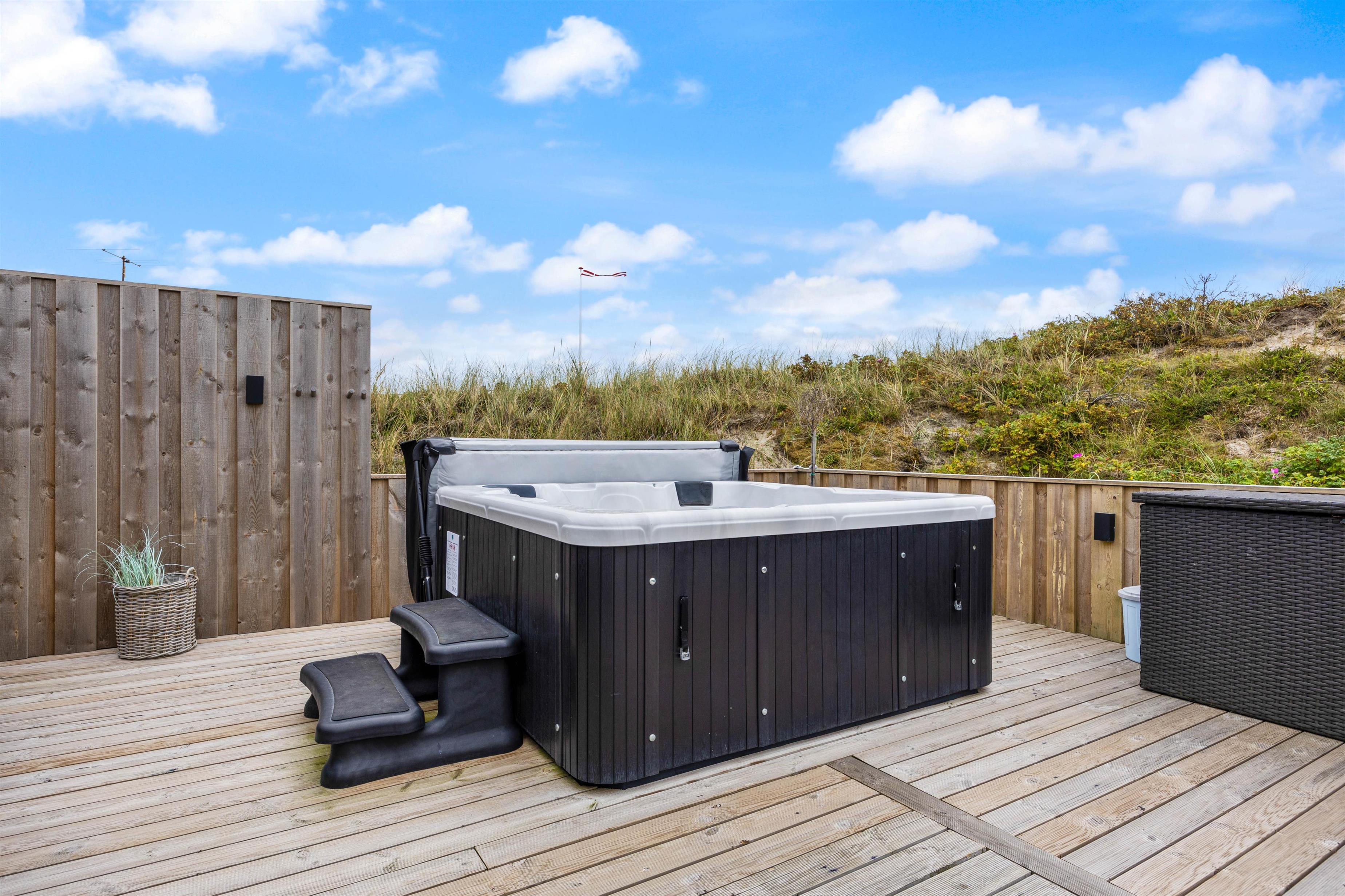 Efter turene til den nærliggende, vidunderlige strand er der mulighed for total afslapning og wellness i den store afdeling med spa og sauna. Her og i det praktiske gæstebadeværelse med bruser er der gulvvarme.