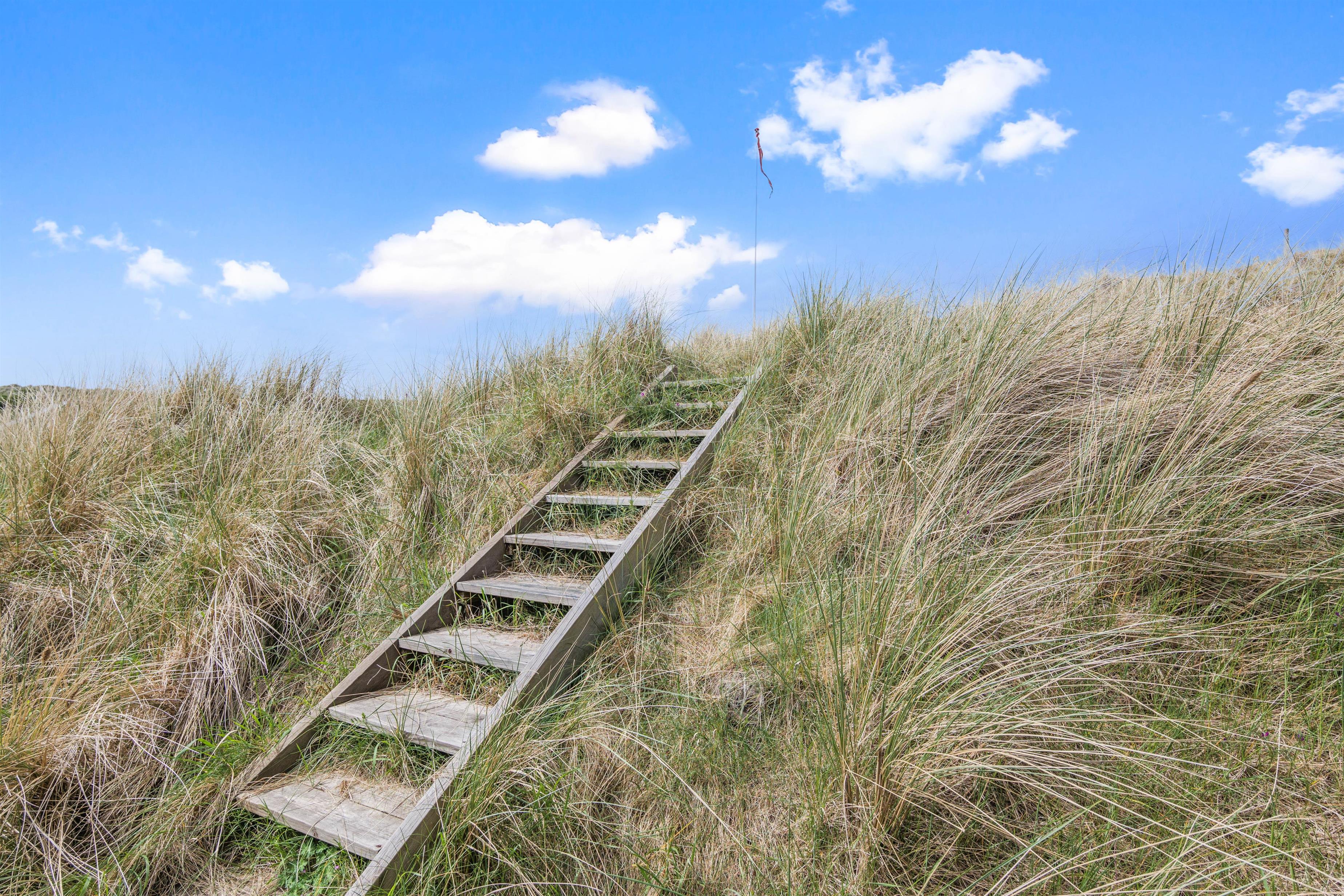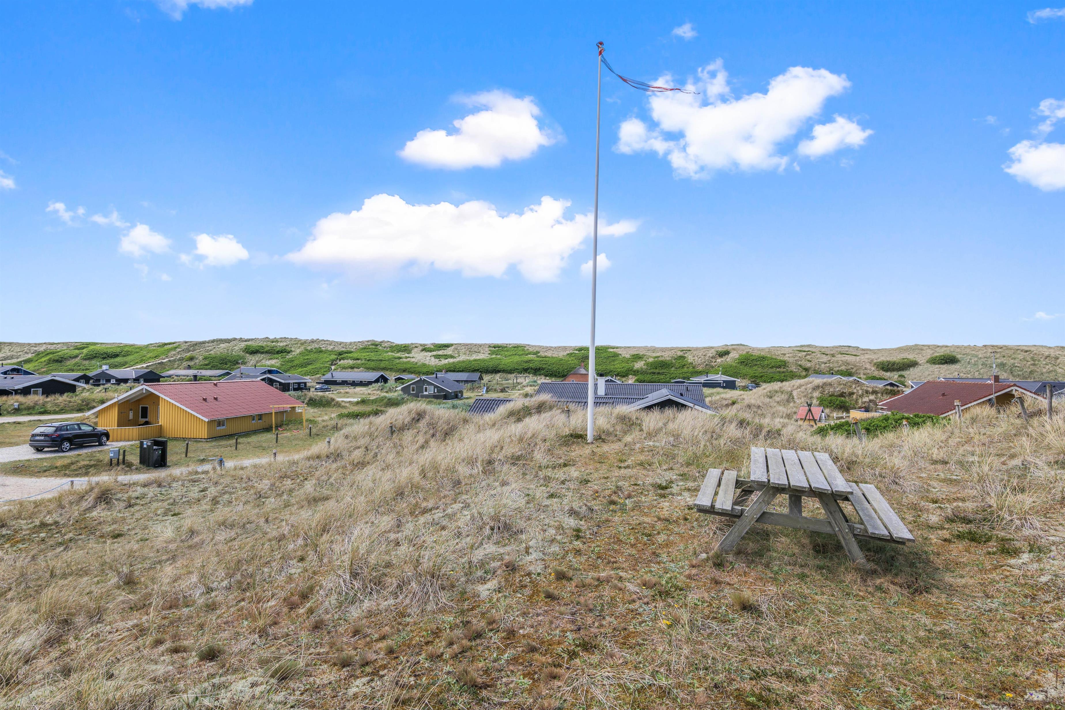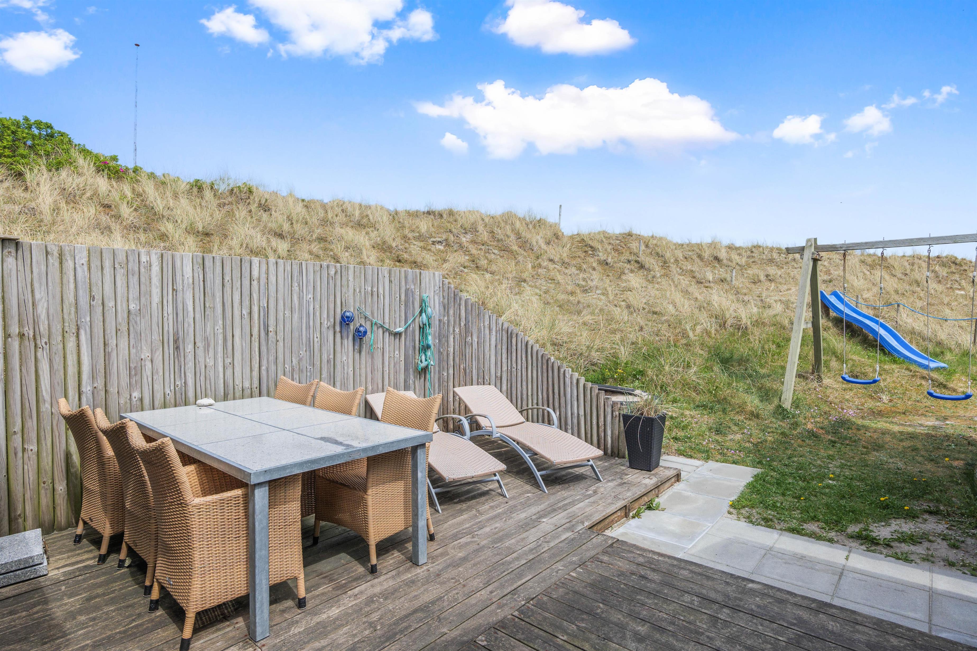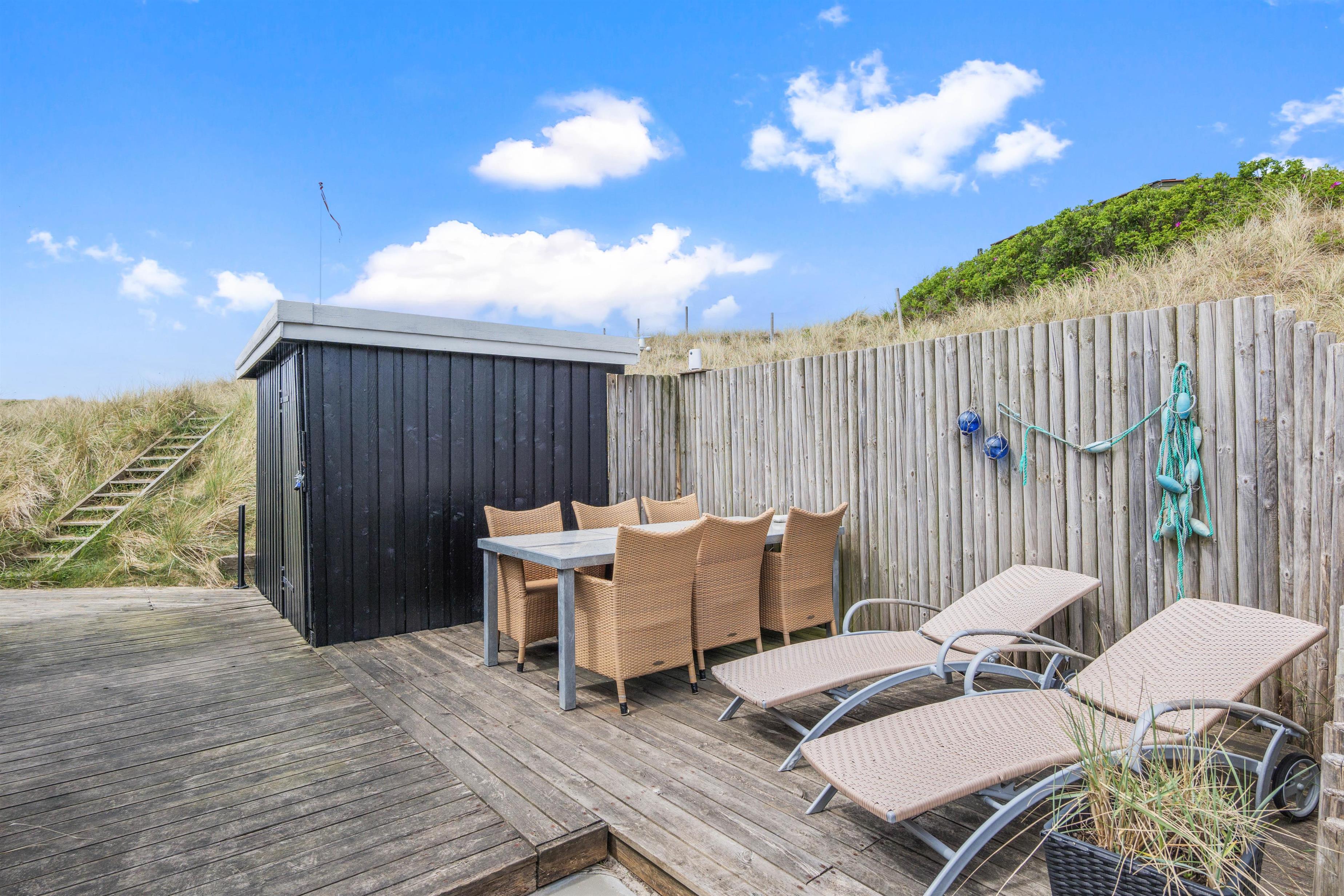 Terrassen ligger delvist i læ fra klitterne og er delvist afskærmet. Her kan du nyde dagene i solen og den friske luft eller finde et skyggefuldt sted, hvor du kan nyde den nyeste krimi. Med udsigt til hede- og klitlandskabet kan du afslutte dagen med en grillaften, imens den nedgående sol lyser aftenhimlen op.
