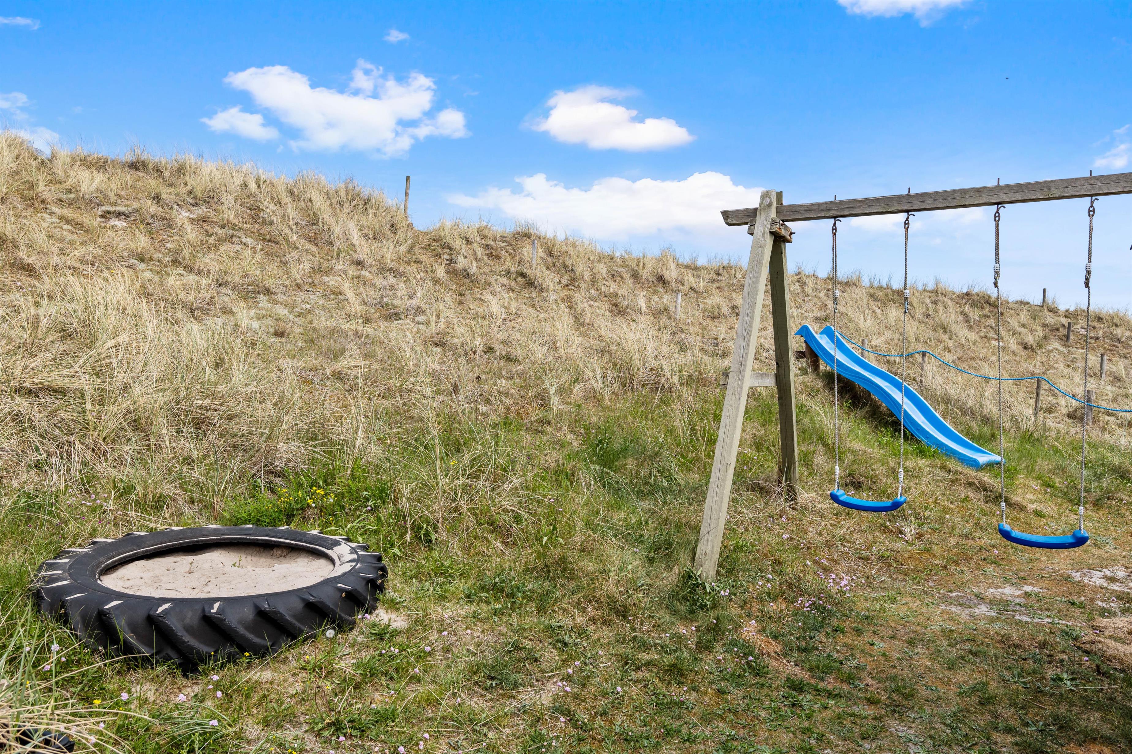 I dette feriehus er der tænkt på de små gæster med sandkasser, gynger og rutsjebane til rådighed. Her kan de lege dagen lang, hvis de da ikke bygger sandslotte eller leder efter muslingeskaller på stranden.
