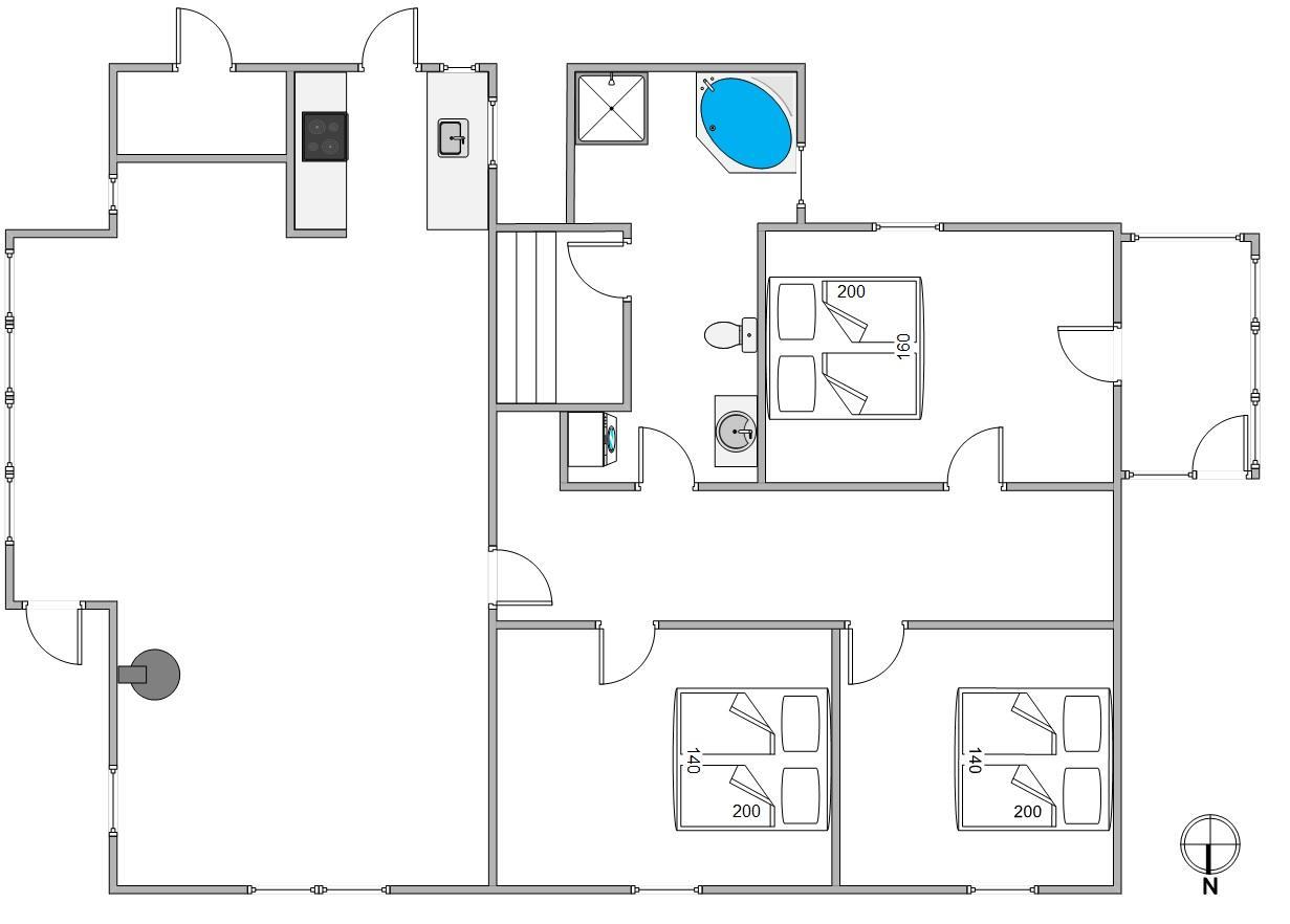 Der er dobbeltseng i hvert af de 3 soveværelser, og imens du sover i den friske luft fra Vesterhavet, kan du lade batterierne op til næste dags strabadser. I badeværelset er der gulvvarme, så du slipper for det kolde gys på den front. Efter en frisk gåtur igennem Vestkystens hede- og klitlandskab kan du rigtig slappe af i spa og sauna og lade tankerne flyve.