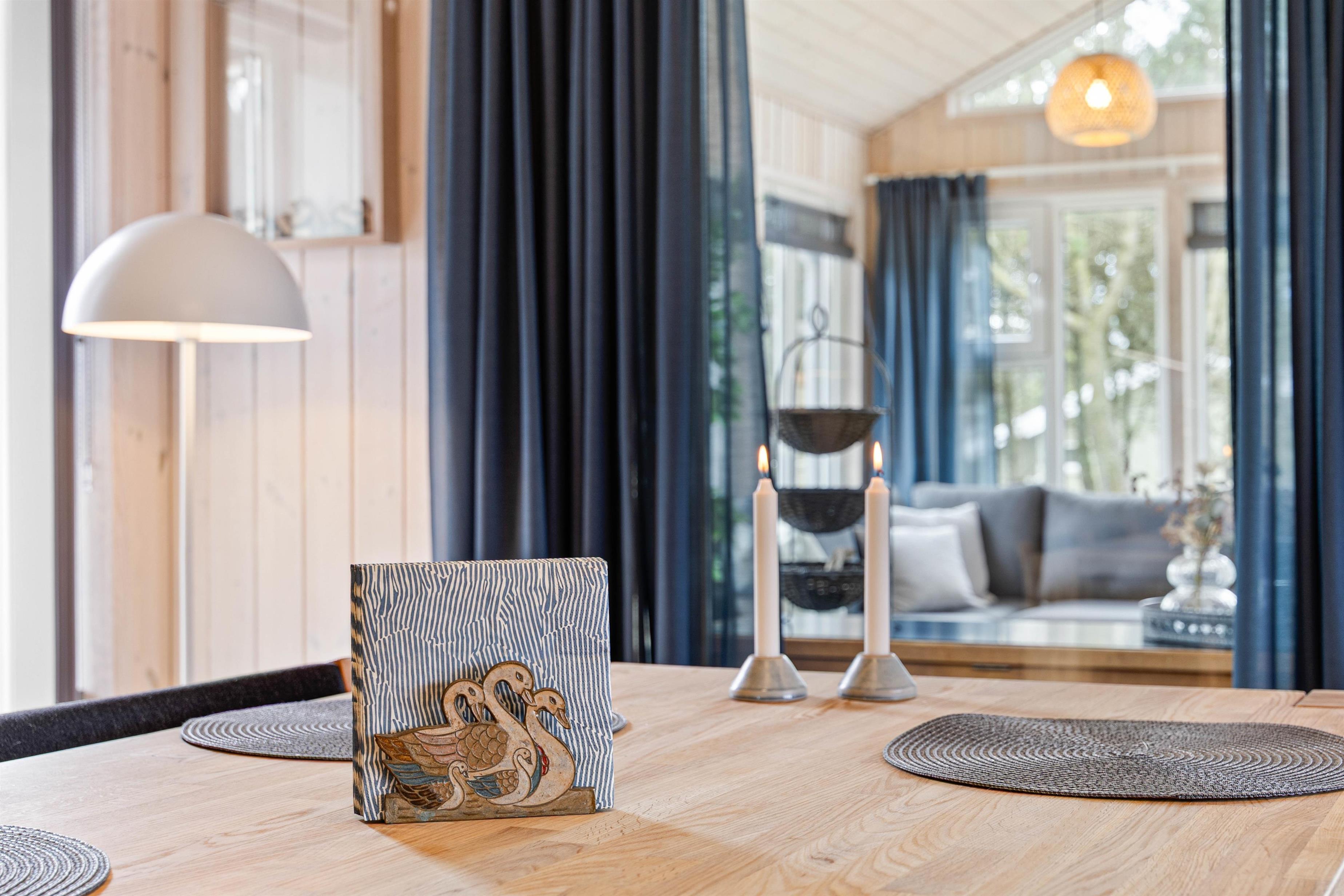 De 112 m2 er praktisk fordelt: Det åbne køkken-alrum med stue, moderne køkken samt adgang til udestuen, bliver utvivlsomt samlingspunktet. Her er der plads til fælles madlavning, filmaftener i sofaen, sjove spil og planlægning af feriens udflugter i den unikke natur - lokalt som regionalt. Desuden er hemsen et perfekt sted at trække sig tilbage for at slappe af. Den isolerede udestue tillader tilbagetrækning og afslapning med lys og udsigt til natur og himmel.