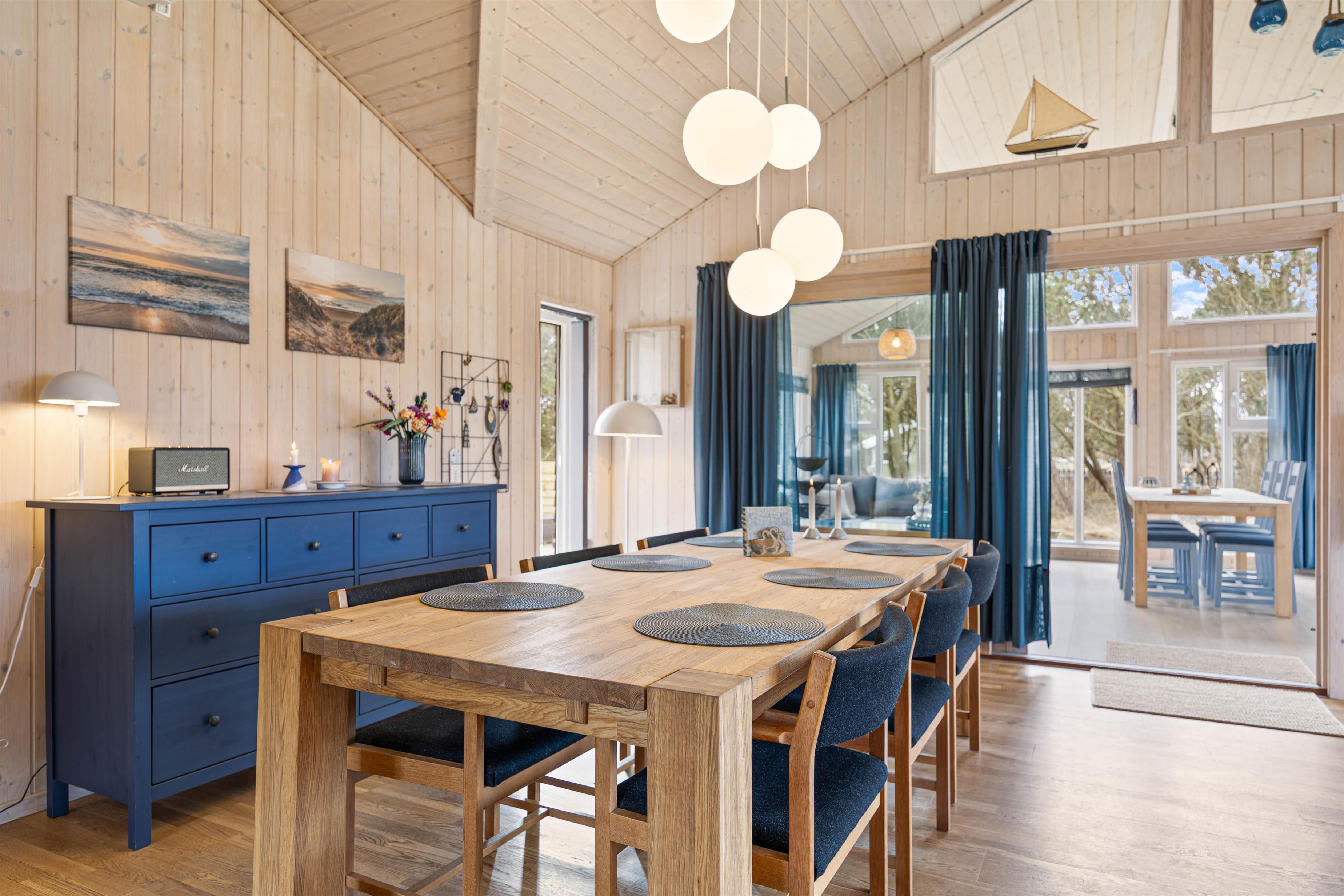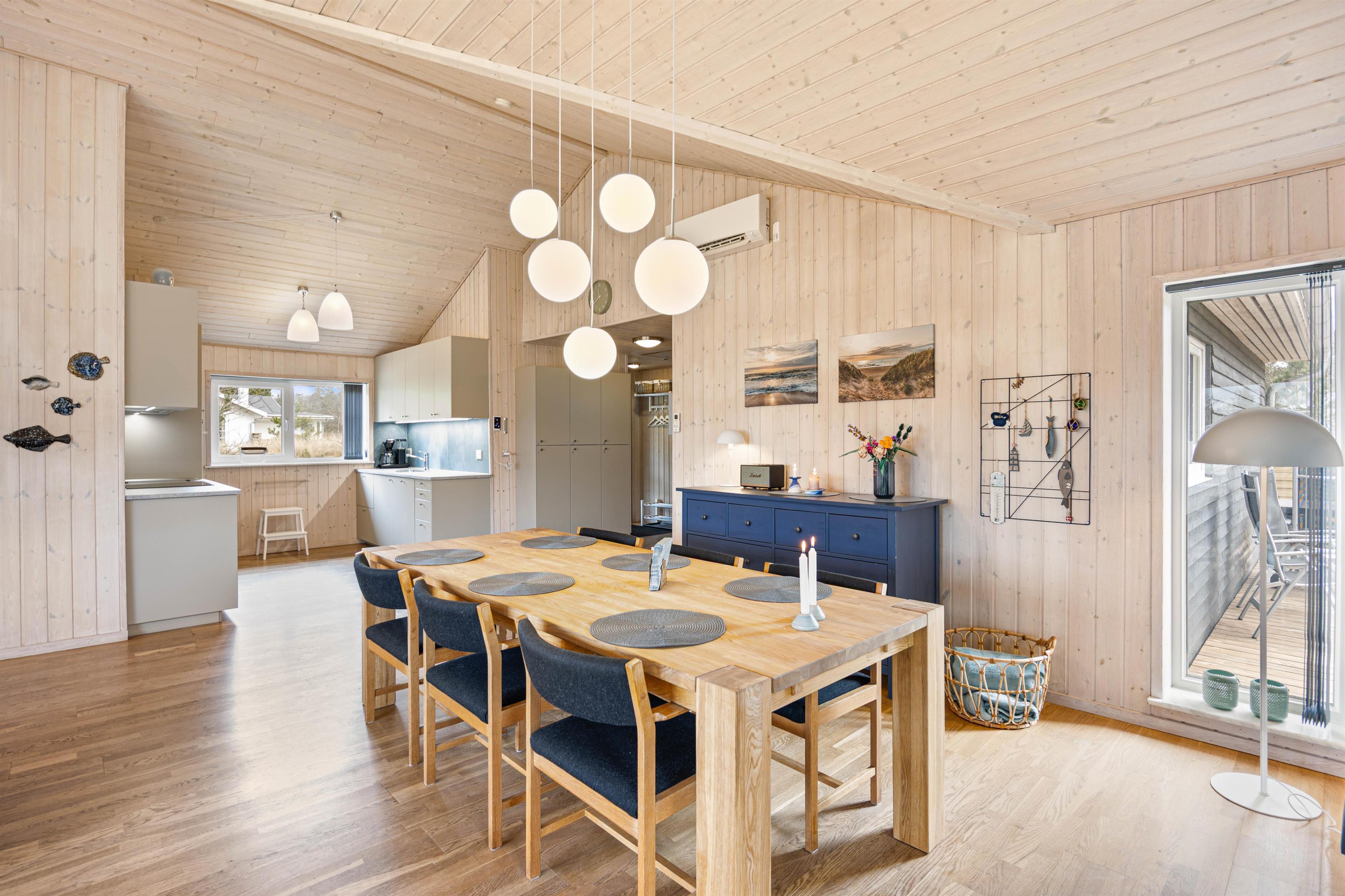 Lys, rummelighed, hygge og komfort betegner dette skønne sommerhus beliggende på en delvis afskærmet naturgrund mellem hav og fjord. Sommerhusets køkken er renoveret i 2025 og har dersuden en velisoleret udestue, der virker som en naturlig overgang til terrasserne med mange læmuligheder og til den omkringliggende natur. Udestuen kan anvendes det meste af året.