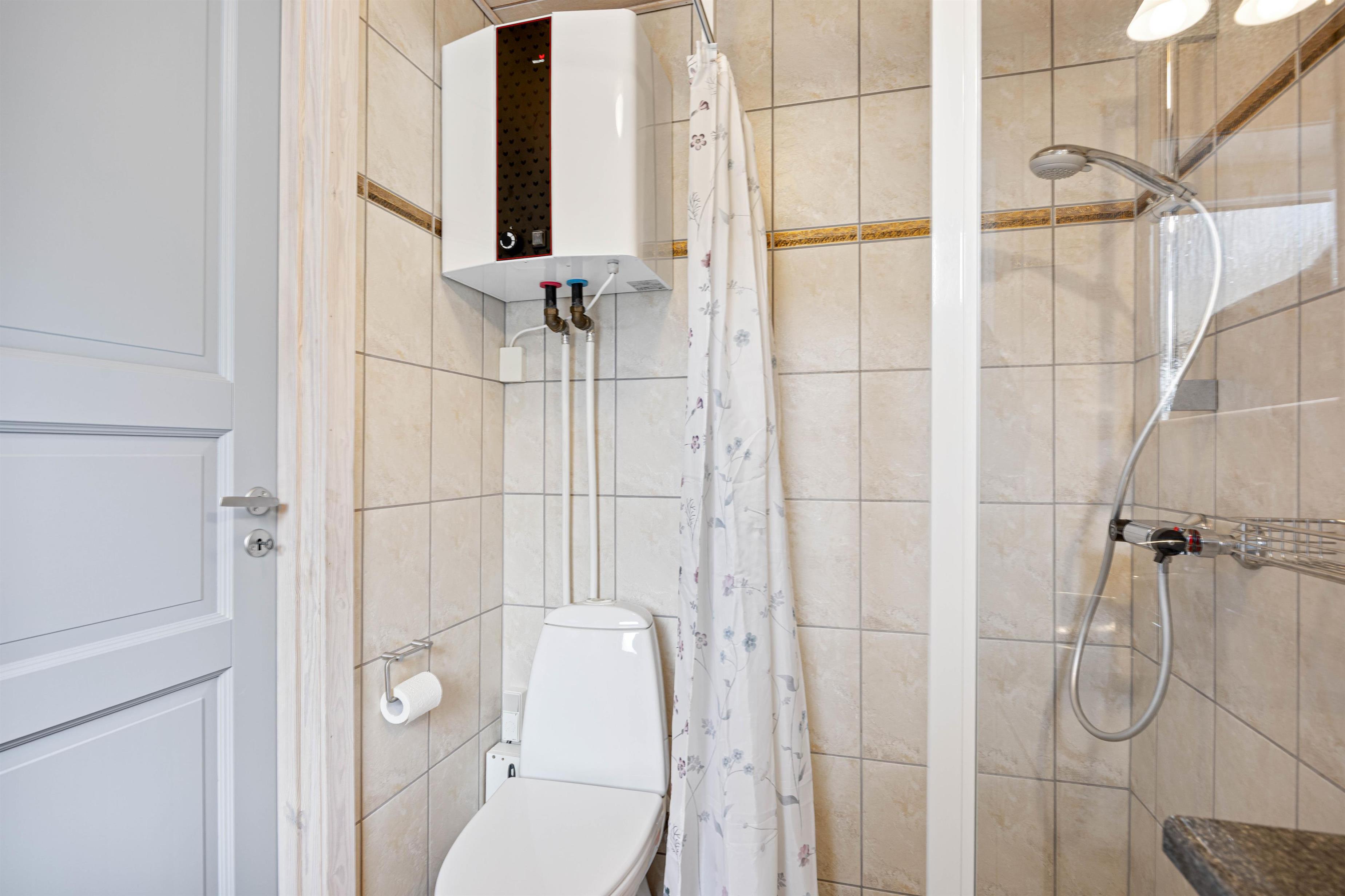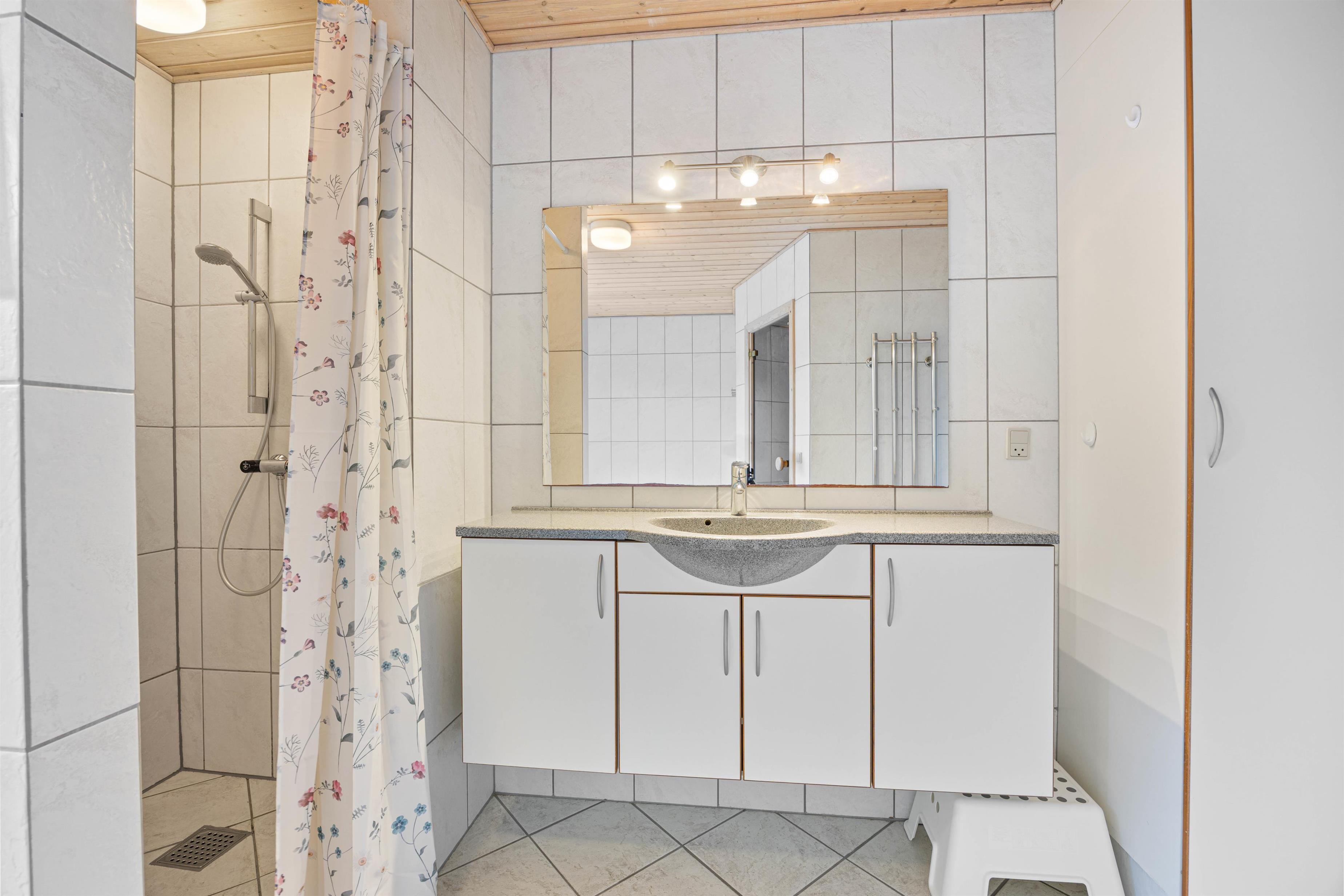 De 2 badeværelser er begge med gulvvarme og bruseniche. På det lille badeværelse findes der vaskemaskine, mens det store badeværelse inviterer til afslapning og selvforkælelse. Her er der nemlig både spa og sauna, hvor I kan koble af og nyde varmen og et efterfølgende bad.