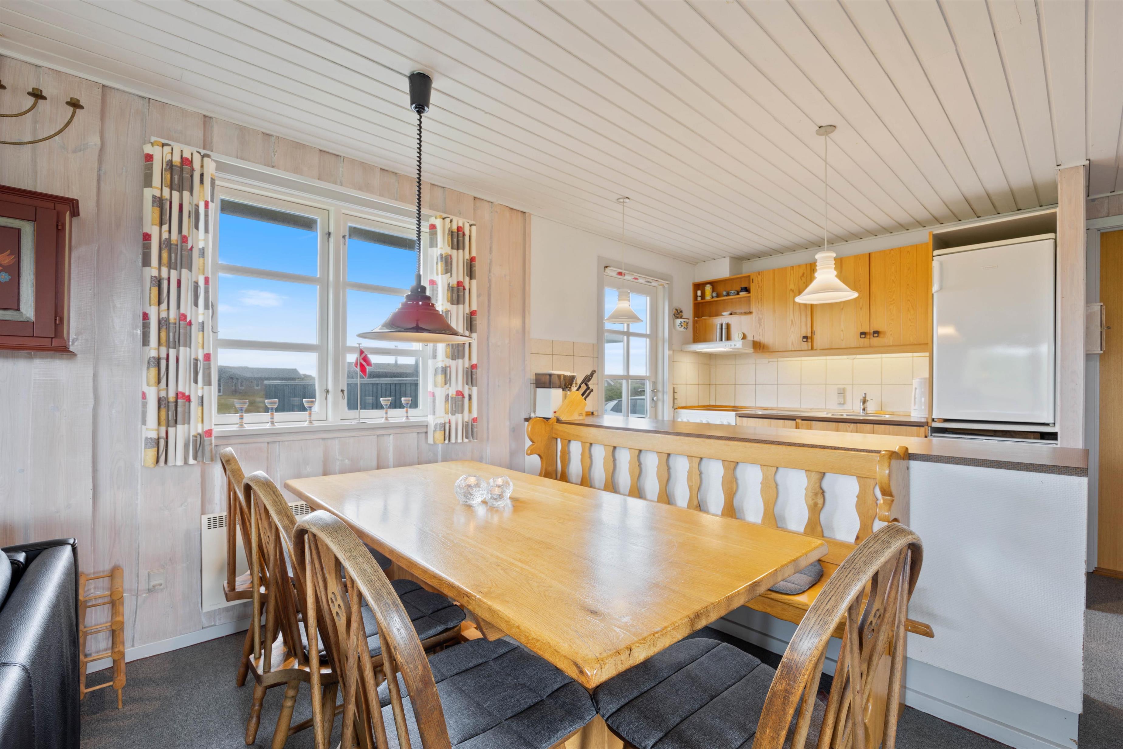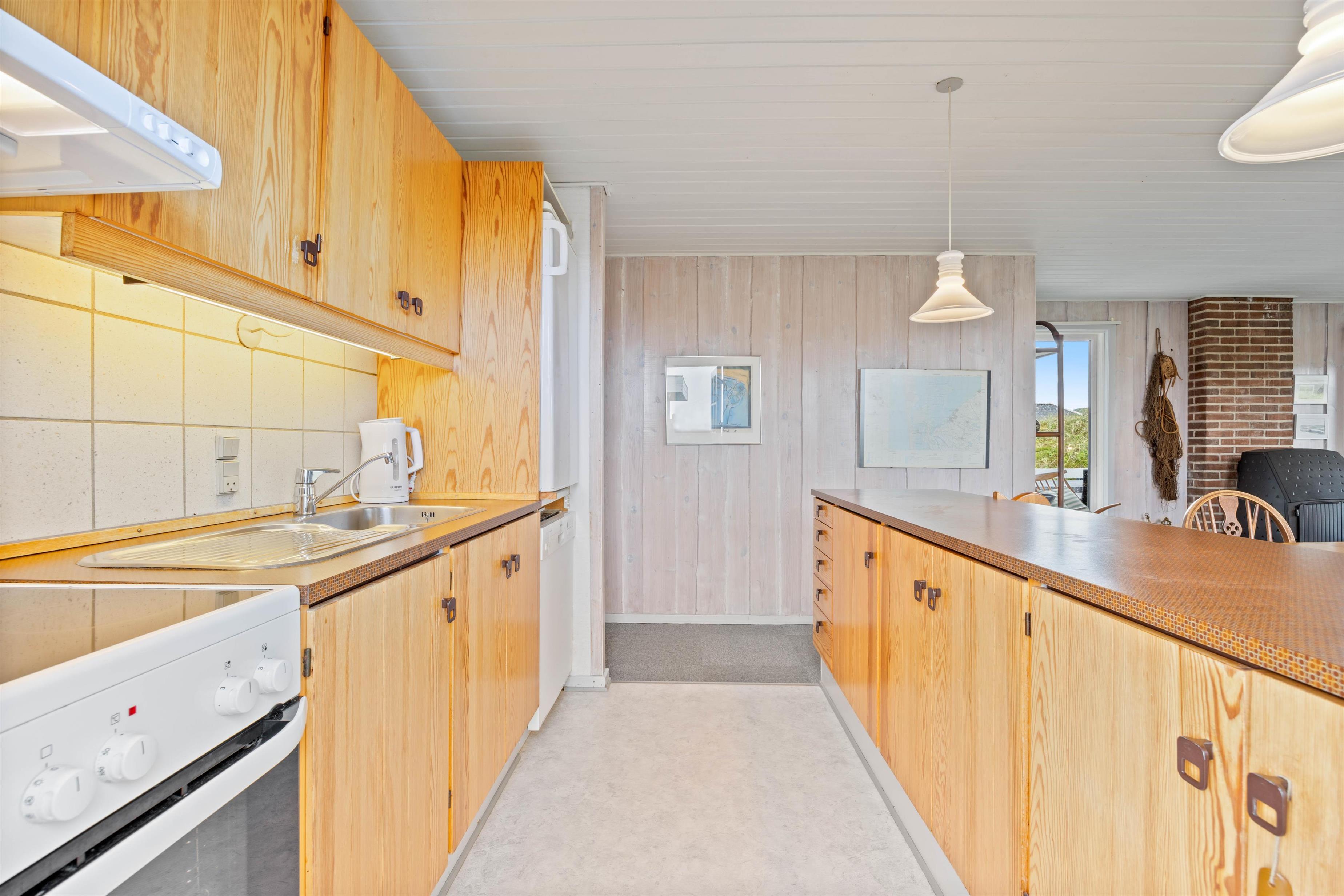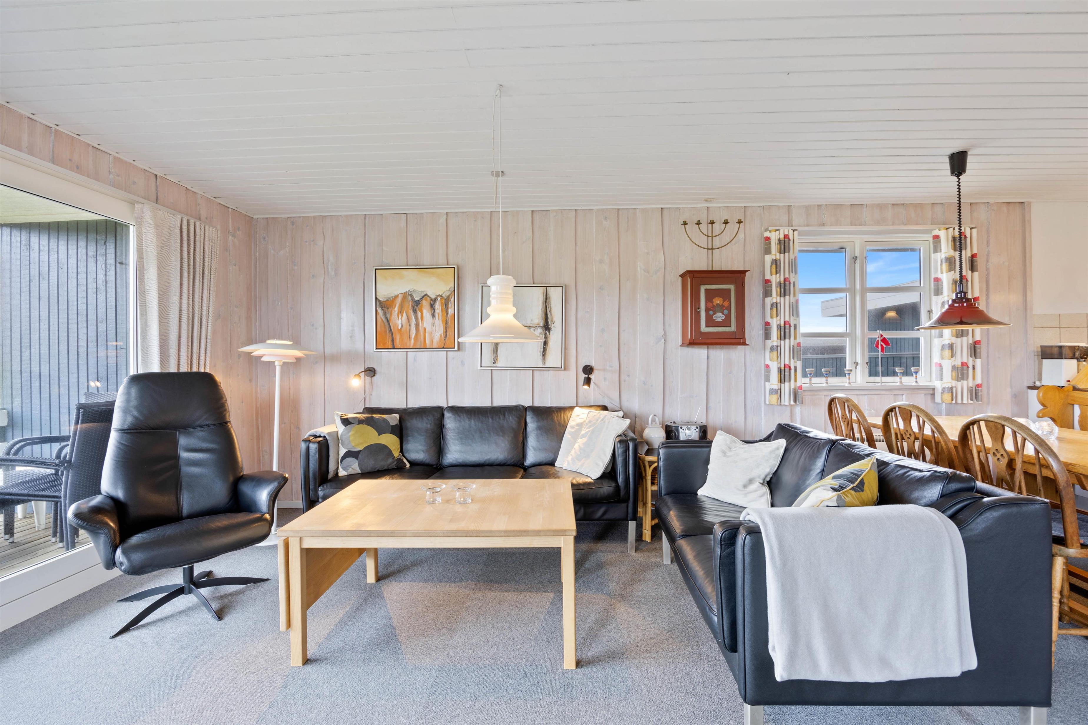 Samlingspunktet bliver uden tvivl alrummet, som forener køkken og stue. Saml jer omkring brætspil eller tag feriekrimien med hen i sofaen - samtidig med at brændeovn knitrer i baggrunden og spreder hygge og varme. Herfra har I desuden også udsigt over det smukke kuperede klitlandskab.