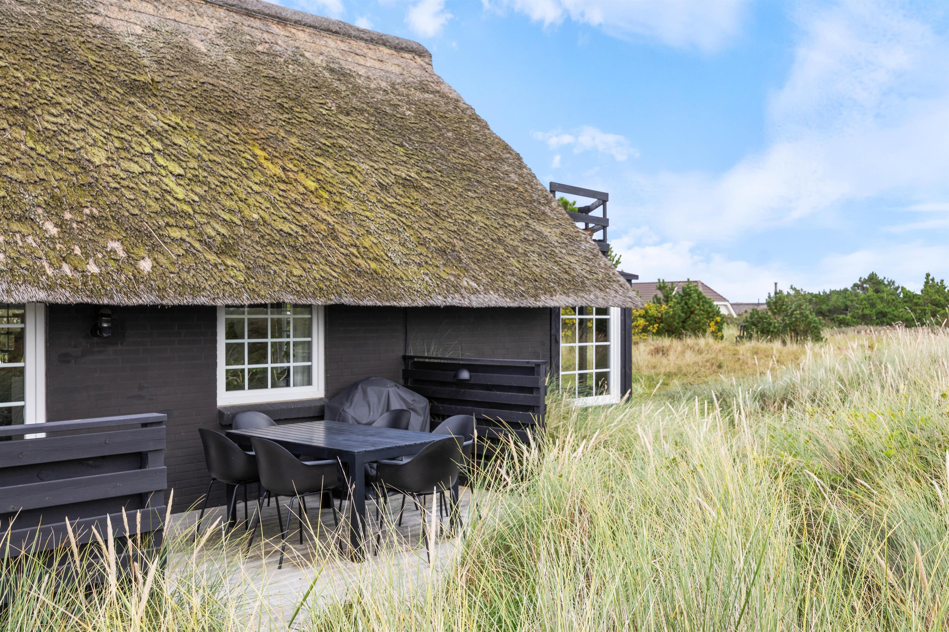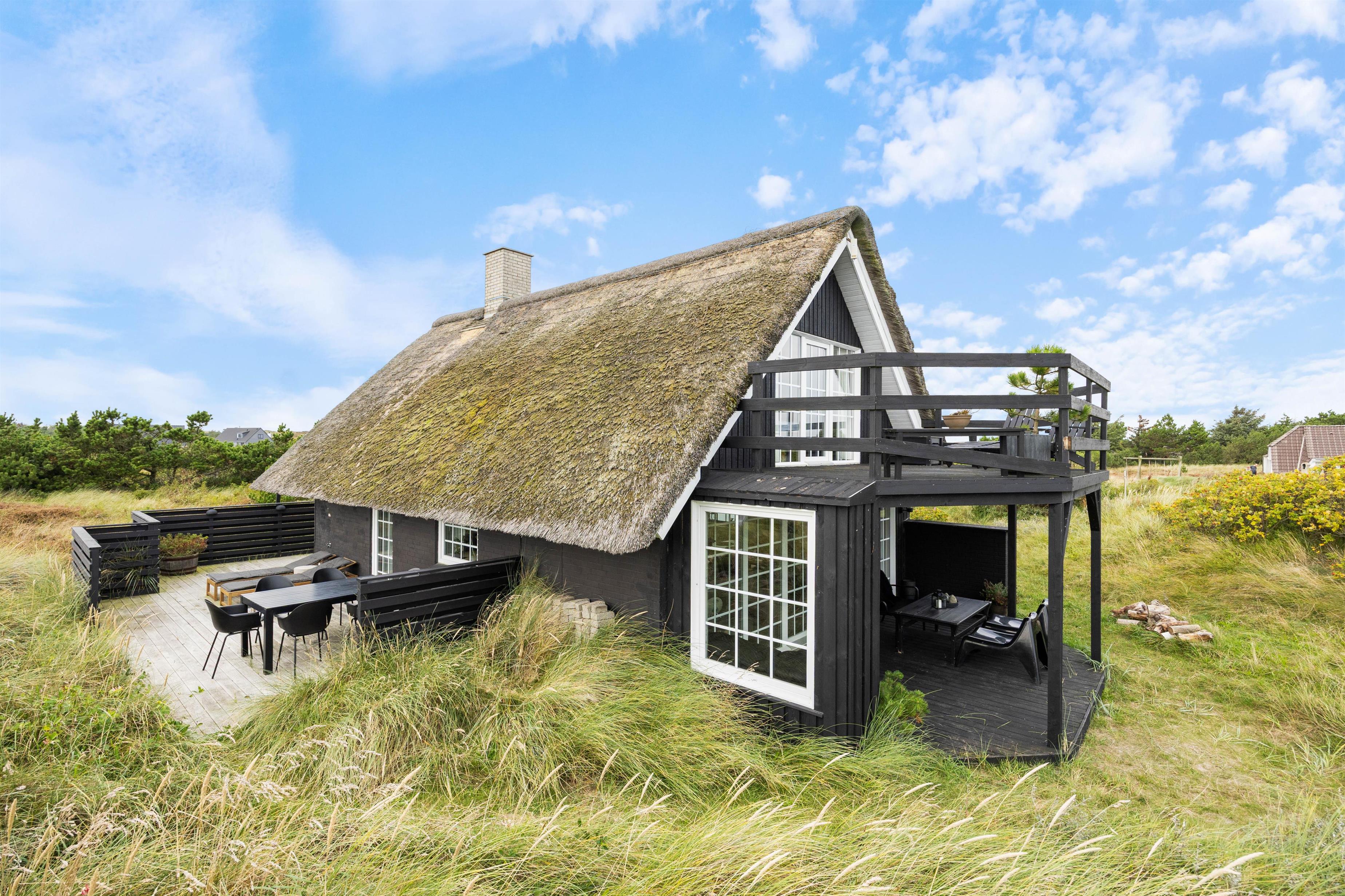 Mega hyggeligt stråtækt feriehus i ferieområdet Bjerregård, beliggende på naturgrund nær stort hedeområde og en gåtur fra stranden. Feriehuset er smagfuldt indrettet og har en skøn altan med udsigt. Feriehuset kan danne rammerne om en skøn ferie for op mod seks gæster og to kæledyr.