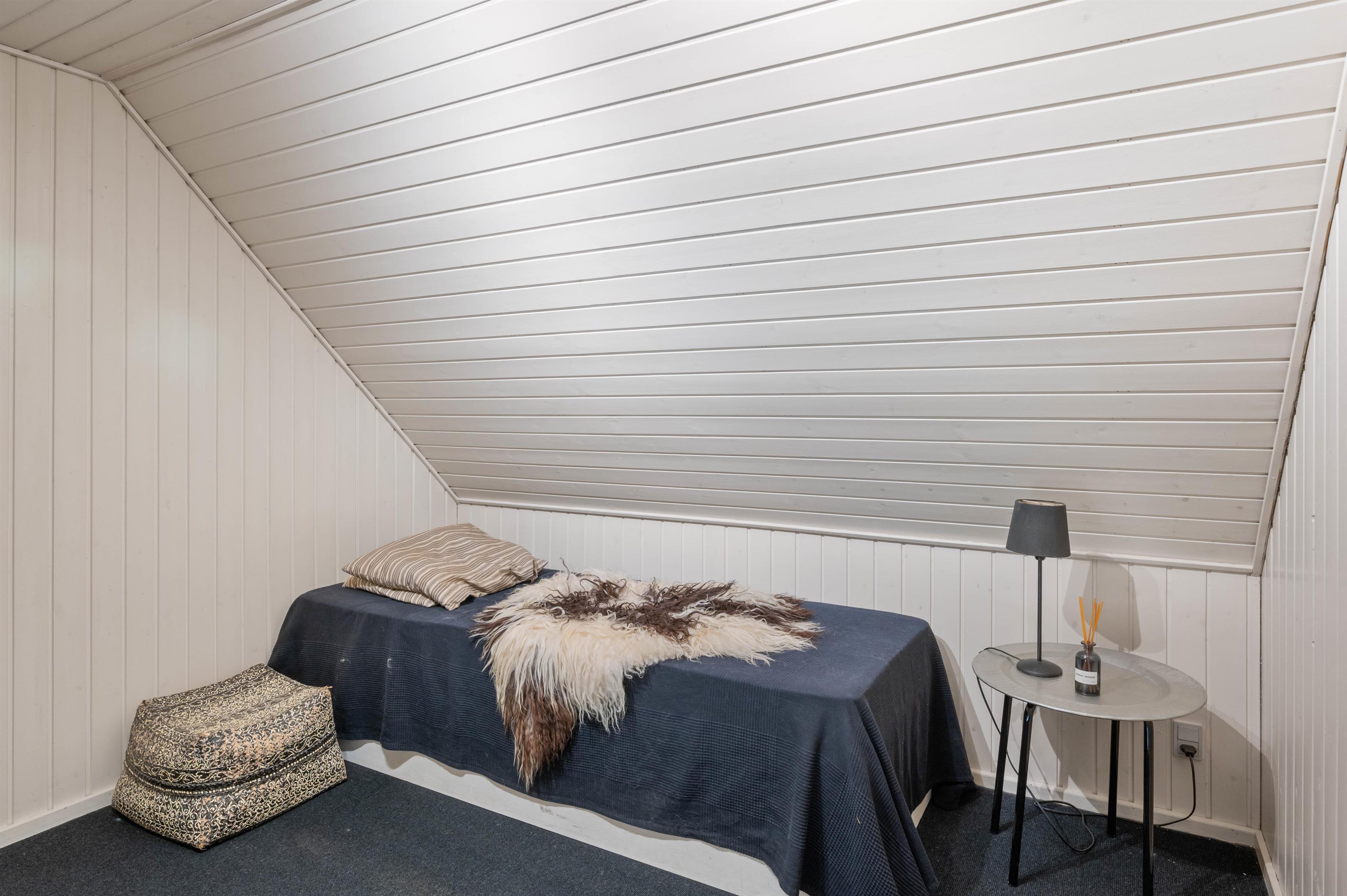 På 1. sal findes soveafdelingen, hvor der er tre charmerende soveværelser. Fra det ene soveværelse er der adgang til en god altan, hvorfra man kan nyde morgenkaffen udsigten over det skønne område.