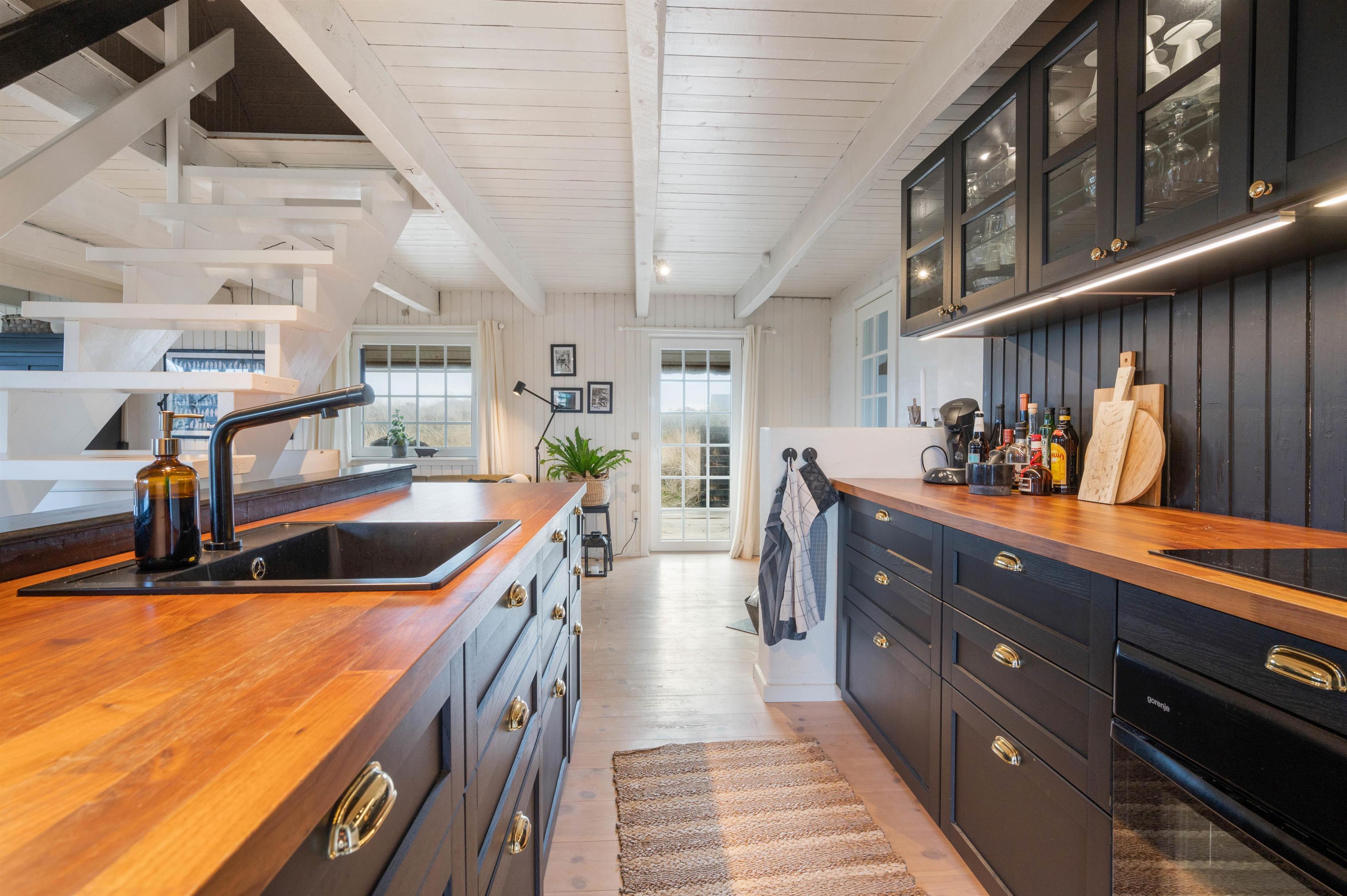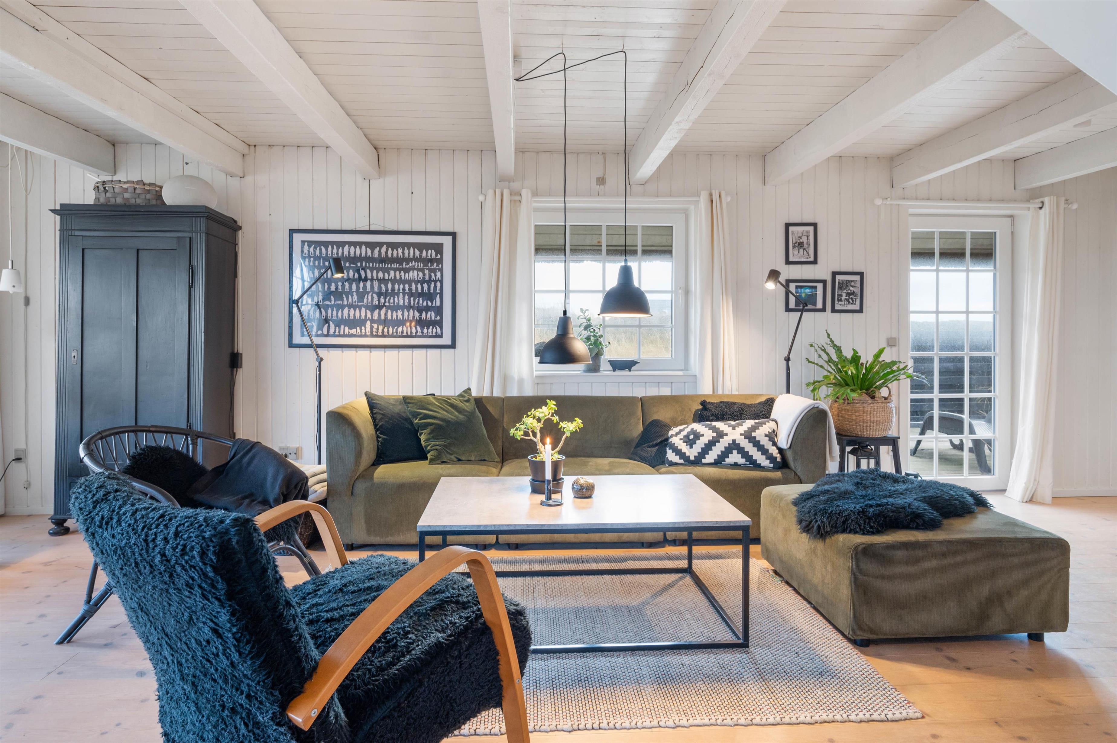 Når I træder ind på Heden 1, vil I blive mødt af et lyst og hyggeligt indrettet feriehus med stilfuld og personlig indretning. Rustikke loftsbjælker, afstemte farver og et dejligt lysindfald gør feriehuset rigtig indbydende. I stueetagen finder I sommerhusets leverum; et funktionelt køkken med opvaskemaskine, der er forbundet med spiseafdeling og en meget komfortabel opholdsafdeling, hvor brændeovnen skaber hygge. Udover at tænde op i den hyggelige brændeovn, kan I med fordel gøre brug af den energibesparende varmepumpe, der sørger for et godt indeklima.