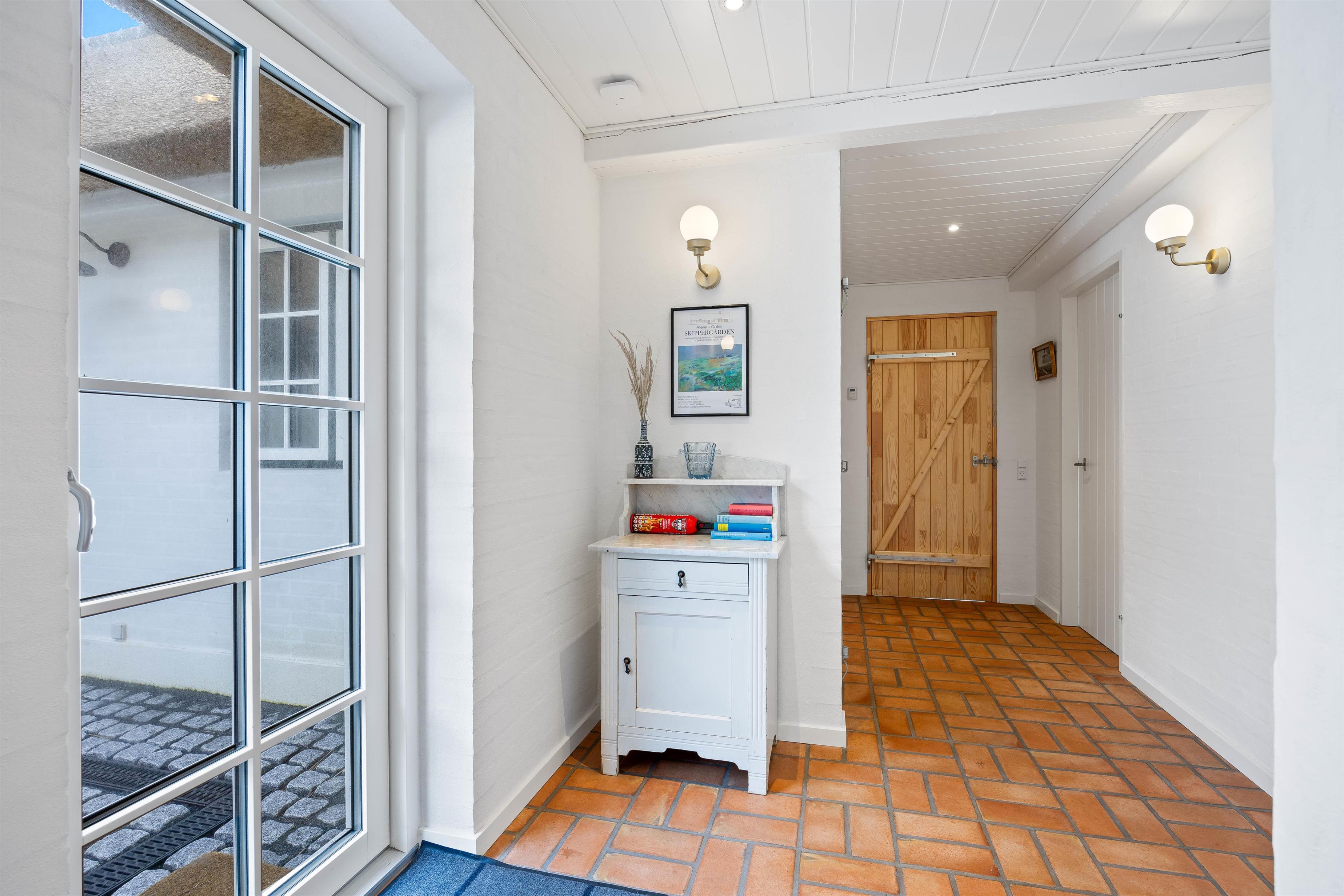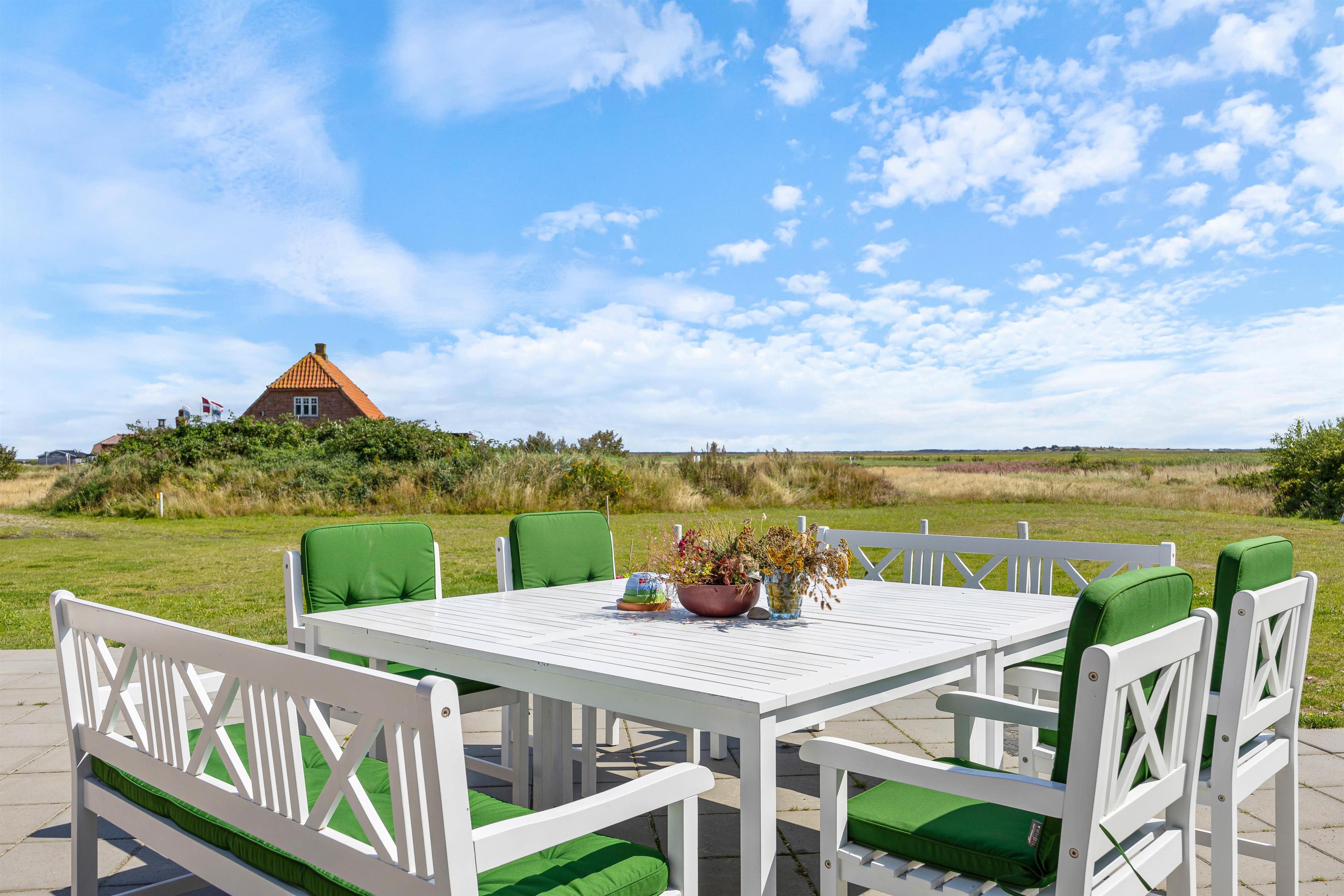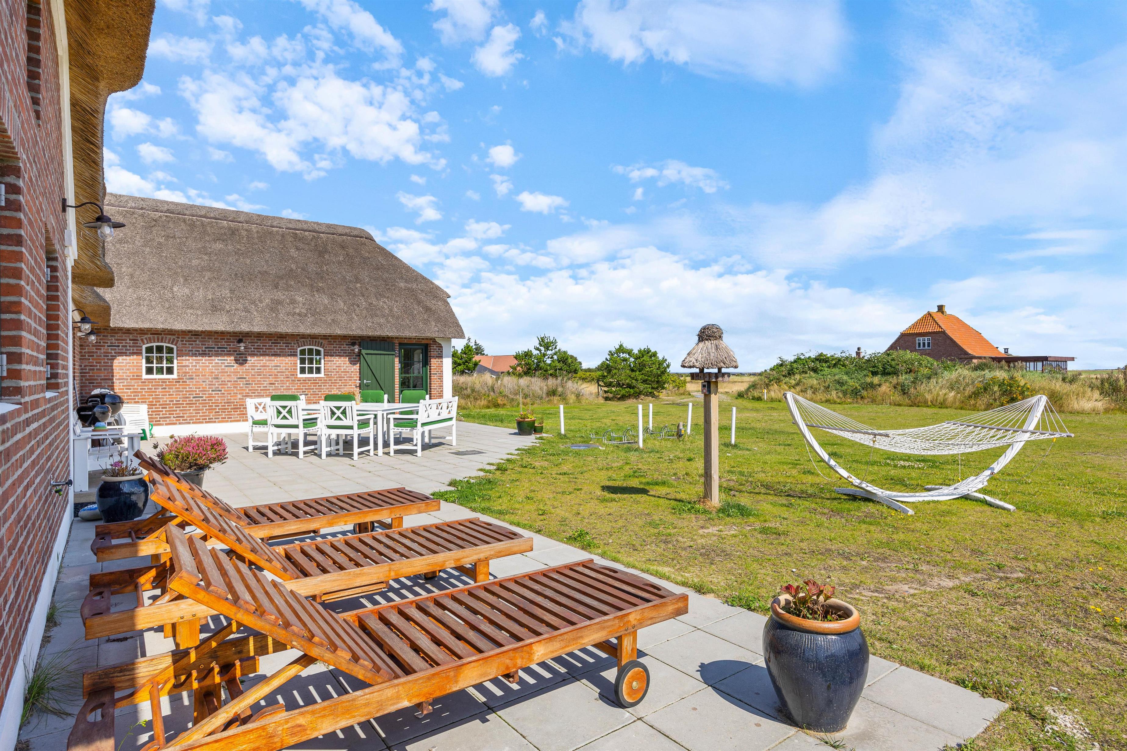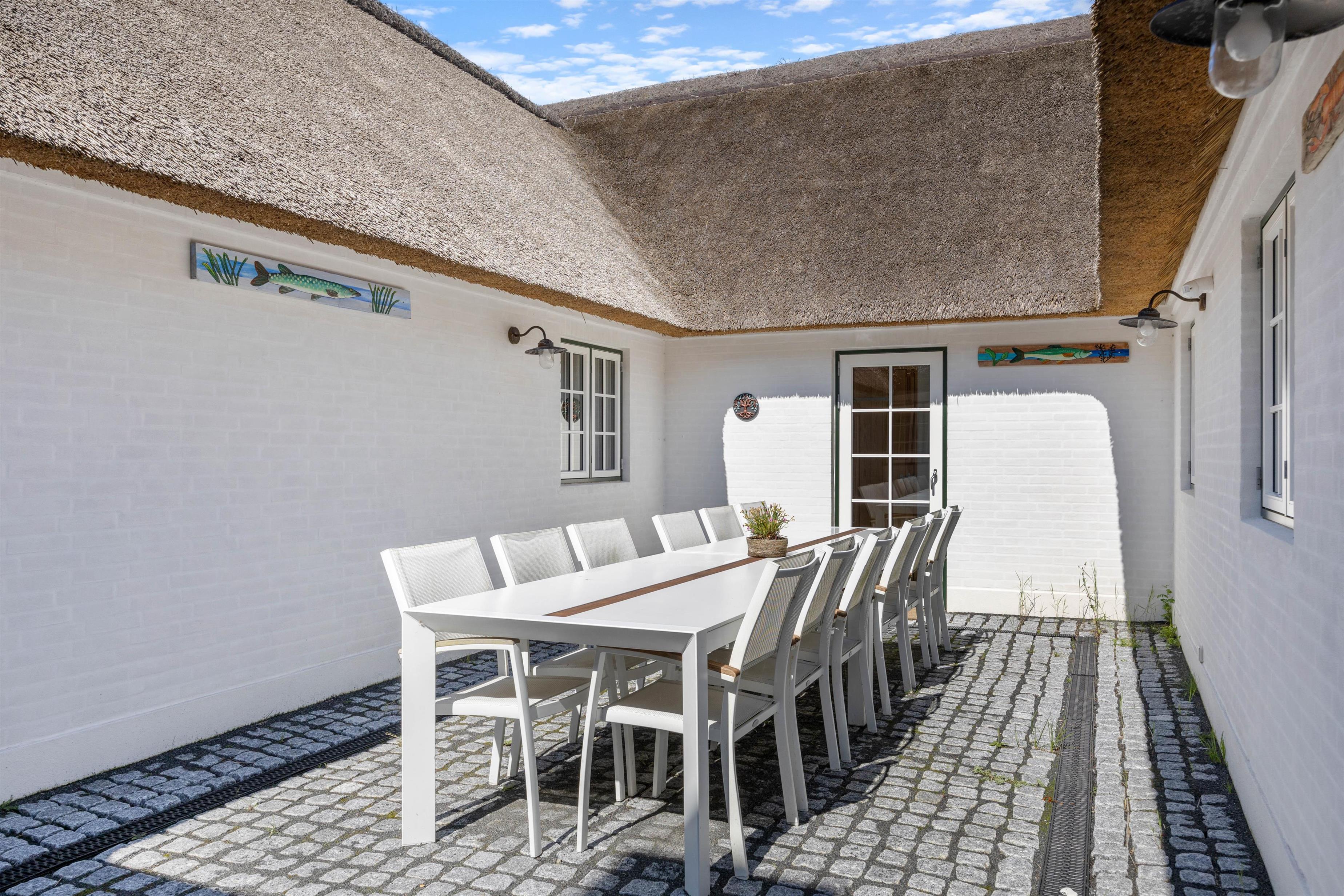 Sommerhuset har en skøn atriumgård, hvor I kan samles til en hyggelig grillaften med god mad fra sommerhusets grill. Her kan I lade hundene gå frit rundt, uden I skal bekymre jer om, at de løber væk.