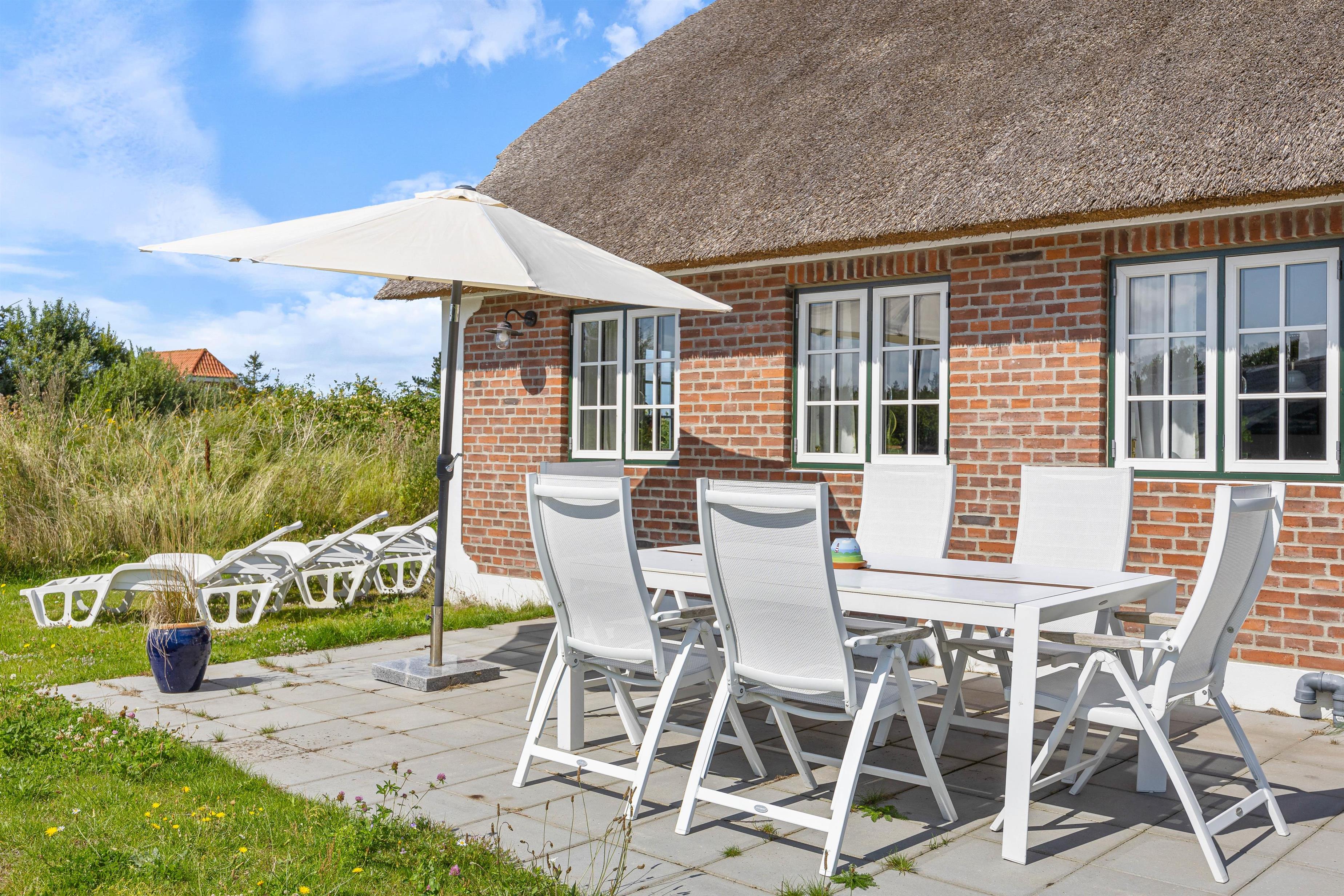 Sommerhuset blev i 2023 genopført som det oprindelige hus fra 1870. Den firlængede klitgård er bygget i mursten med stråtækt tag, og indvendig er der loft til kip. De synlige loftsbjælker, de småsprossede vinduer og det smukke, landlige køkken skaber en skøn og indbydende atmosfære i feriehuset.