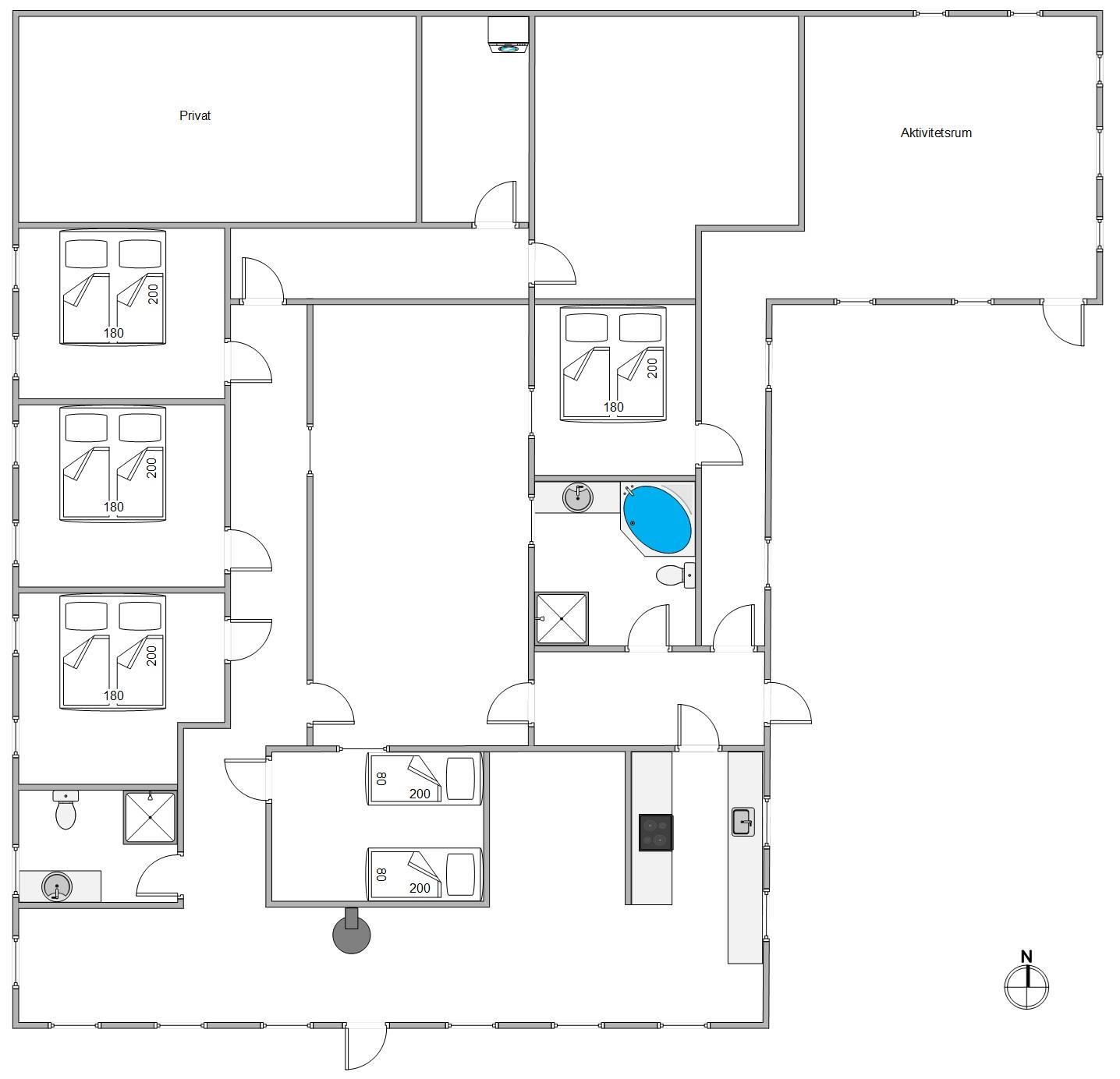 Aktivitetsrum, 2 badeværelser og spabad