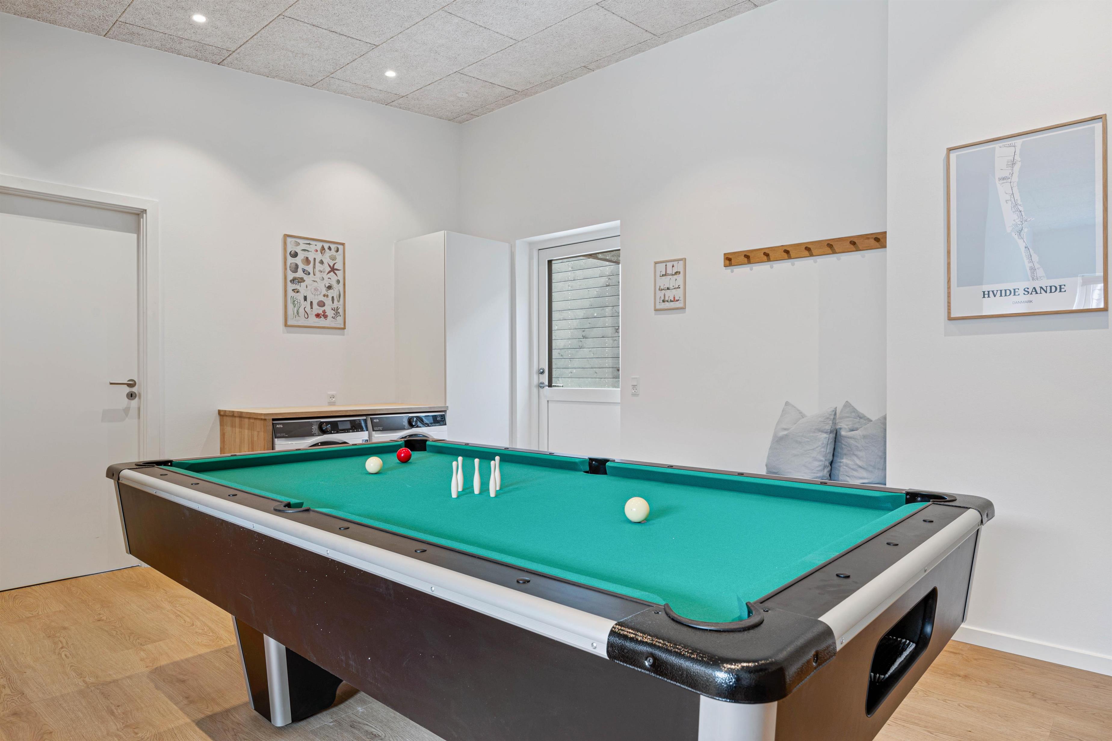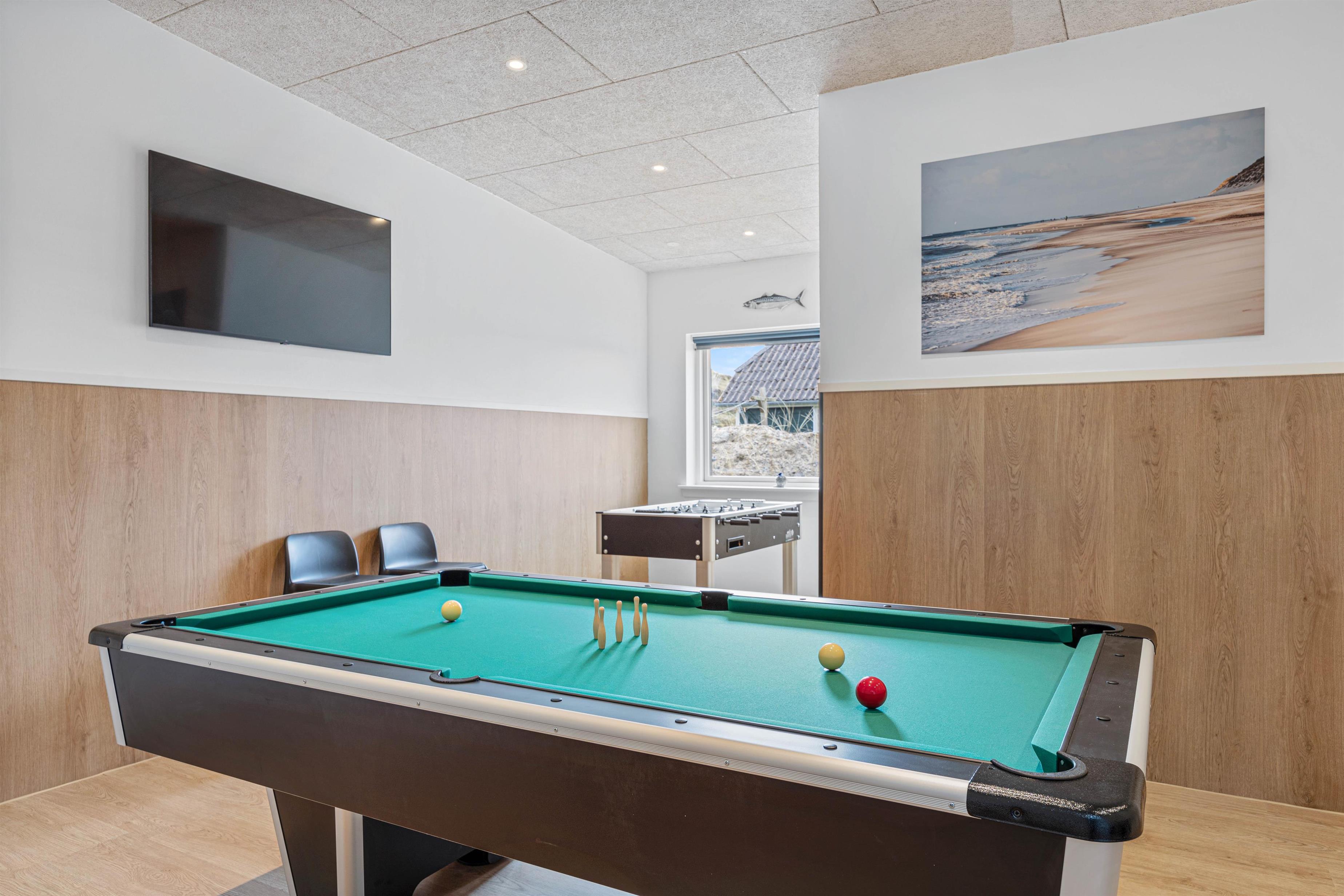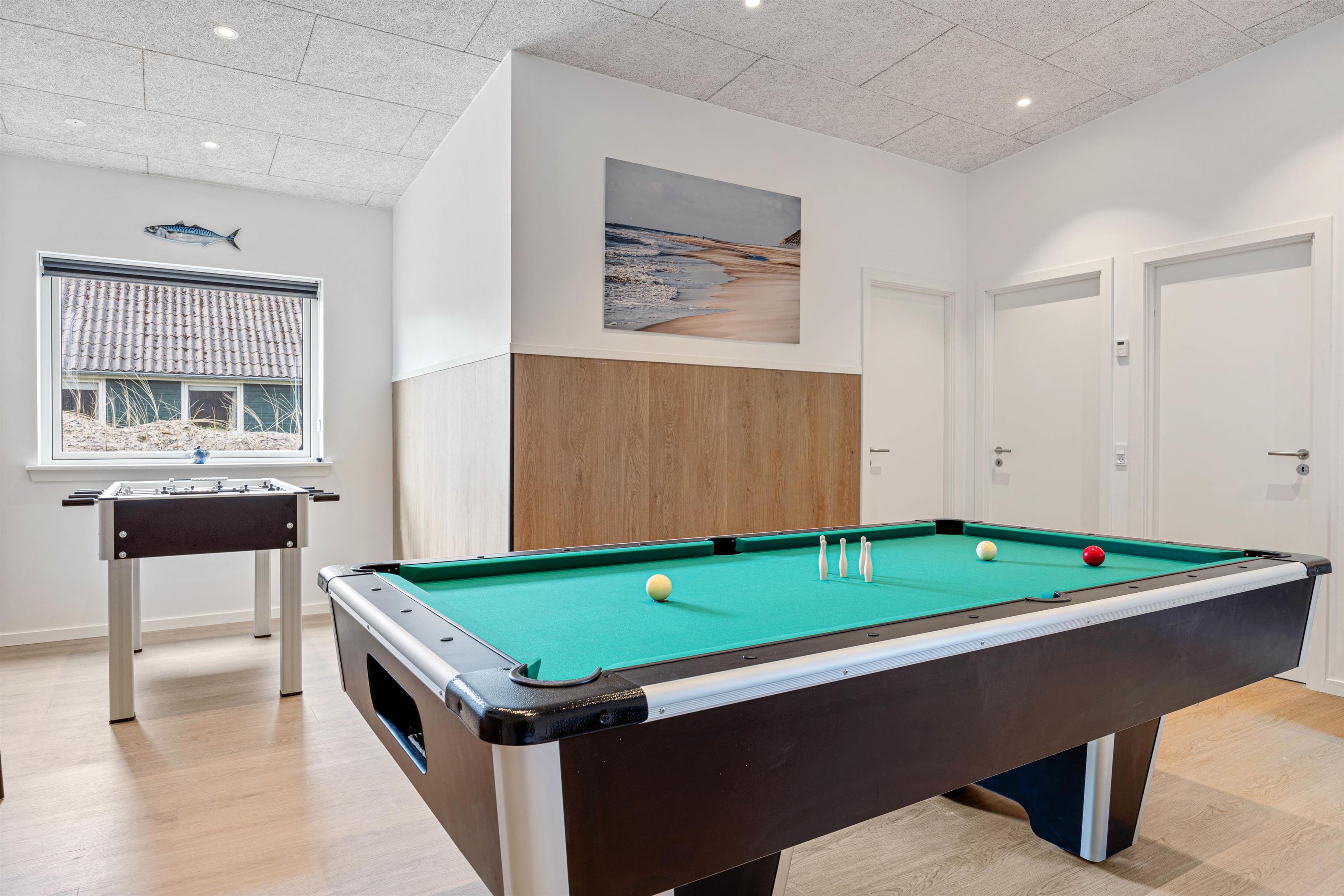 Det hyggelige alrum er hjertet i sommerhuset, hvor I kan lave mad sammen, spille brætspil eller slappe af på sofaen. Skal der mere gang i den, byder sommerhuset også på både billardbord, bordfodbold og flere spil, hvor I kan udfordre hinanden og kåre feriens vinder.