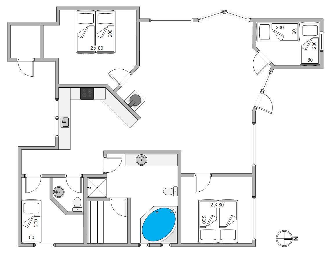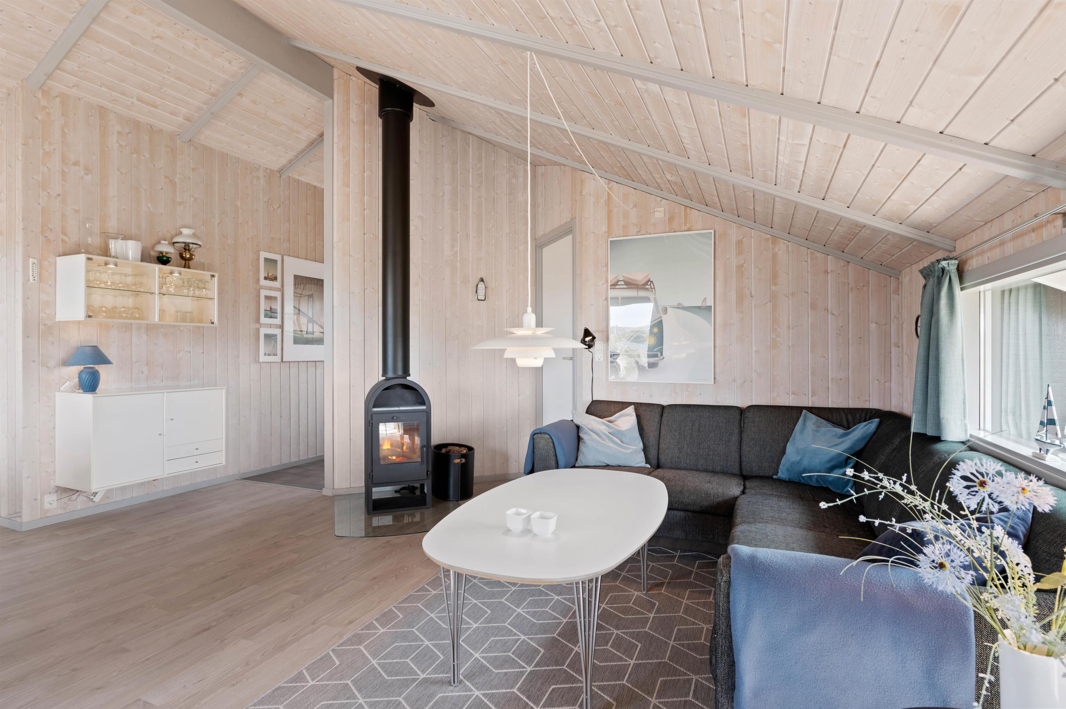 Sommerhuset har en lys og indbydende indretning, der giver jer de bedste rammer for en skøn ferie. I 2020 blev der lagt nyt gulv i den rummelige stue med loft til kip og i de 4 soveværelser. Stuen er husets naturlige samlingspunkt med åbent køkken, hvor hele familien kan være sammen – både til madlavning og hyggelige stunder foran brændeovnen.