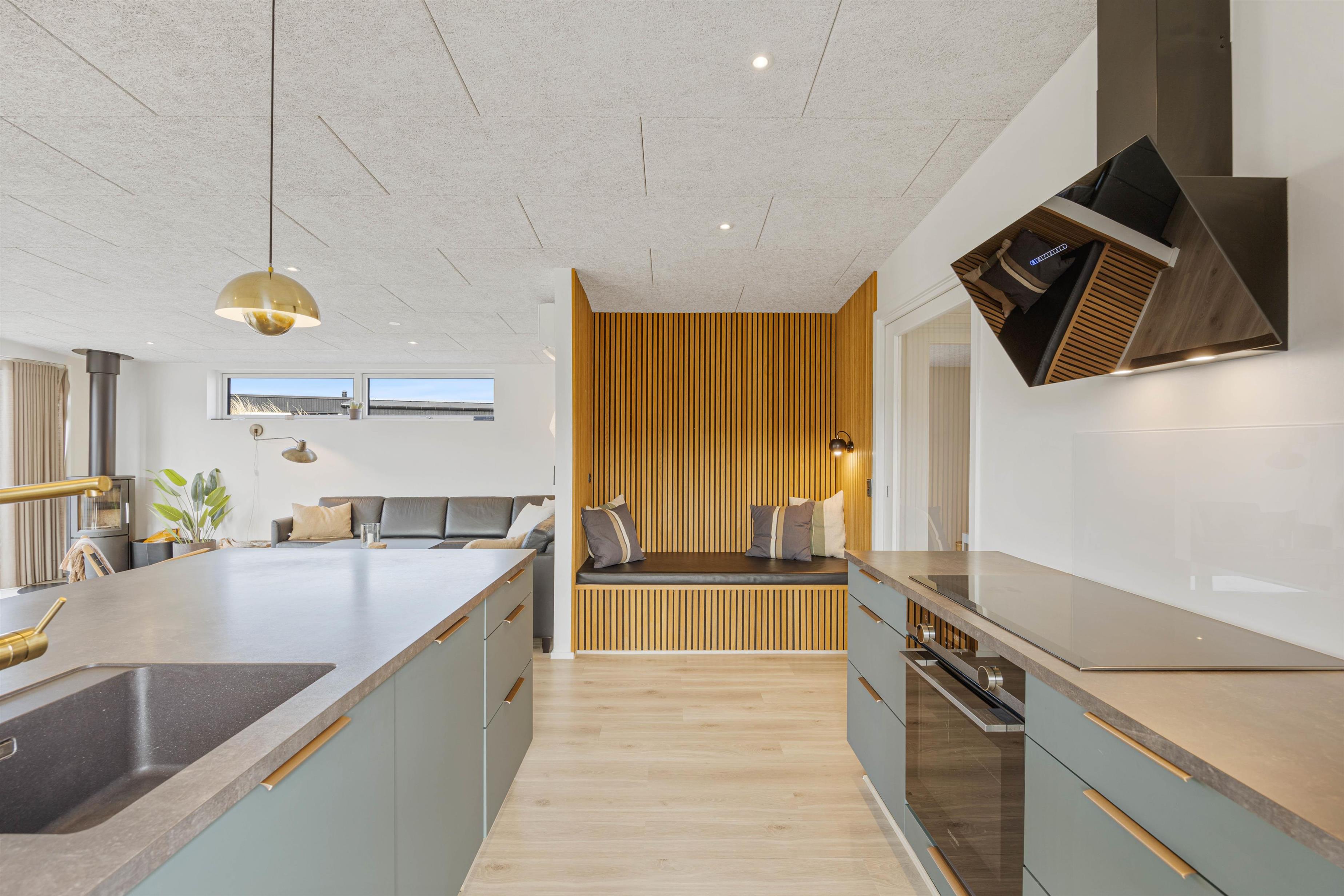 Luksushusets hjerte må tvivl være det store lyse køkkenalrum, hvor det flotte åbne køkken har udsigt over stuen med brændeovnen, som lægger op til mange hyggelige stunder med familie og venner. Det 5+ stjernede sommerhus byder på en række faciliteter, som er med til at skabe en vellykket ferie, her kan bl.a. nævnes vaskemaskine, tørretumbler, opvasker, gasgrill og ikke mindst den energibesparende varmepumpe.