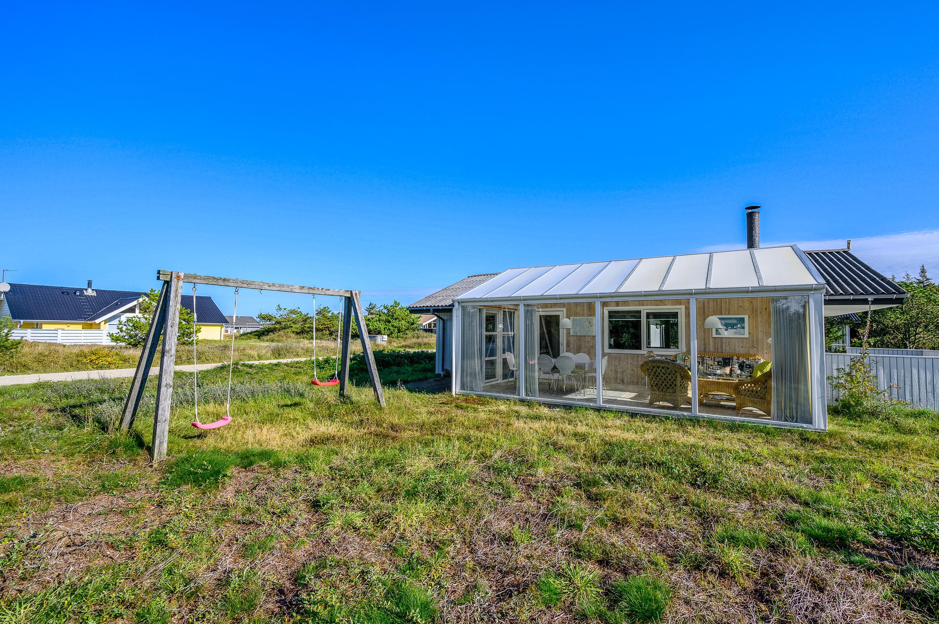 Børnene kan lege i sandkassen eller gynge, mens I slapper af med et glas vin eller griller aftensmaden. Der er masser af plads til leg og aktiviteter på grunden.
