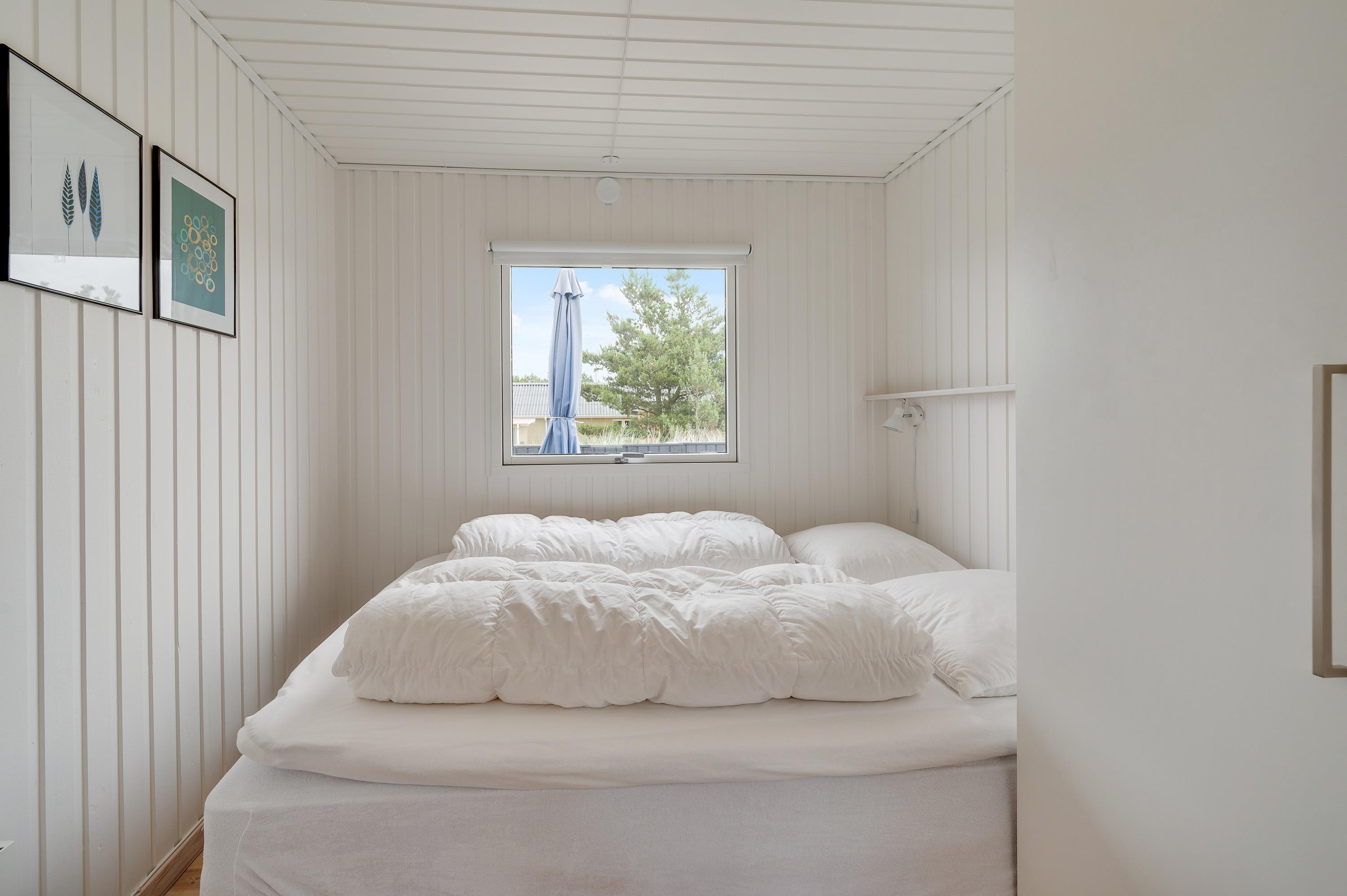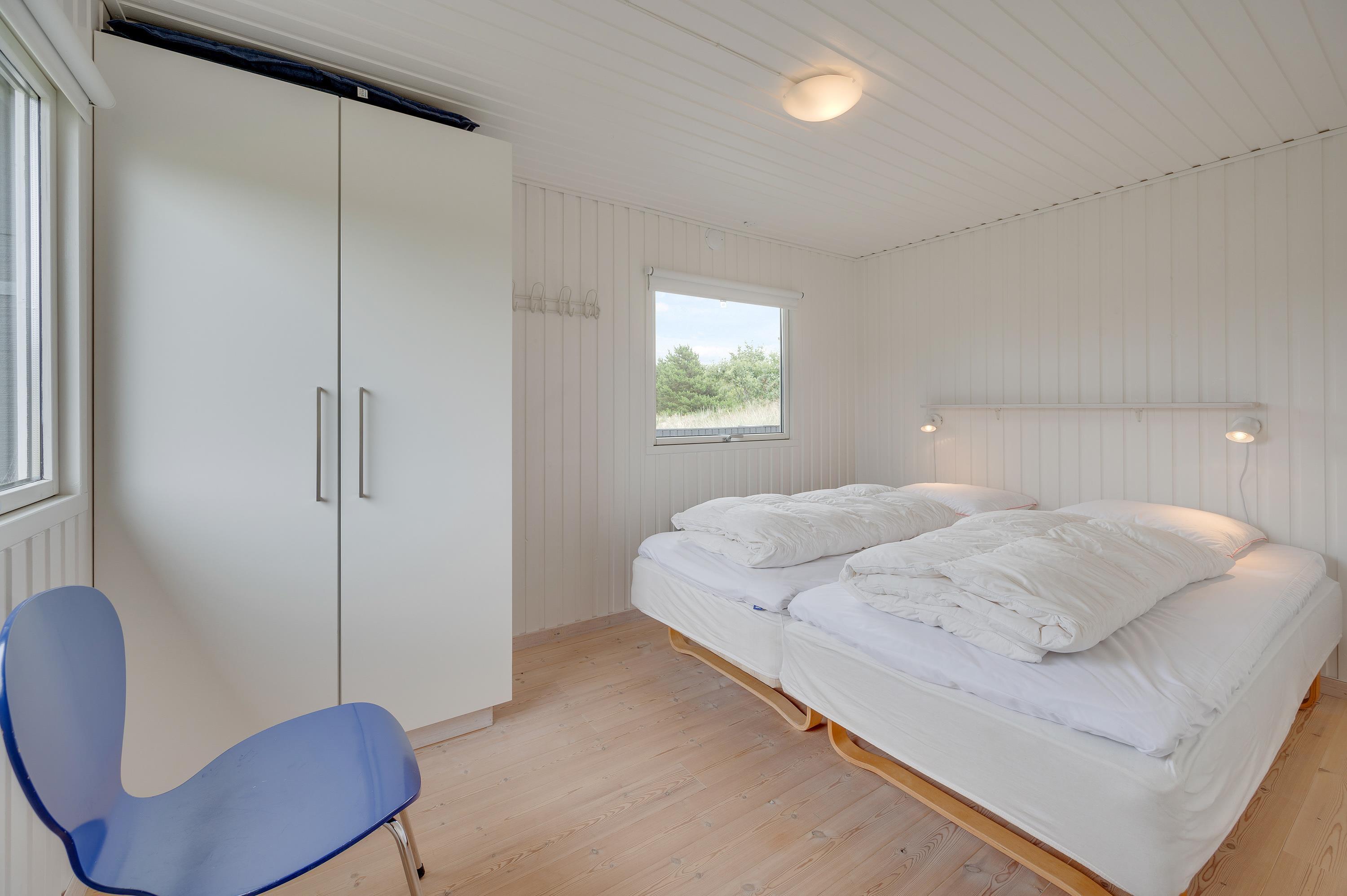 Det 73 m² store sommerhus fremstår lyst og venligt. Med plads til op til 5 personer er det ideelt for familier eller to par, der ønsker at holde ferie sammen. Der er 3 gode soveværelser, 2 af dem med dobbeltsenge (140x200 cm og 180x200 cm). Det sidste værelse har 2 enkeltsenge, som hver måler 70x200 cm. I det lyse badeværelse med gulvvarme findes også en praktisk vaskemaskine, som gør ferien endnu mere afslappet.