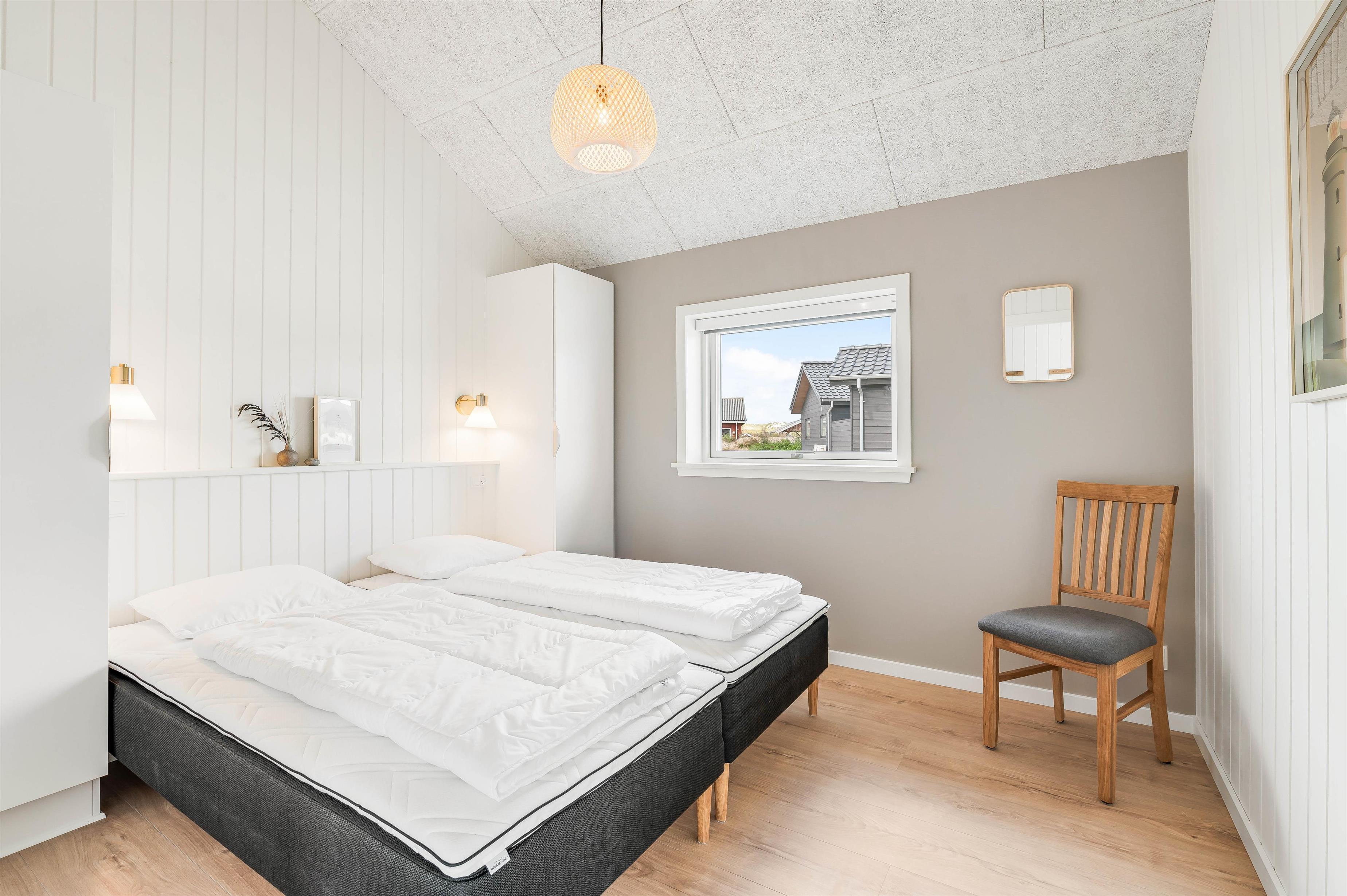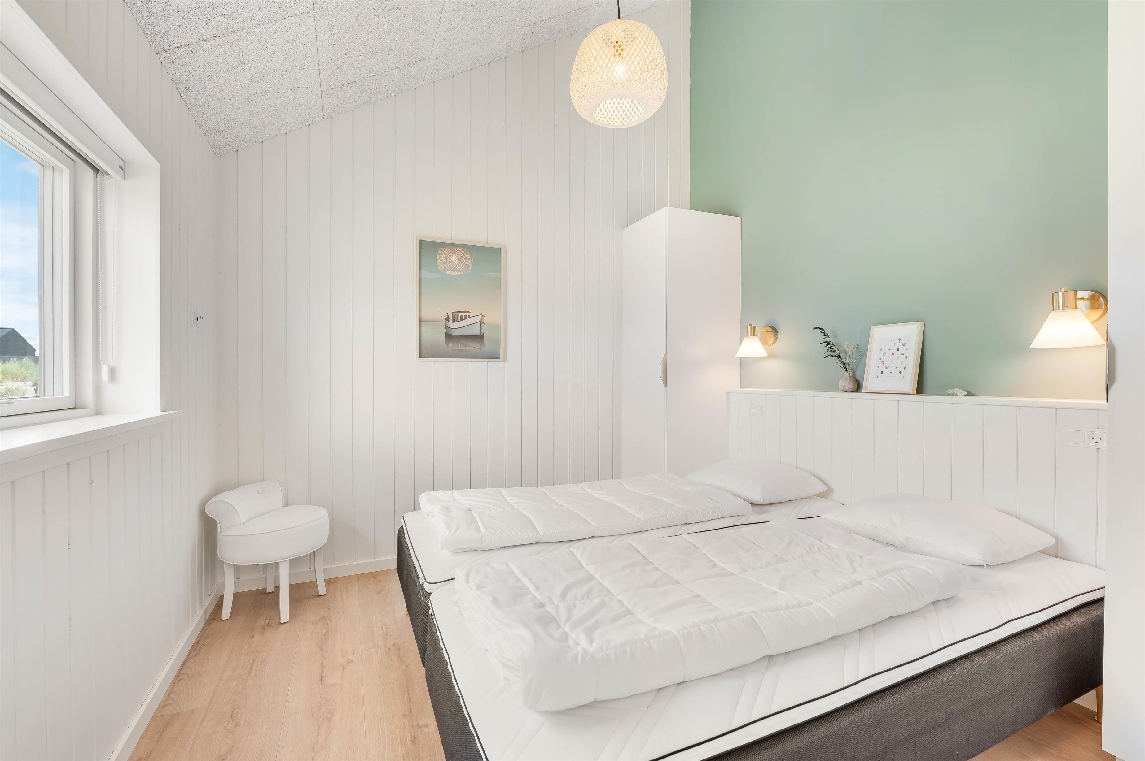 Der er gulvvarme i hele feriehuset, og du kan også supplere varmen med den energibesparende varmepumpe. De to højkvalitetsbadeværelser forebygger trafikprop om morgenen. Der er laminatgulv i hele stuen og i alle 4 soveværelser.