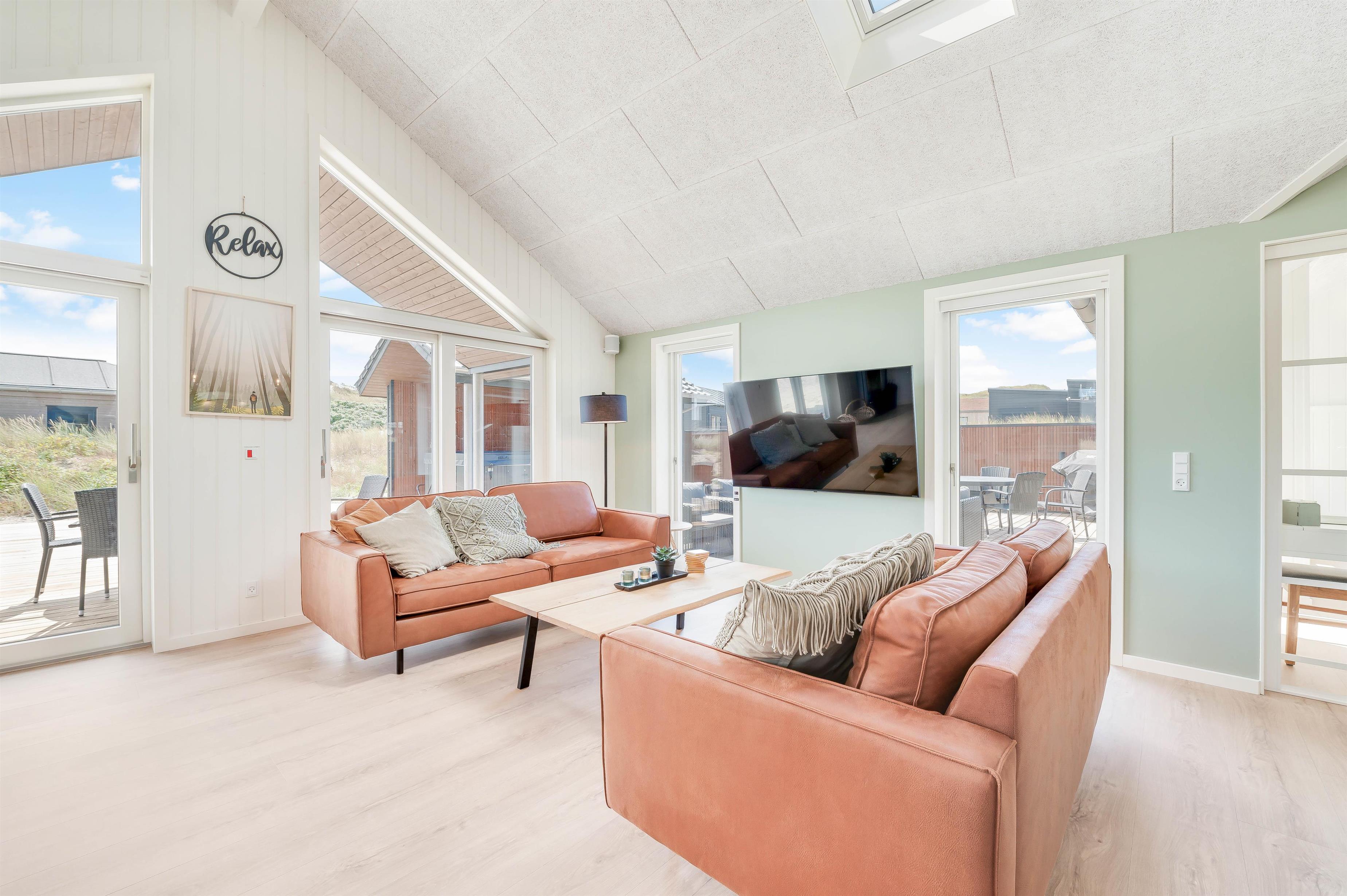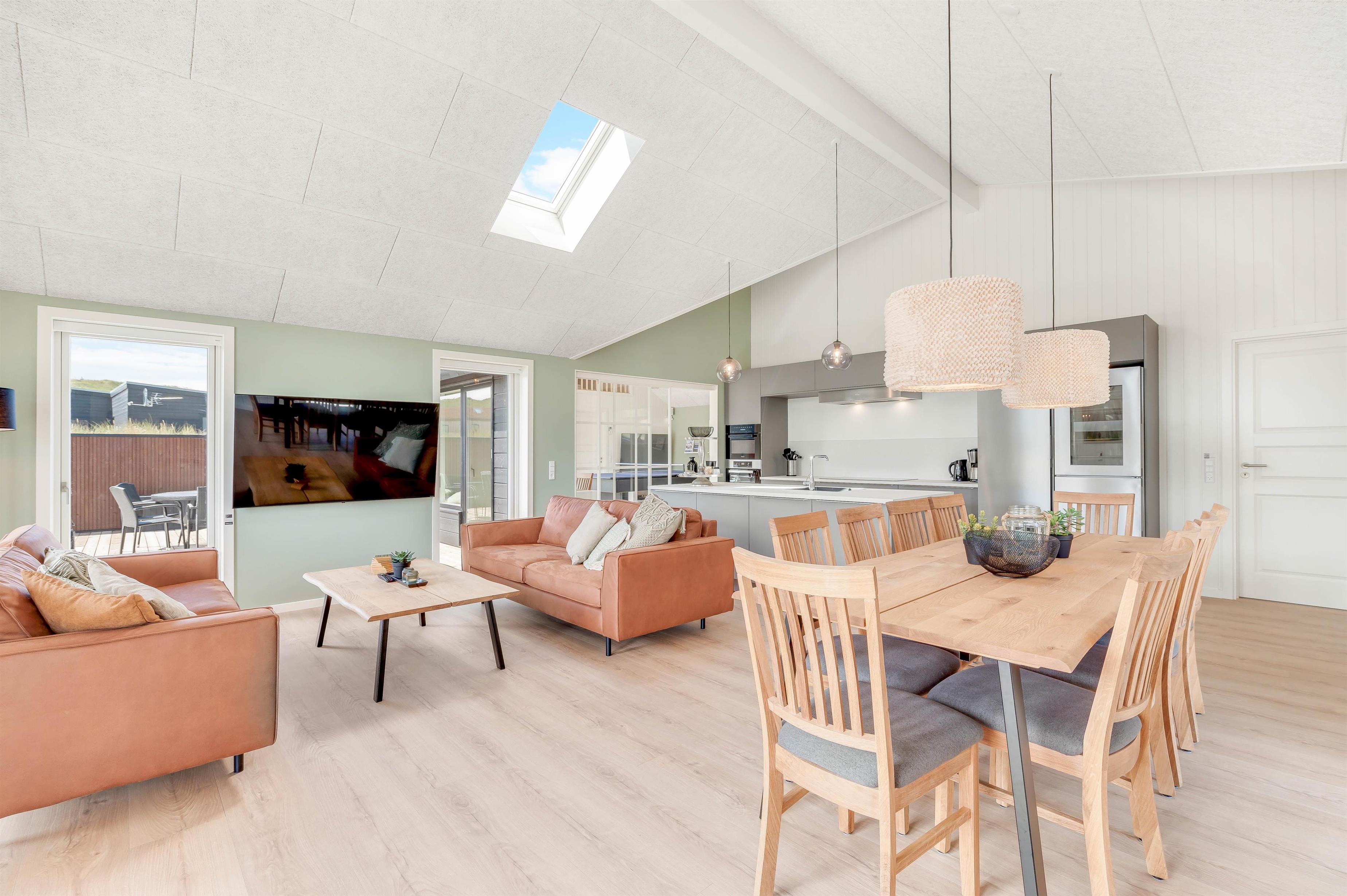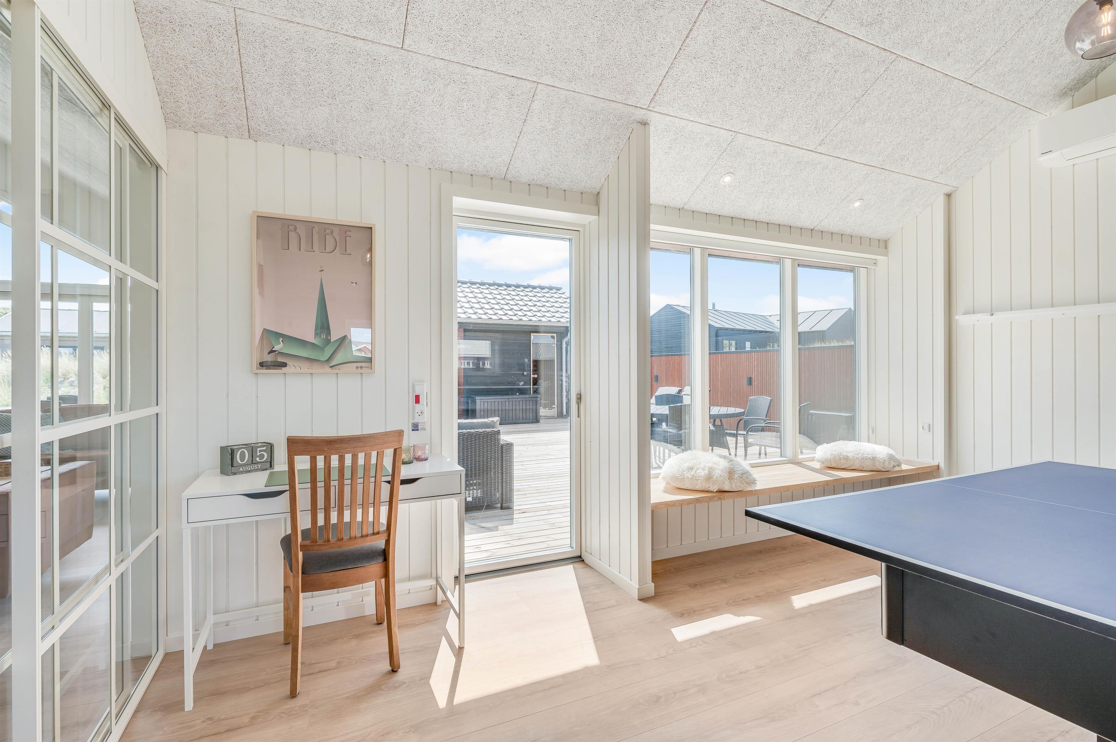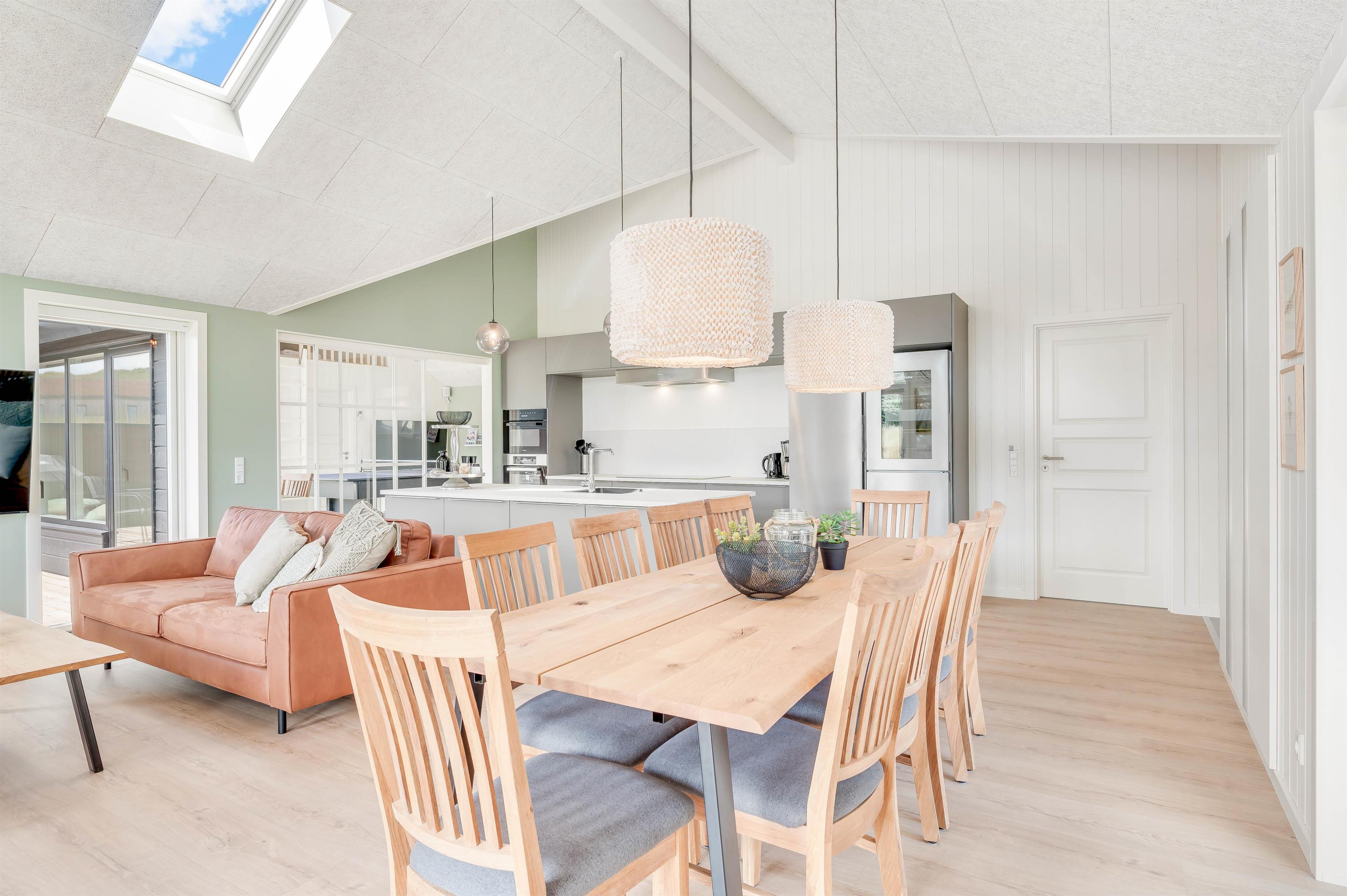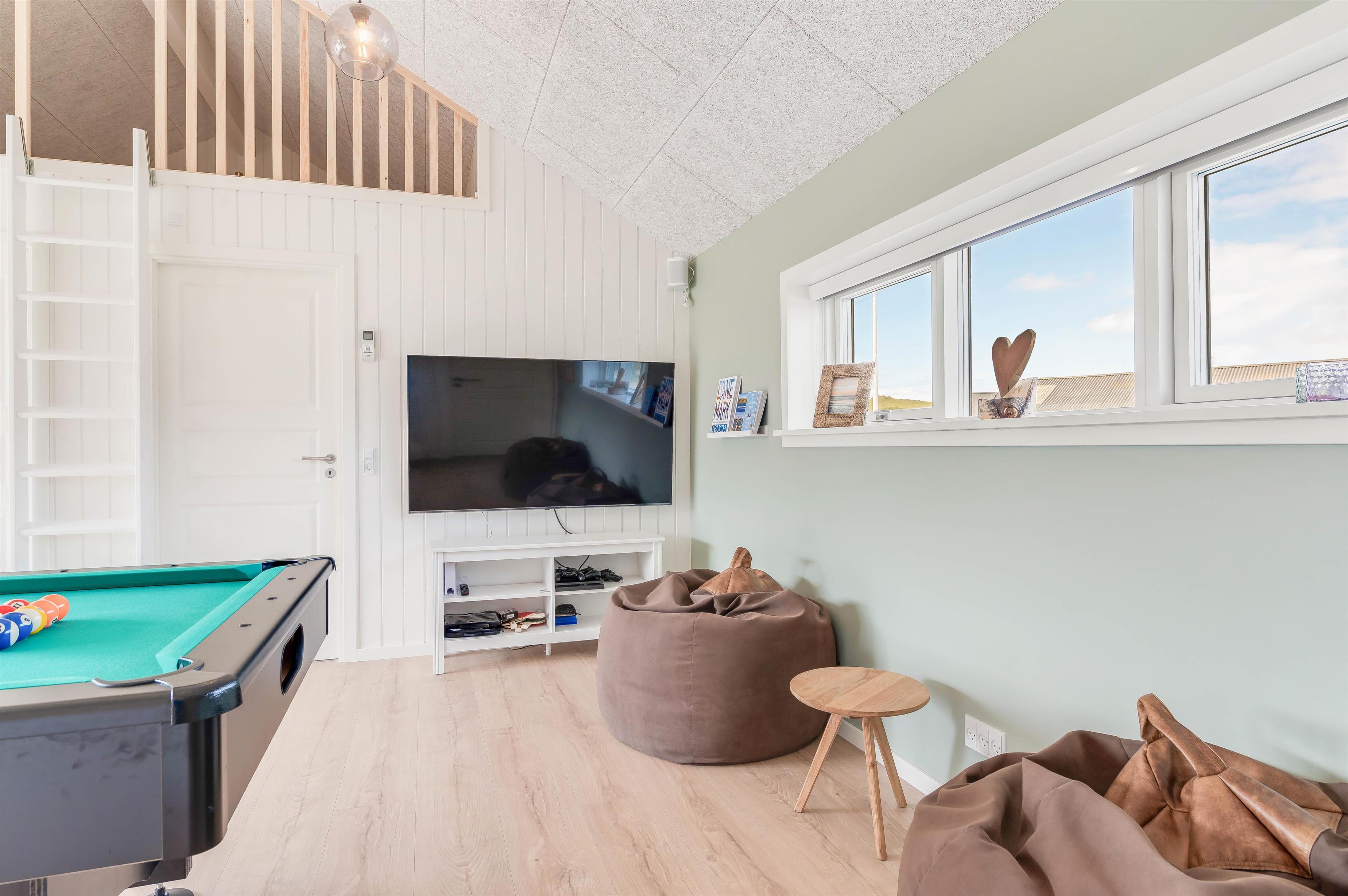 Op til 10 personer og to hunde kan føle sig velkommen i dette luksuriøst indrettede feriehus. Den rummelige og indbydende indrettede opholdsstue byder på masser af plads til familie og venner. Nyd en hyggelig aften med et godt glas vin foran brændeovnen eller organisér en tv-aften sammen. Aktivitetsrummet er ideelt til en lang aften med playstation-4, spil, pool eller bordtennis. Der er tysk og dansk tv.