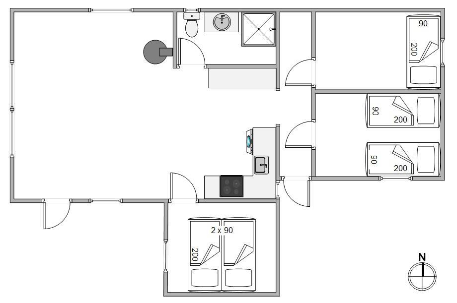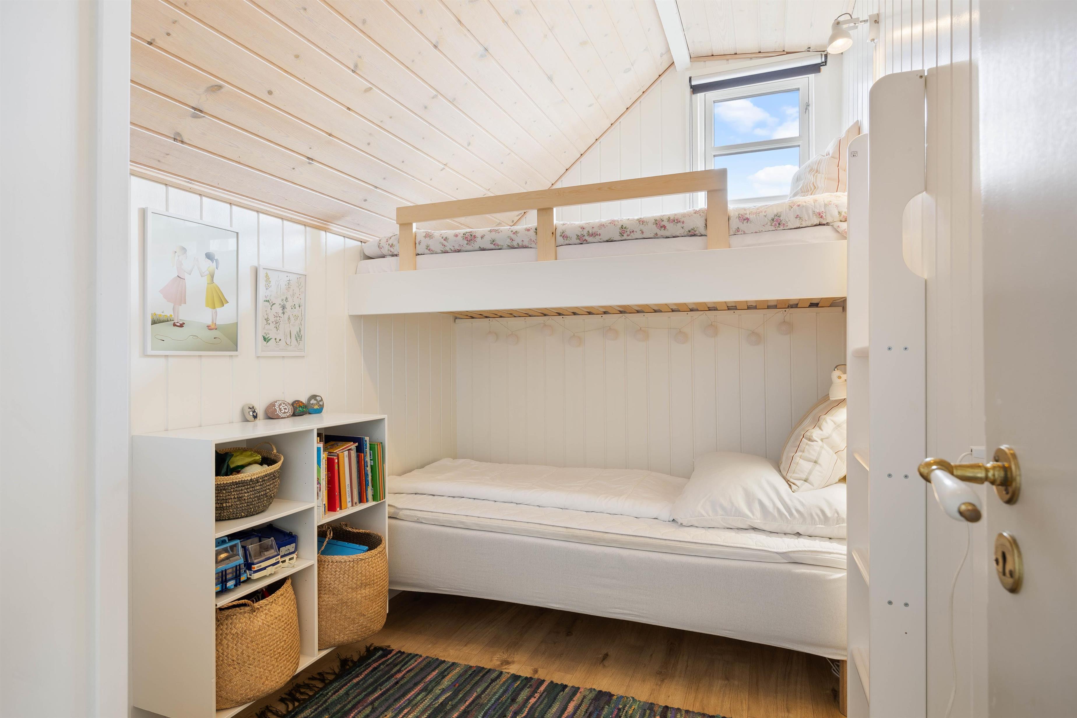 Sovepladserne fordeler sig i 3 soverum. Et værelse er med en dobbeltseng, mens der på de resterende værelser er enkeltsenge.