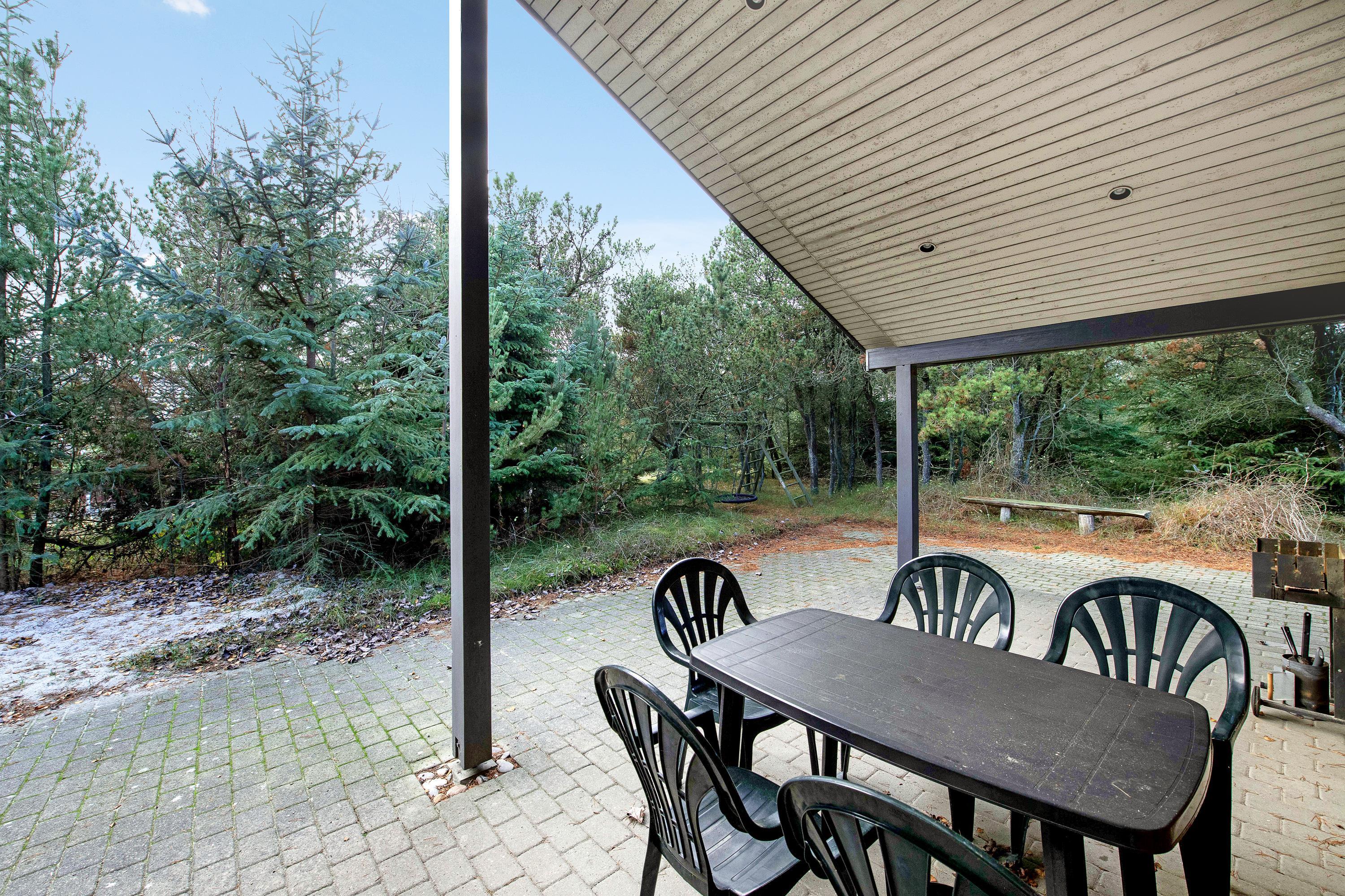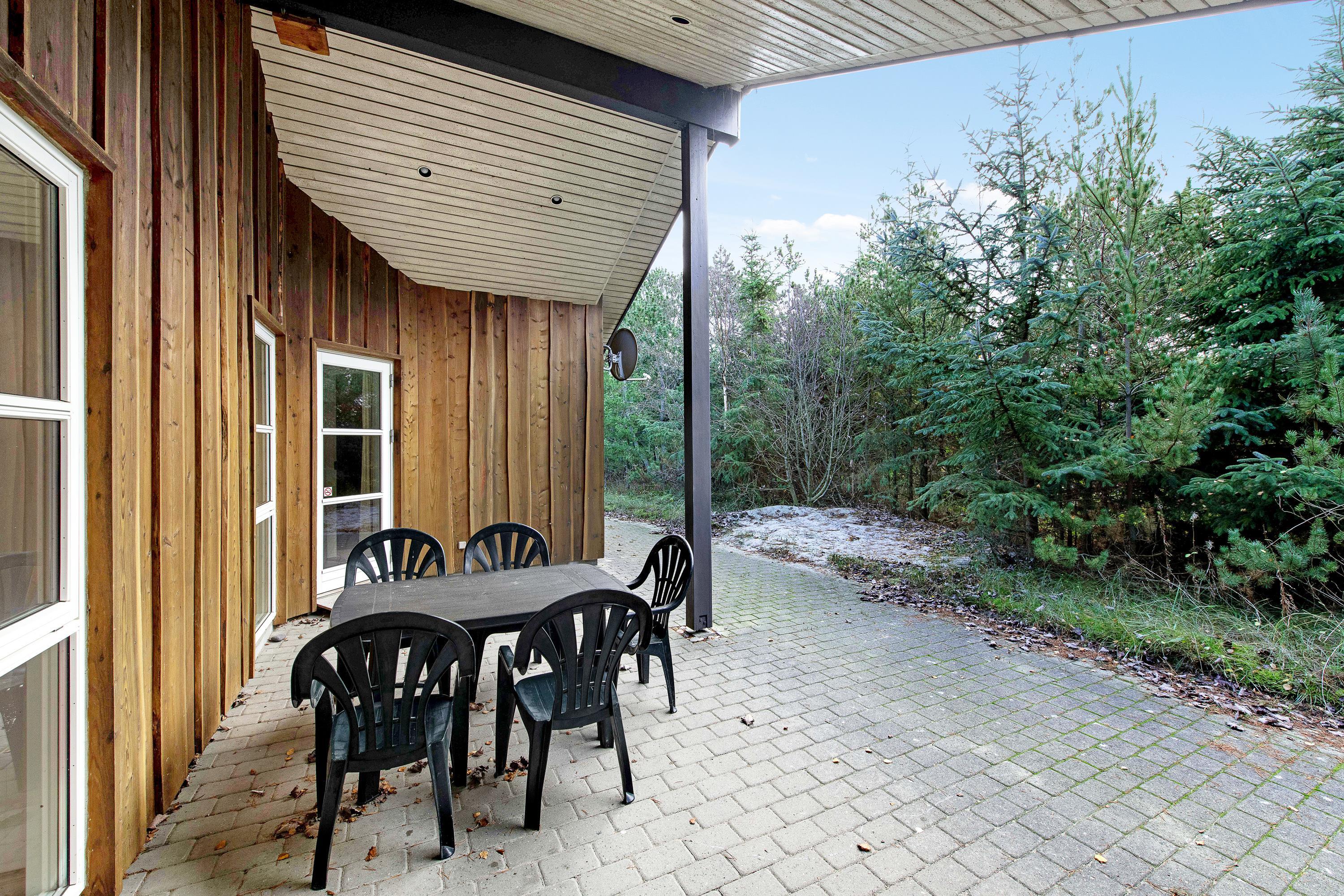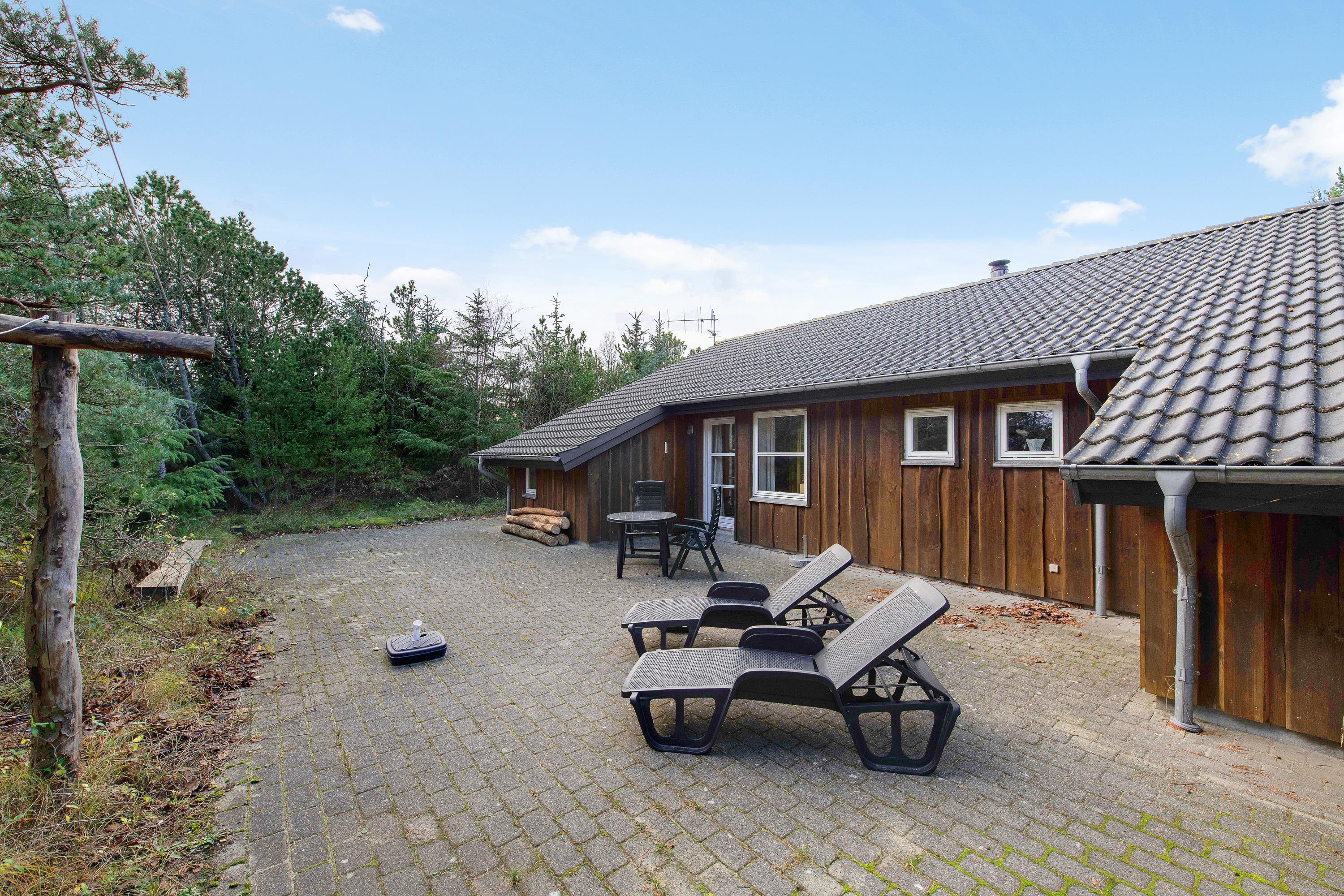 Rundt om sommerhuset finder I flere fine terrasser, så I kan nyde solen dagen igennem. En af terrasserne er lukket og giver trygge rammer til både børn og hunde. En del af terrassen er overdækket og forlænger udesæsonen. Her kan I grille om aftenen, mens solen går ned over klitterne, og havets brusen danner en beroligende baggrund.