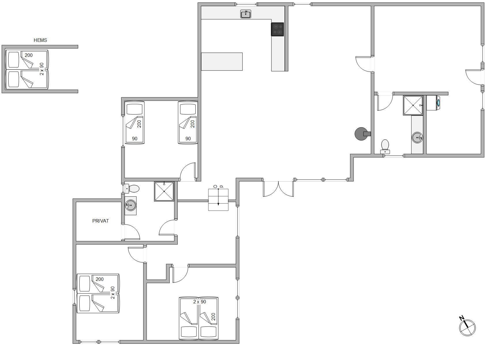 Skønt feriehus med praktisk aktivitetsrum og plads til 8 personer
