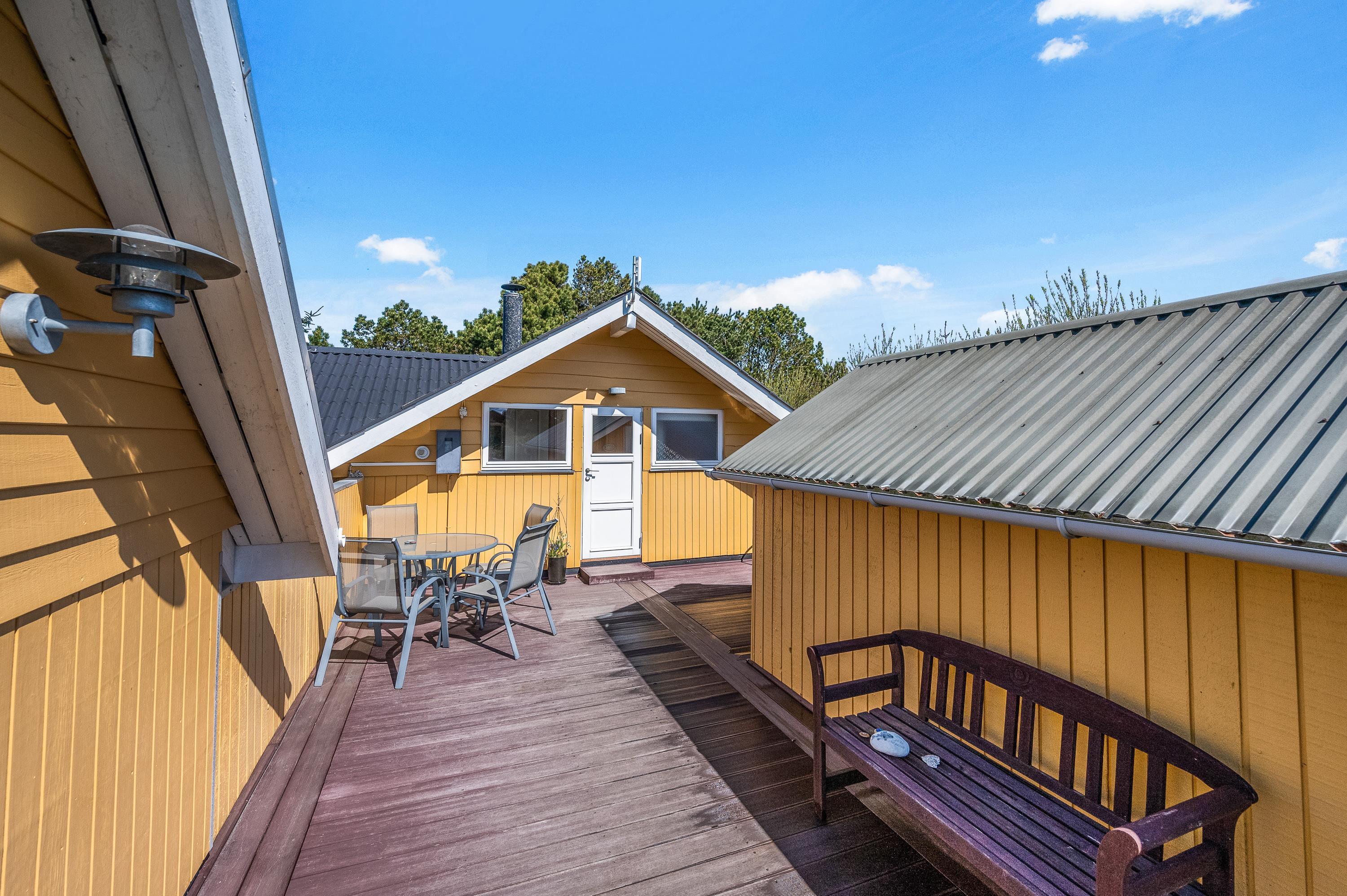 Tag familien med under armen og tag på ferie i dette dejlige feriehus i Bjerregård med plads til 4 personer. Sommerhuset er indrettet med 2 soverum og 1 ekstra i det dertilhørende anneks, som er blevet integreret med træterrassen. Indretningen er lys og hyggelig med synlige bjælker i loftet og brændeovn til at skabe den helt rigtige feriehygge.