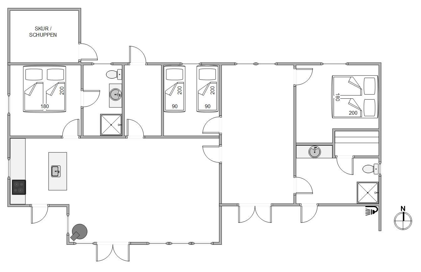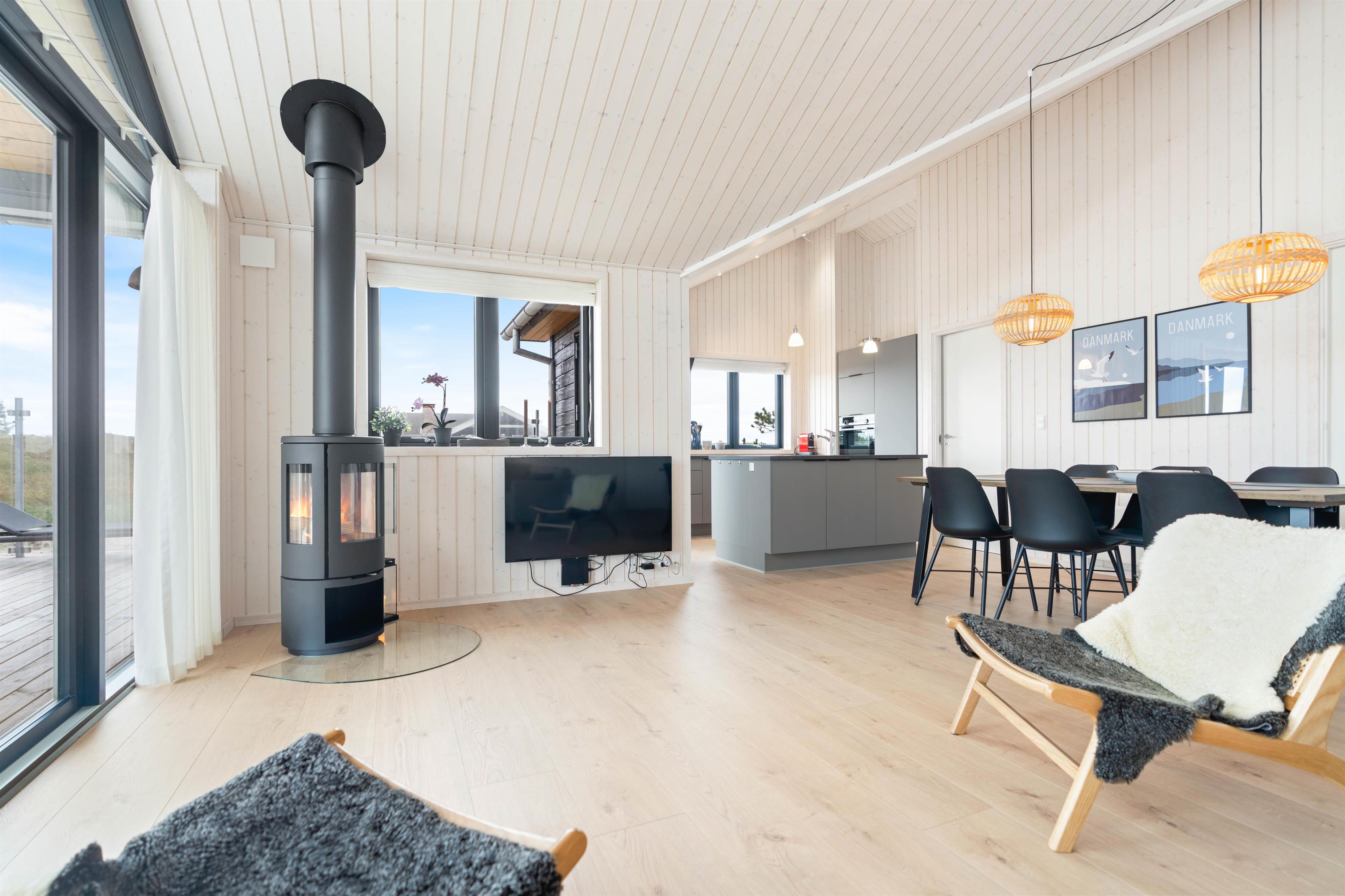 I stuen finder I sommerhusets brændeovn samt den energibesparende varmepumpe. Så tænd op i brændeovnen og sæt jer med et glas vin til lyden af ildens knitren og mærk varme sprede sig i rummet. Eller hvad med at byde hinanden på et spil billard, dart eller bordtennis? Lav en feriekonkurrence og kår årets vinder i det fede aktivitetsrum.