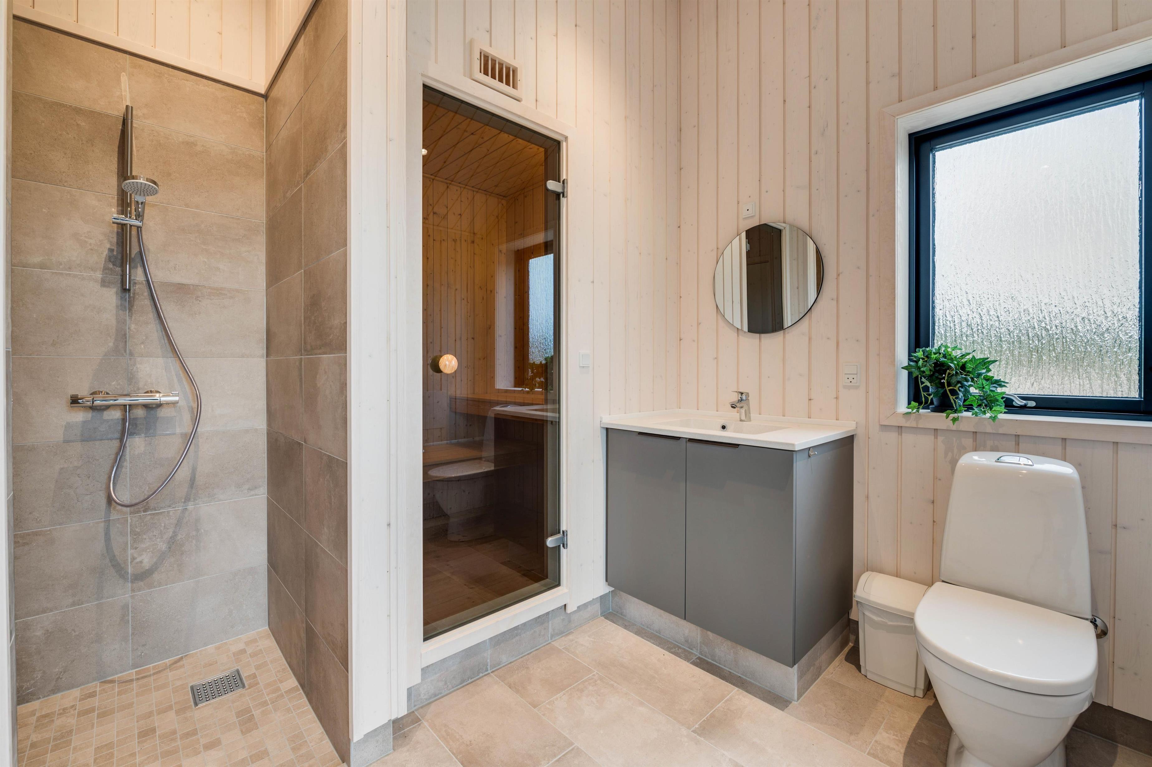 Lækkert badeværelse med sauna og gulvvarme