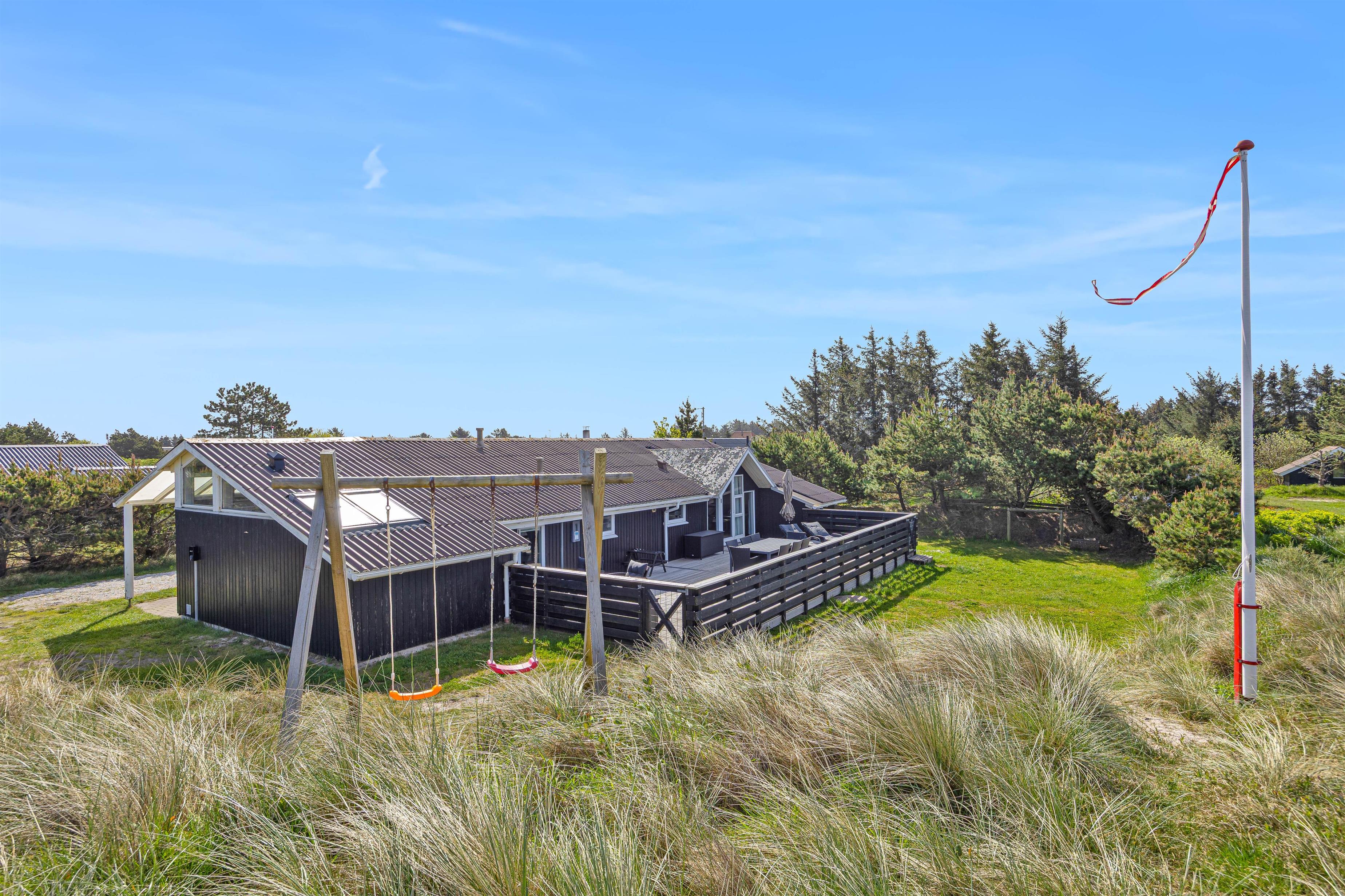 Feriehuset er omgivet af smukt klitlandskab så langt øjet rækker. I skal ikke gå særlig længe, før I har både indkøbsmuligheder og stranden i sigte. Der er nemlig 200 meter til den lokale købmand og 800 meter til stranden. I har altså rig mulighed for at tage jeres hunde med på skønne gåture til stranden, hvor de rigtigt kan boltre sig i Vesterhavets bølger.