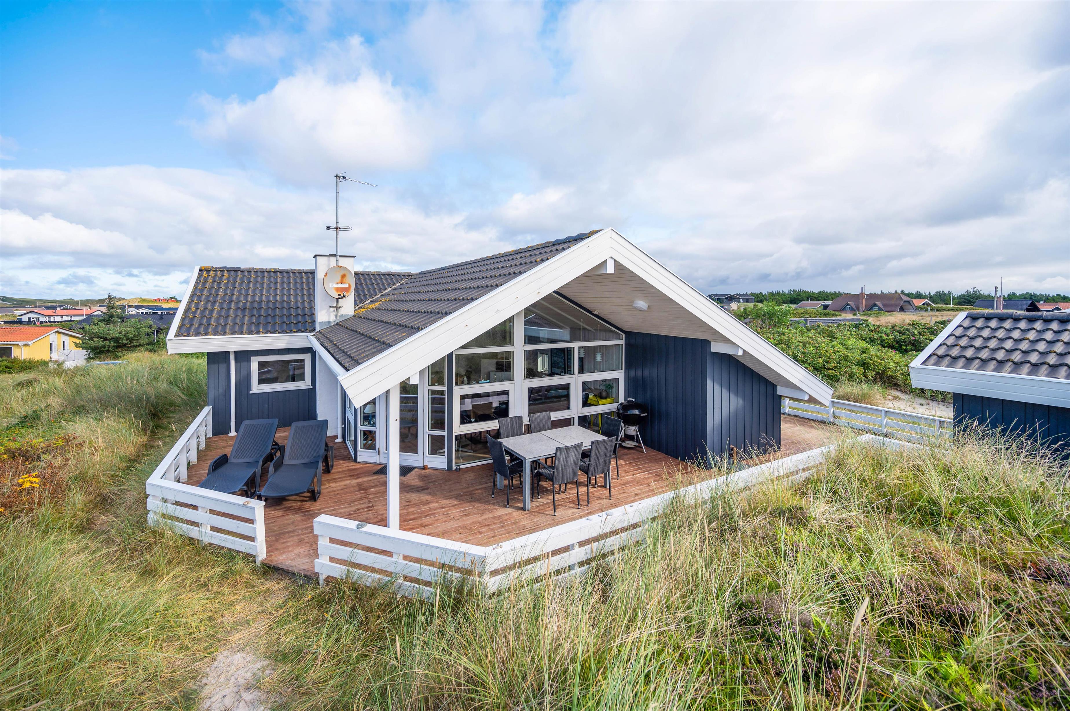 Det hyggelige feriehus, indbyder virkelig til en ferie med afslapning og familiehygge. Igennem de store vinduer mod syd fornemmer man hele tiden klitlandskabet og roen – også på de køligere dage, hvor husets hyggelige atmosfære lægger op til familiespil og afslapning foran brændeovnen.