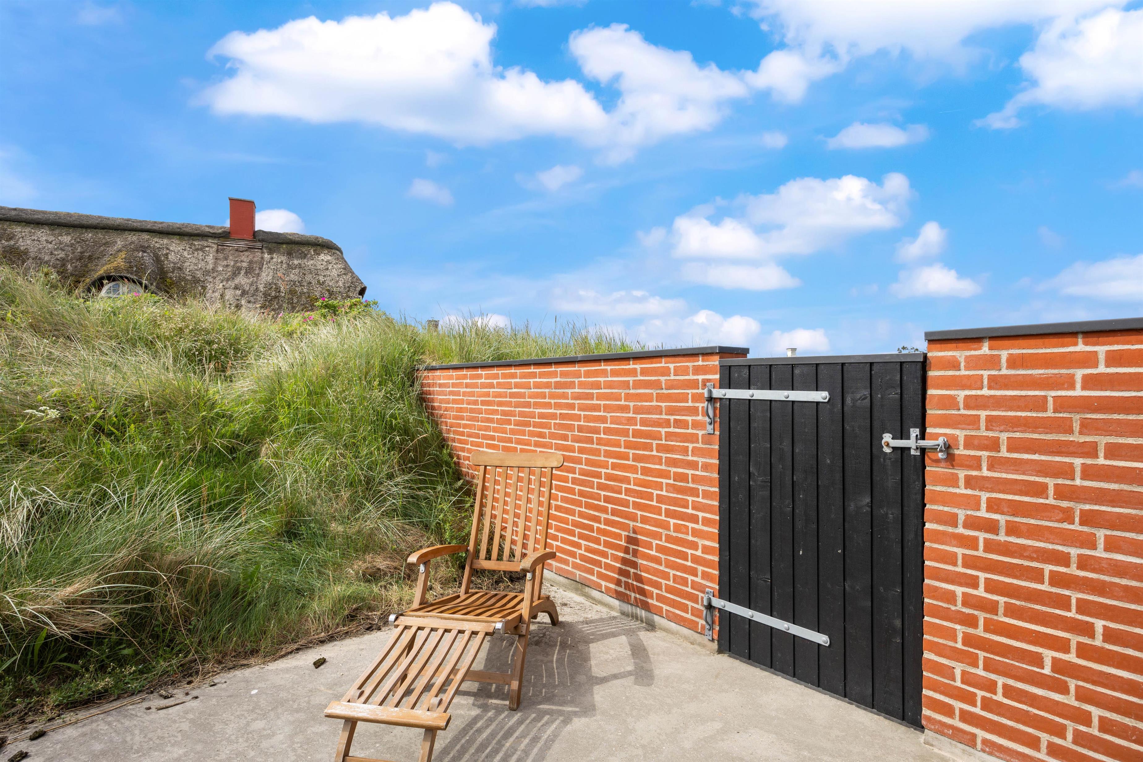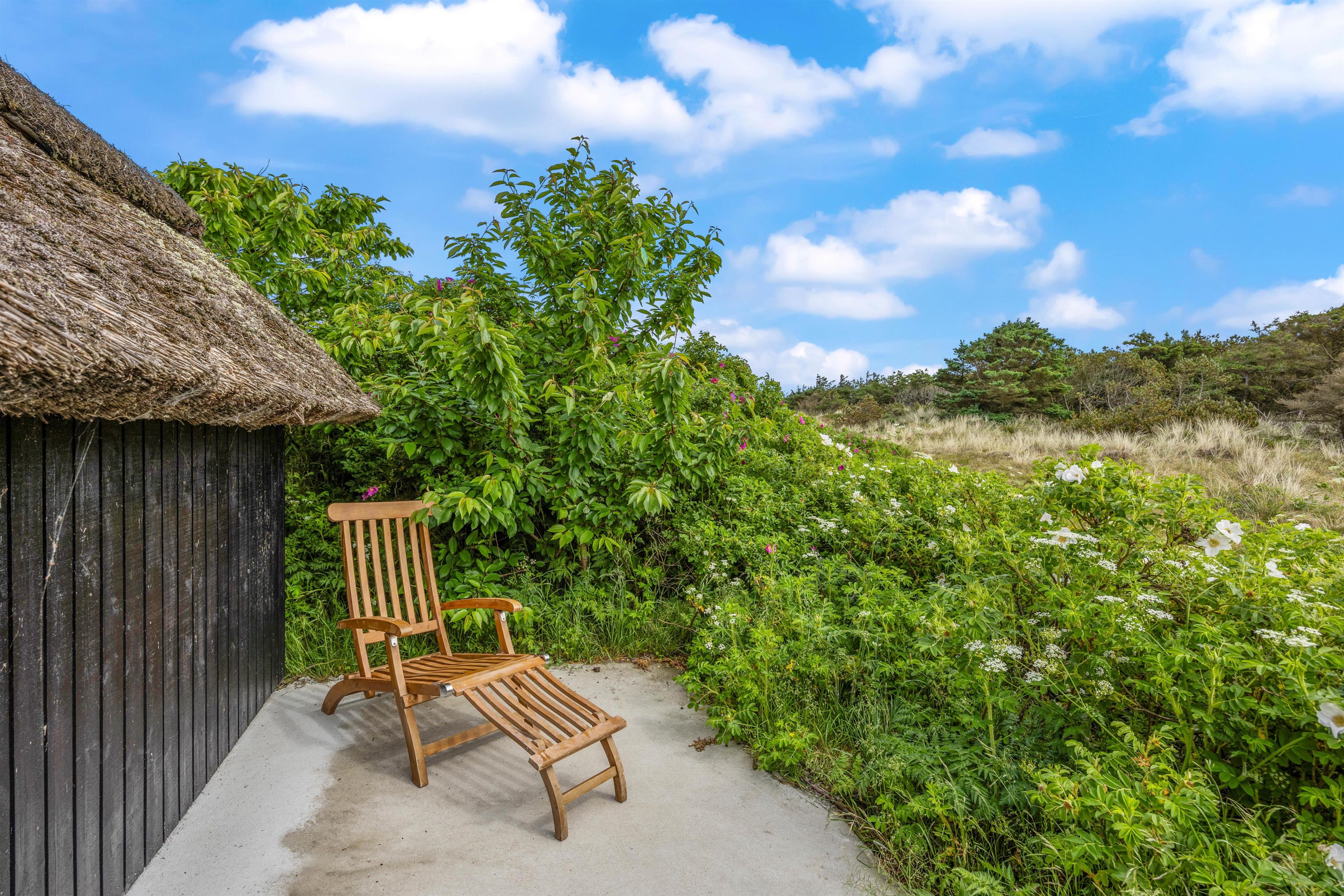 Feriehusets afskærmede terrasse er et højdepunkt, som giver dig og dine kære rig mulighed for hyggelige stunder under åben himmel. Her har I havemøbler og grill til rådighed, så I kan afslutte feriedagene med hyggelige grillmiddage i sommersolen.