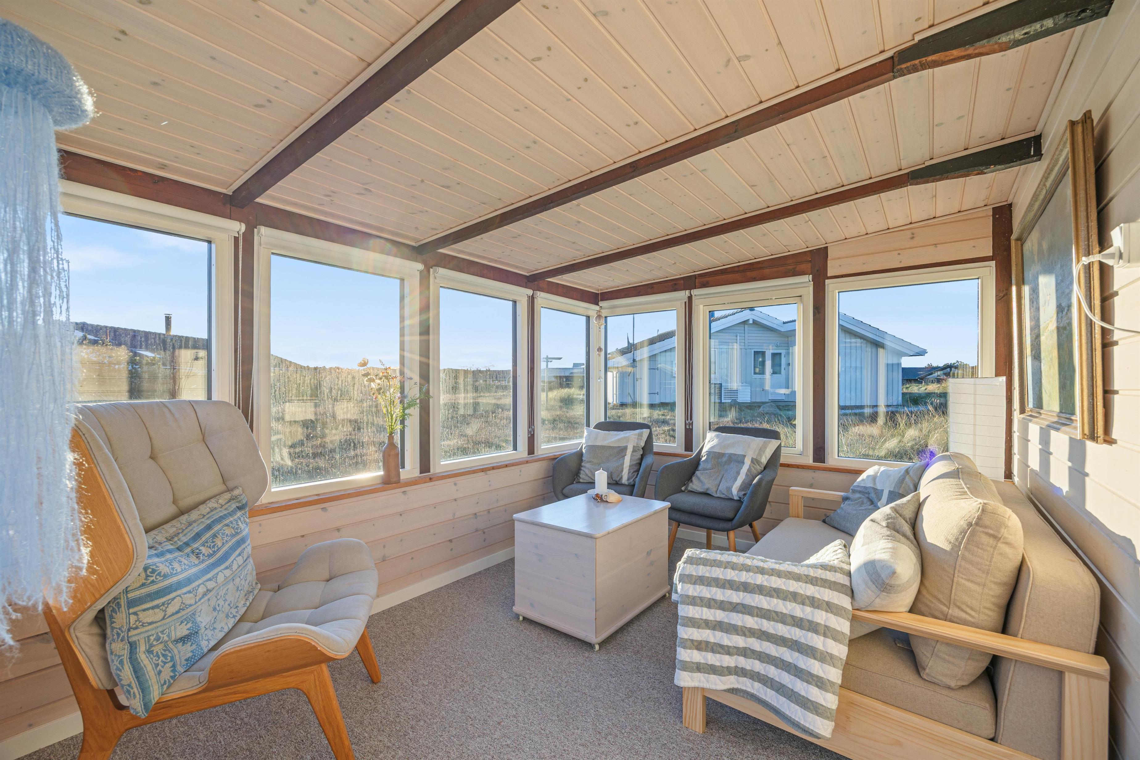 Rundt omkring feriehuset er mange kroge, hvor I altid kan finde en god plet med læ og nyde solen og udsigten over naturgrunden. Tag solbad i liggestolene eller træk jer tilbage i havemøblerne med en kop te og en god bog. Tænd op i grillen til aften, og nyd et lækkert grillmåltid sammen, imens skyggerne bliver lange. Med kun 400 meter til Vesterhavet kan I stadig nå en tur til stranden og opleve solen gå ned i Vesterhavet. Det er altid en imponerende oplevelse, uanset vejret.