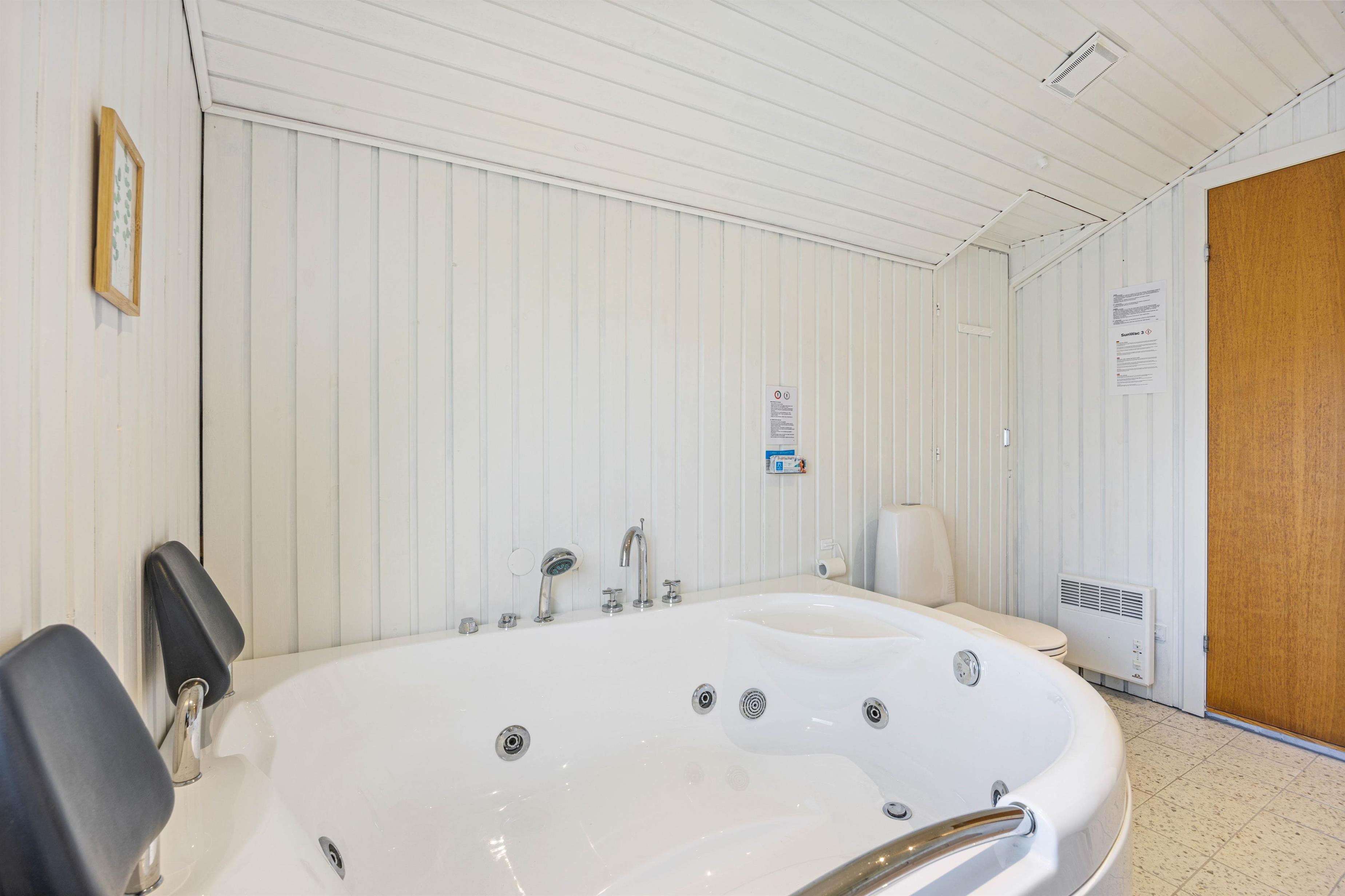 I forbindelse med badeværelset med gulvvarme kan I arrangere en lille wellnessaften med sauna og spa, hvor I kan slappe af efter en dag, fyldt med oplevelser. Der er både vaskemaskine og tørretumbler til jeres rådighed, så I kan rejse let og opfriske tøj og håndklæder i løbet af ferien.