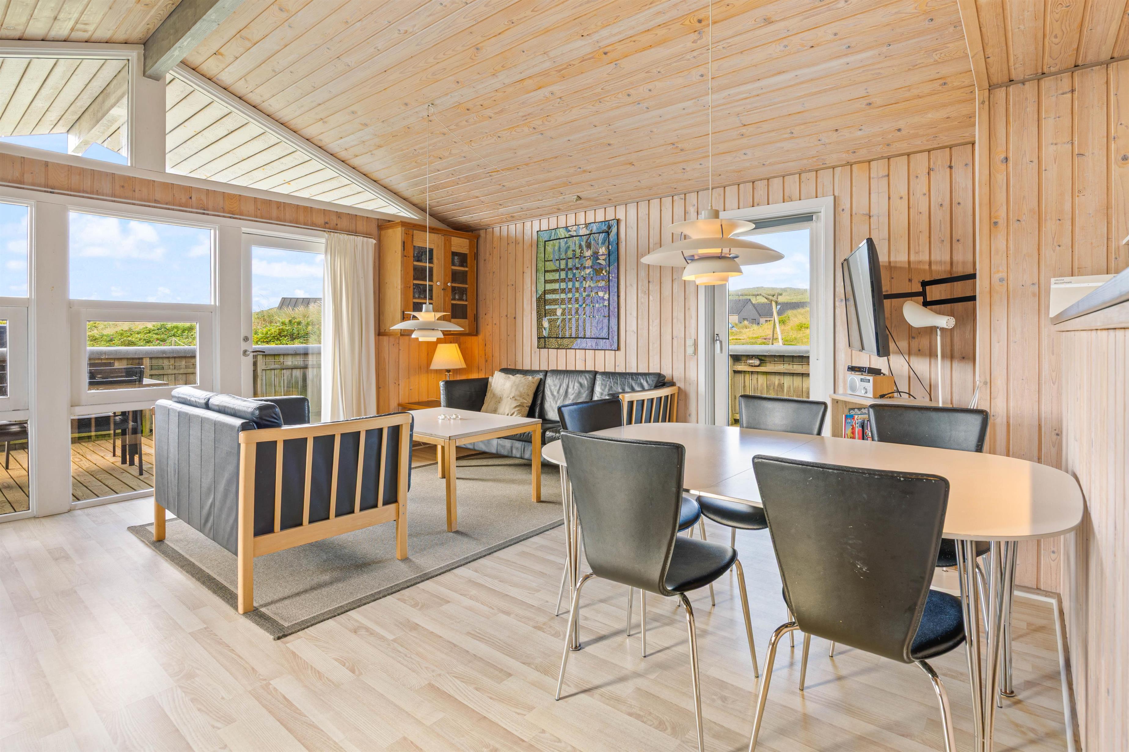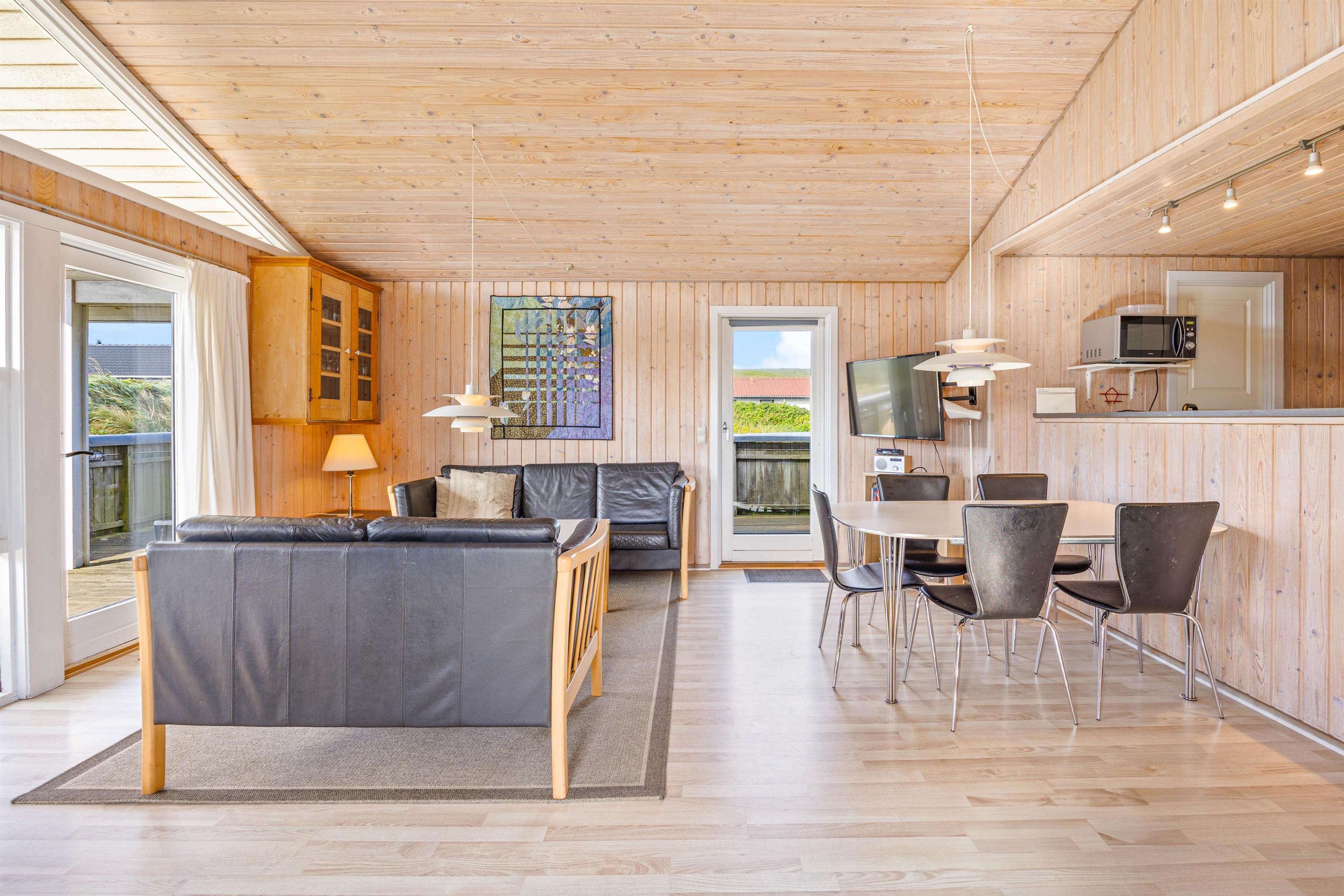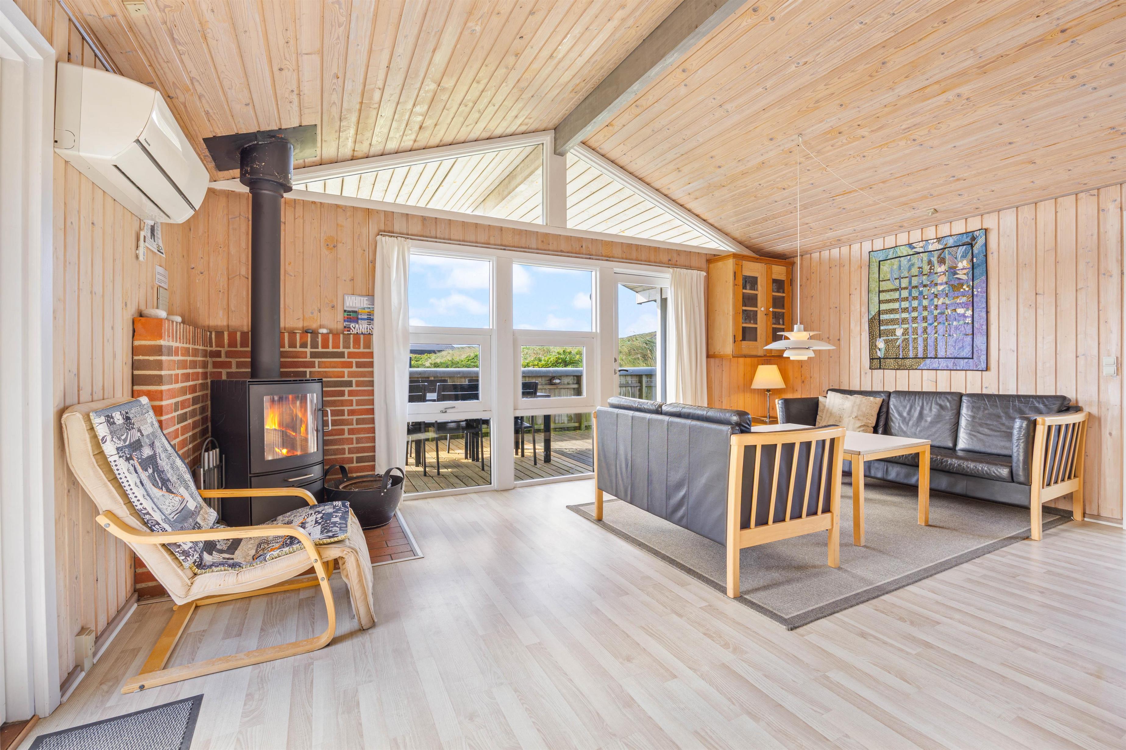 Det flotte landskab, som breder sig omkring feriehuset kan nydes fra havemøblerne på terrassen, men kan også ses fra feriehusets inderum. Ønsker I at bade i Vesterhavet, ligger sommerhuset tæt på en sti, der fører jer direkte ned til den hvide sandstrand og de brusende bølger. Feriehuset ligger kun 100 meter fra vandet.
