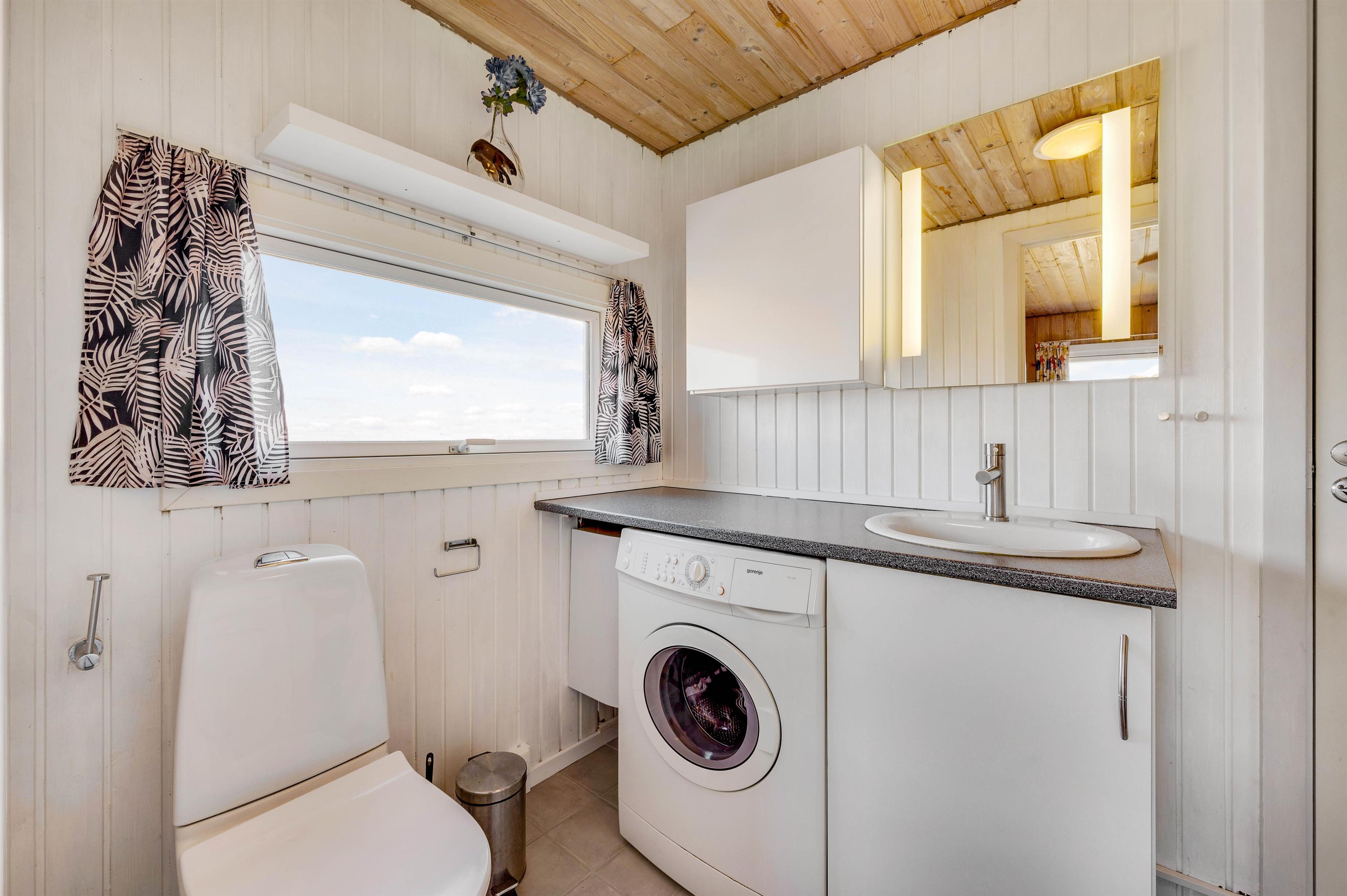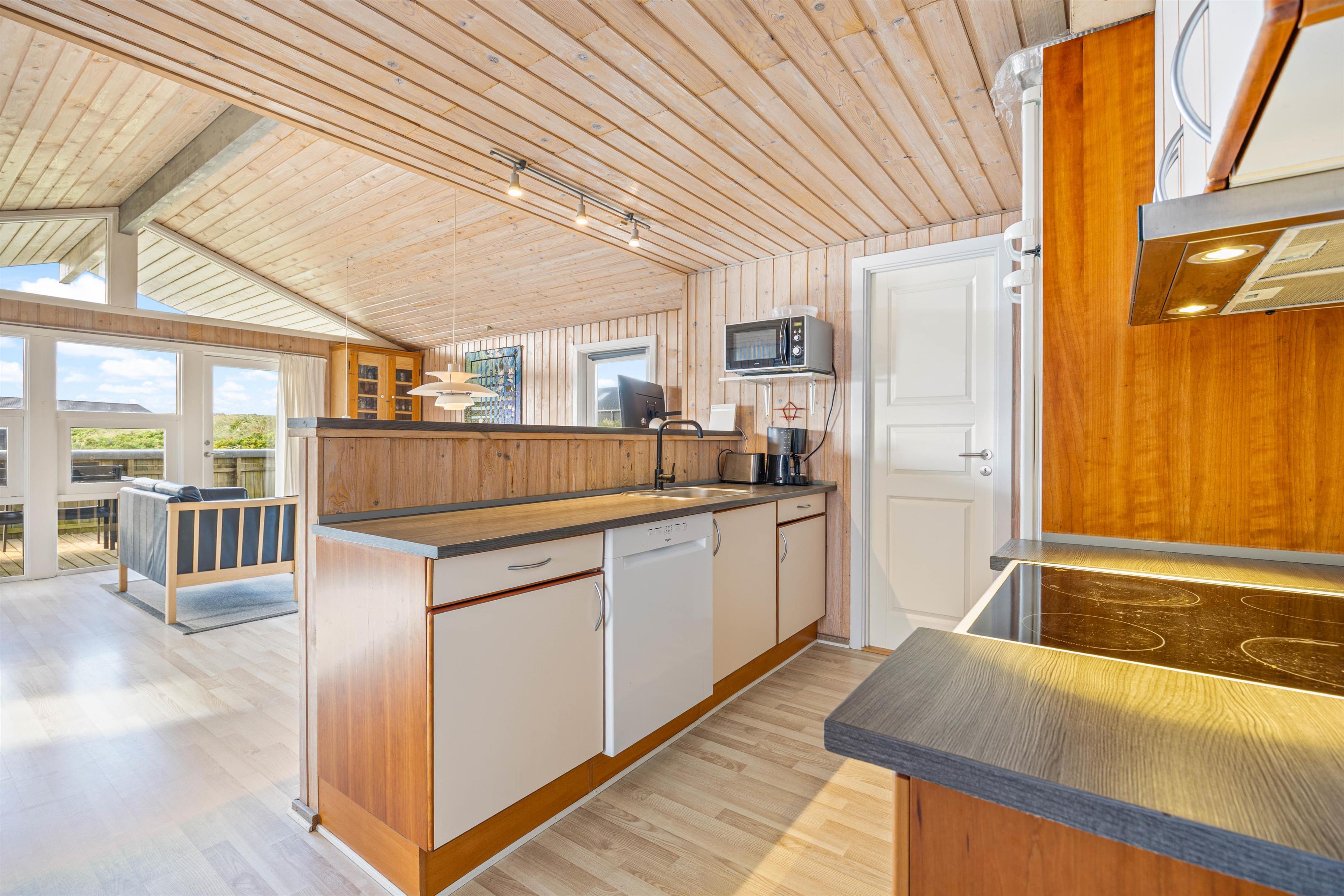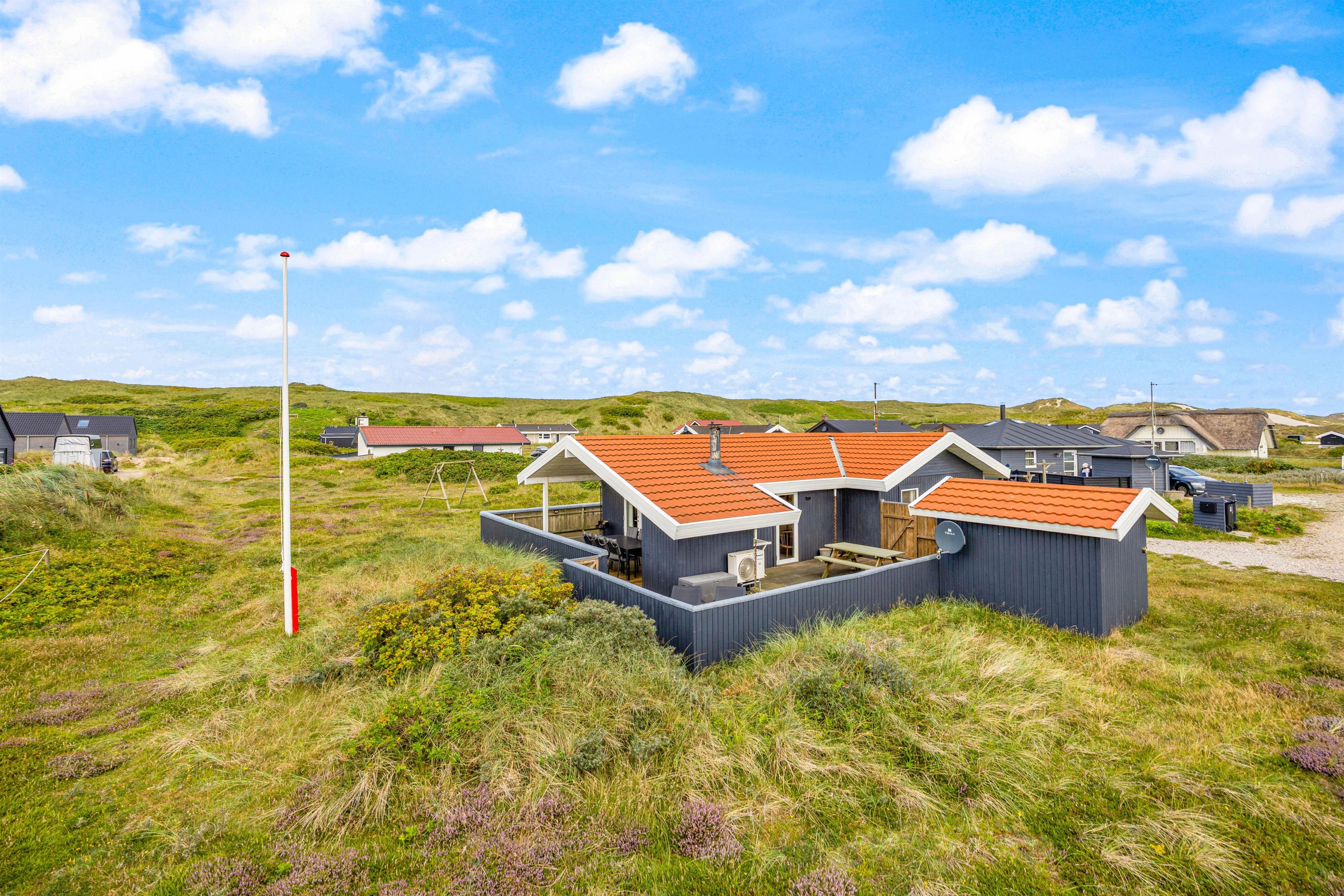 Det flotte landskab, som breder sig omkring feriehuset kan nydes fra havemøblerne på terrassen, men kan også ses fra feriehusets inderum. Ønsker I at bade i Vesterhavet, ligger sommerhuset tæt på en sti, der fører jer direkte ned til den hvide sandstrand og de brusende bølger. Feriehuset ligger kun 100 meter fra vandet.