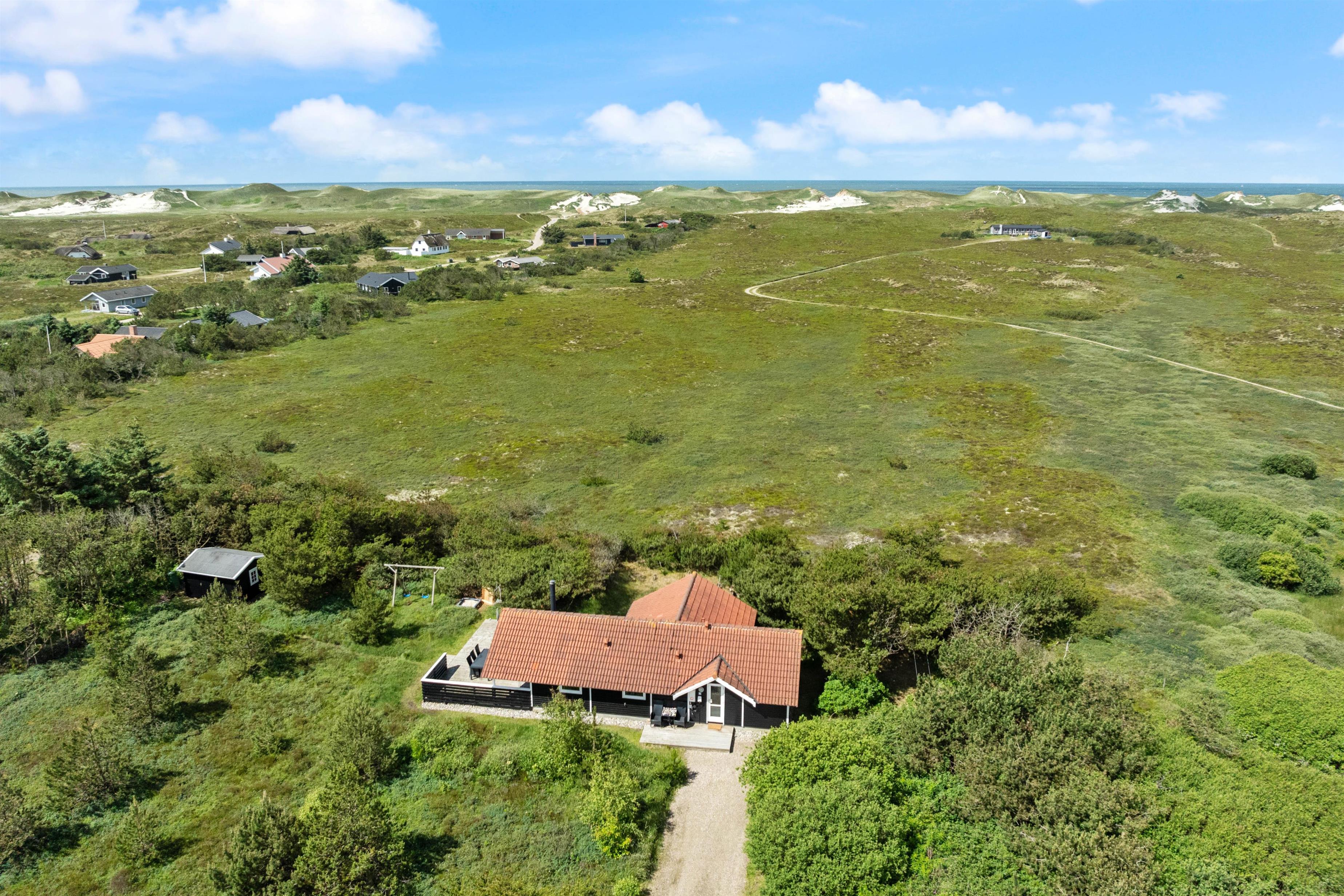 Fra sommerhuset er der blot 700 meter til Vesterhavet og den vidtstrakte sandstrand, der indbyder til lange gåture langs vandet. Naturen omkring Bjerregård er ideel til vandreture, cykling og strandaktiviteter, så beliggenheden er helt ideel for naturelskere. Den nærliggende Ringkøbing Fjord er kendt for sine fremragende forhold til windsurfing og kitesurfing, og den unikke natur omkring fjorden giver mulighed for roligere aktiviteter som fuglekiggeri og fiskeri.