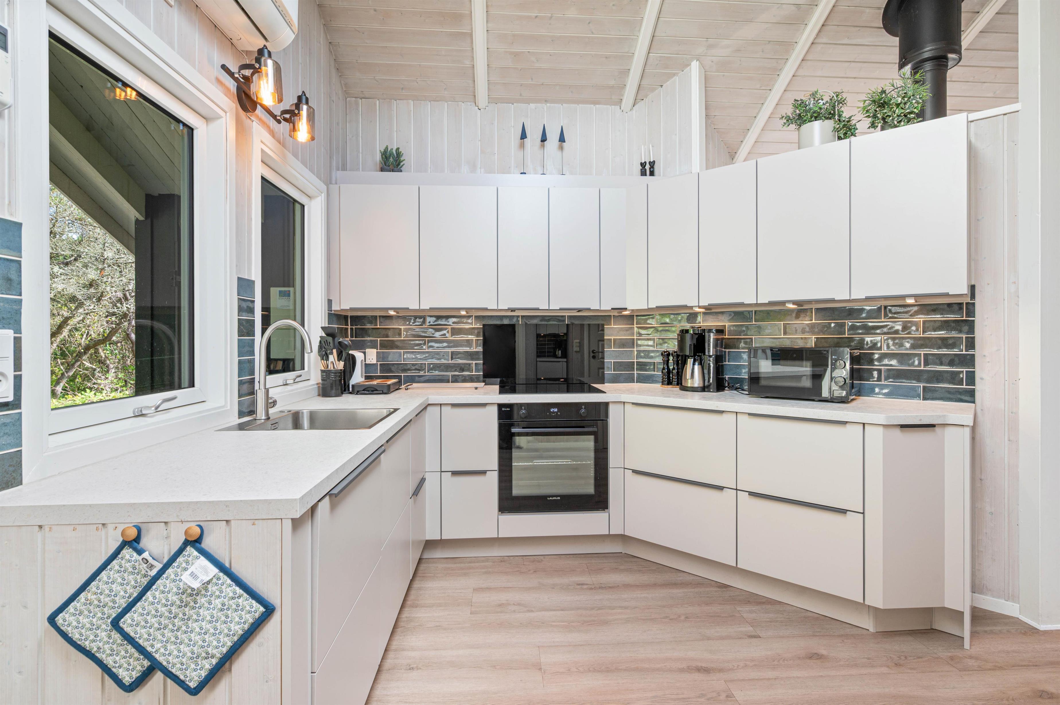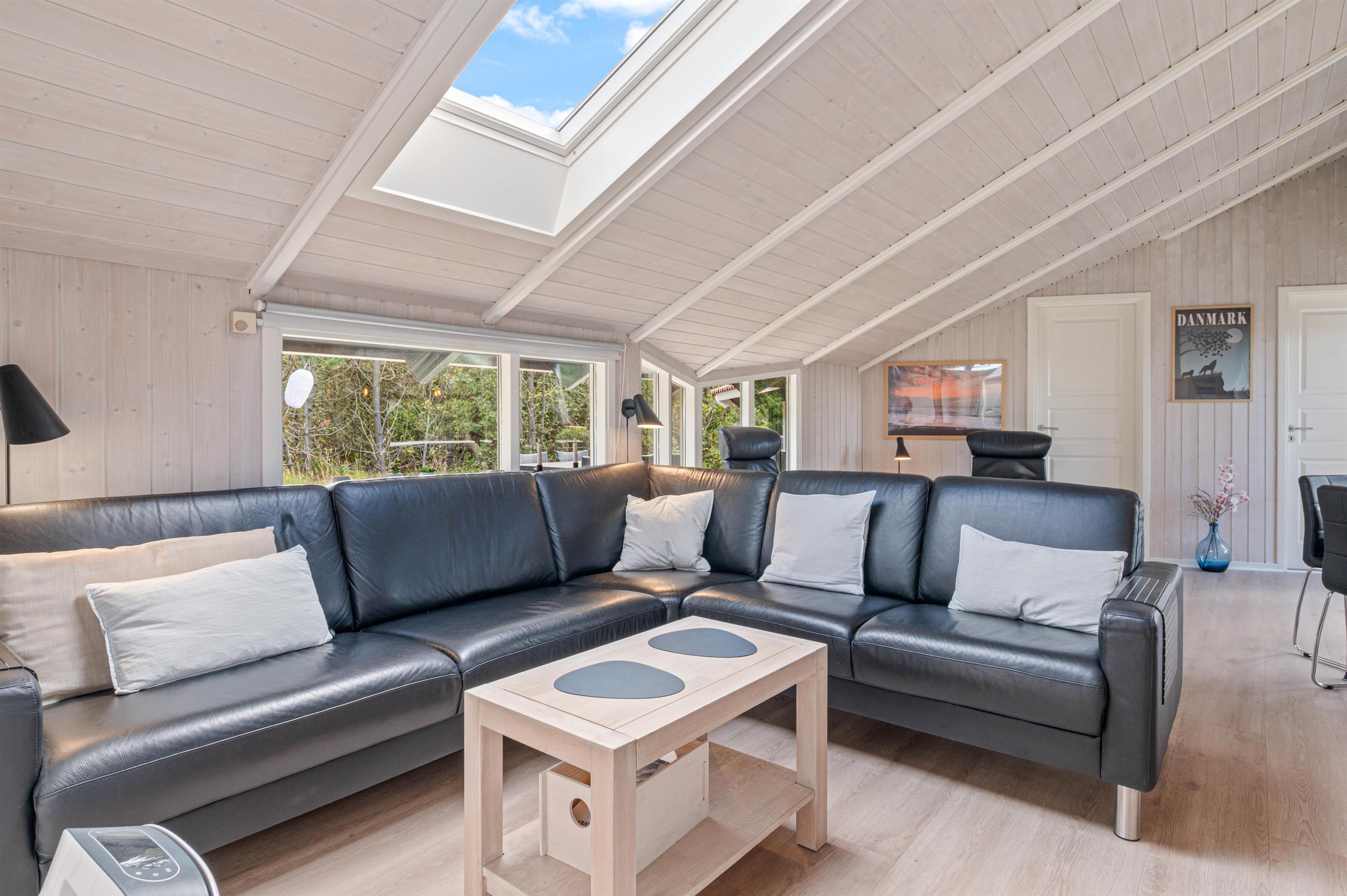Sommerhusets hjerterum er opholdsstuen, hvor hele familien kan samles til hyggelige stunder, mens brændeovnen sætter prikken over i'et til feriestemning. Sommerhuset har desuden en energivenlig varmpepumpe, som I også kan benytte jer af til at få en behagelig temperatur i rummet.