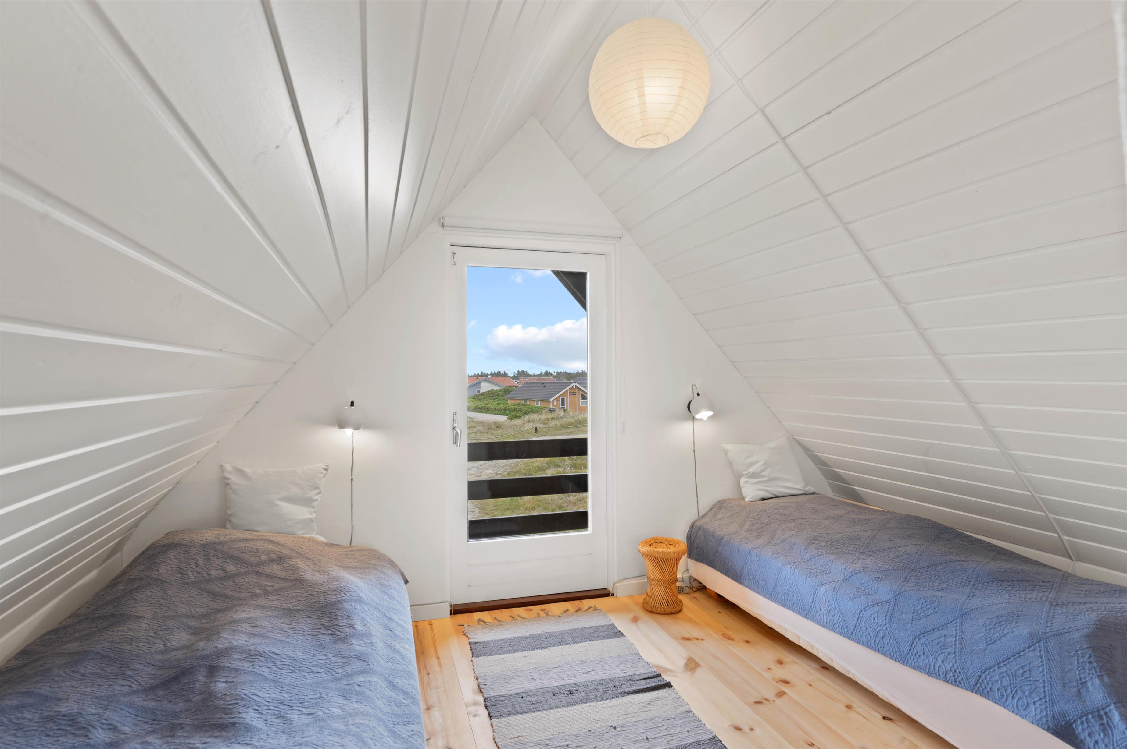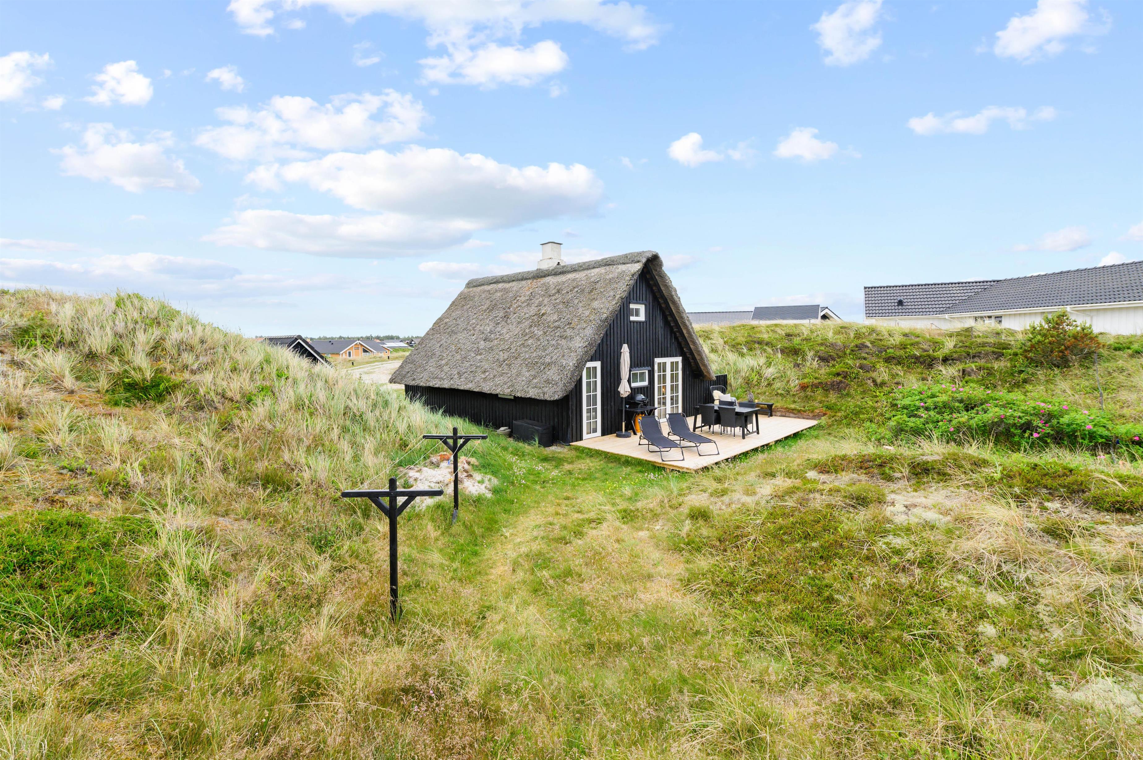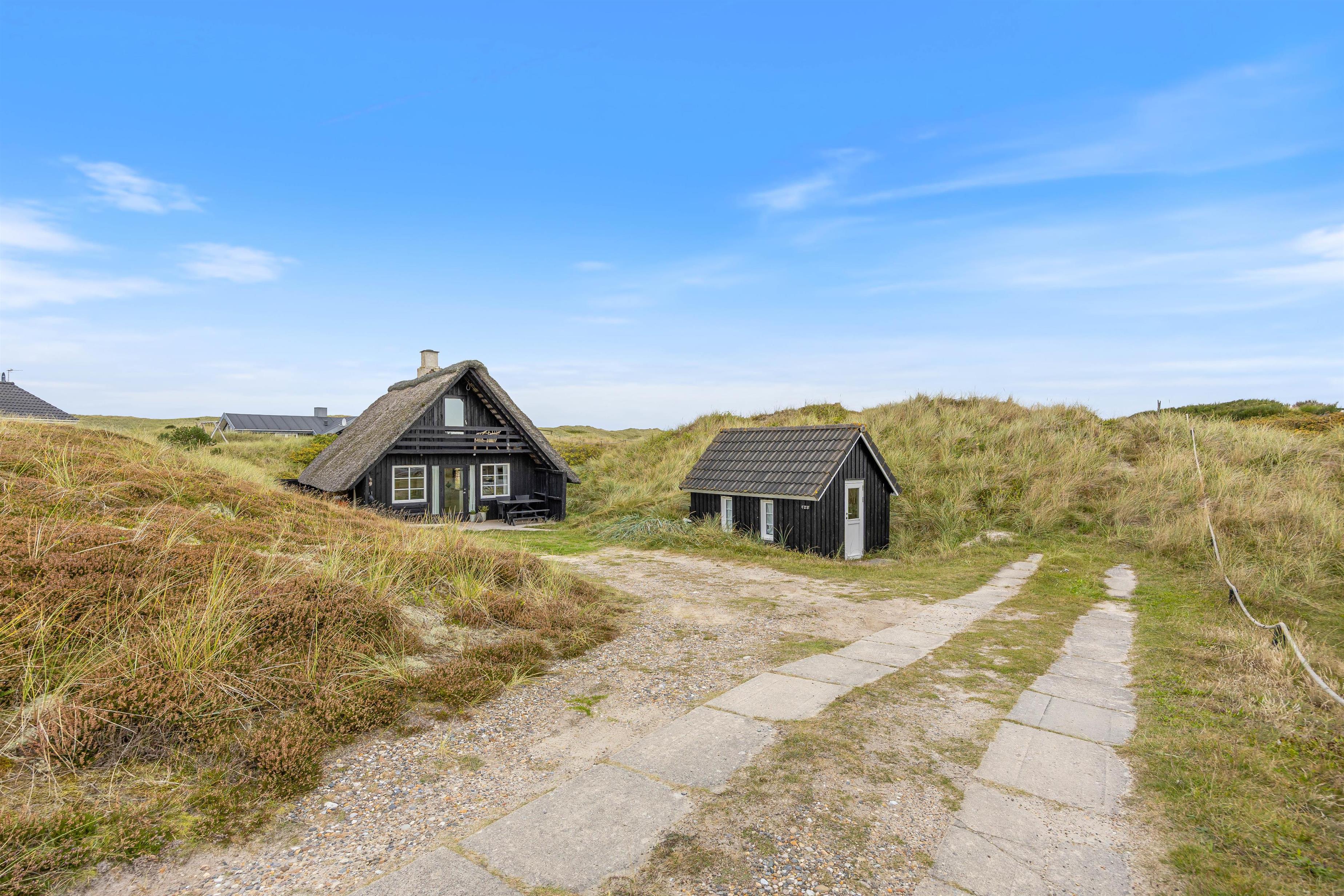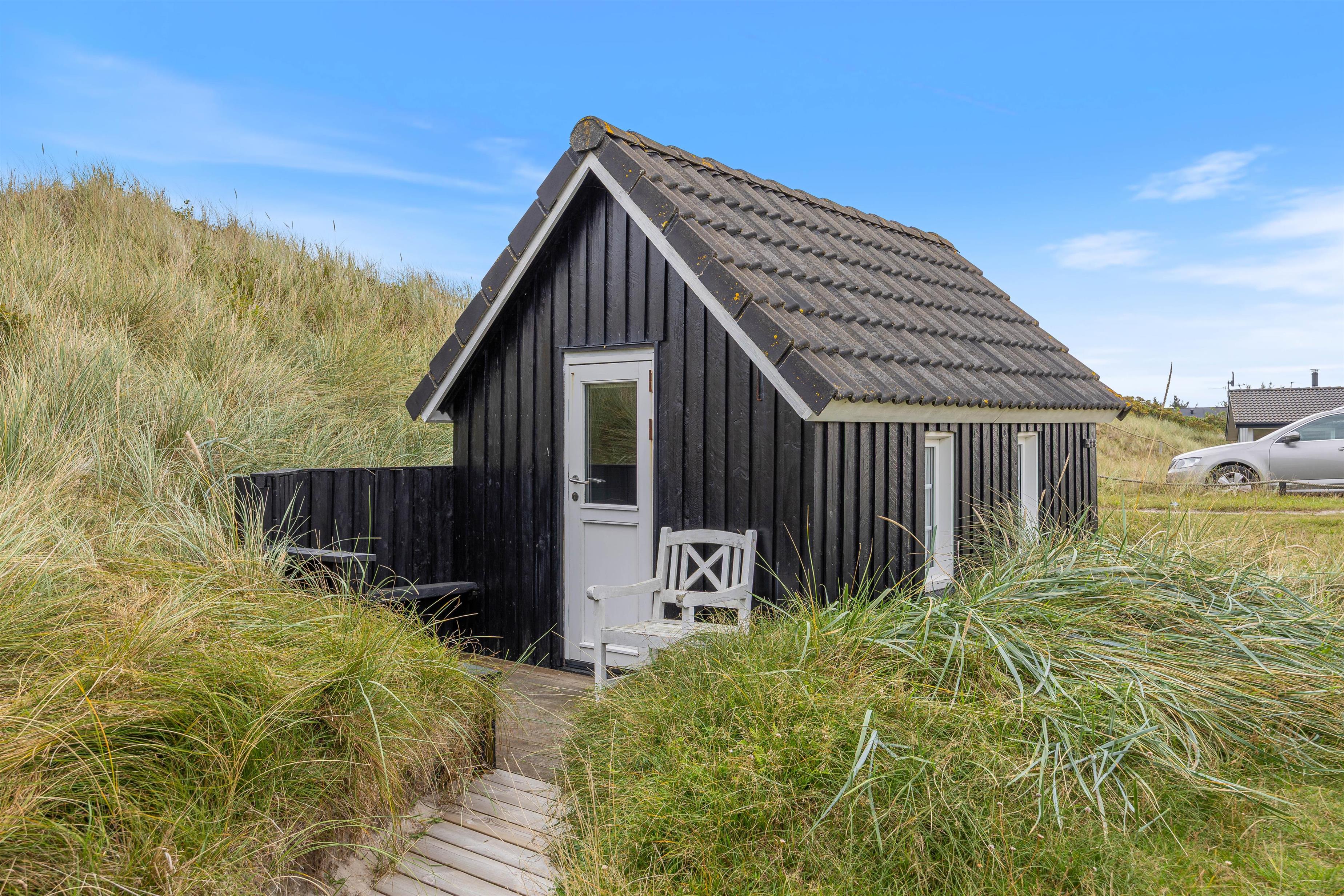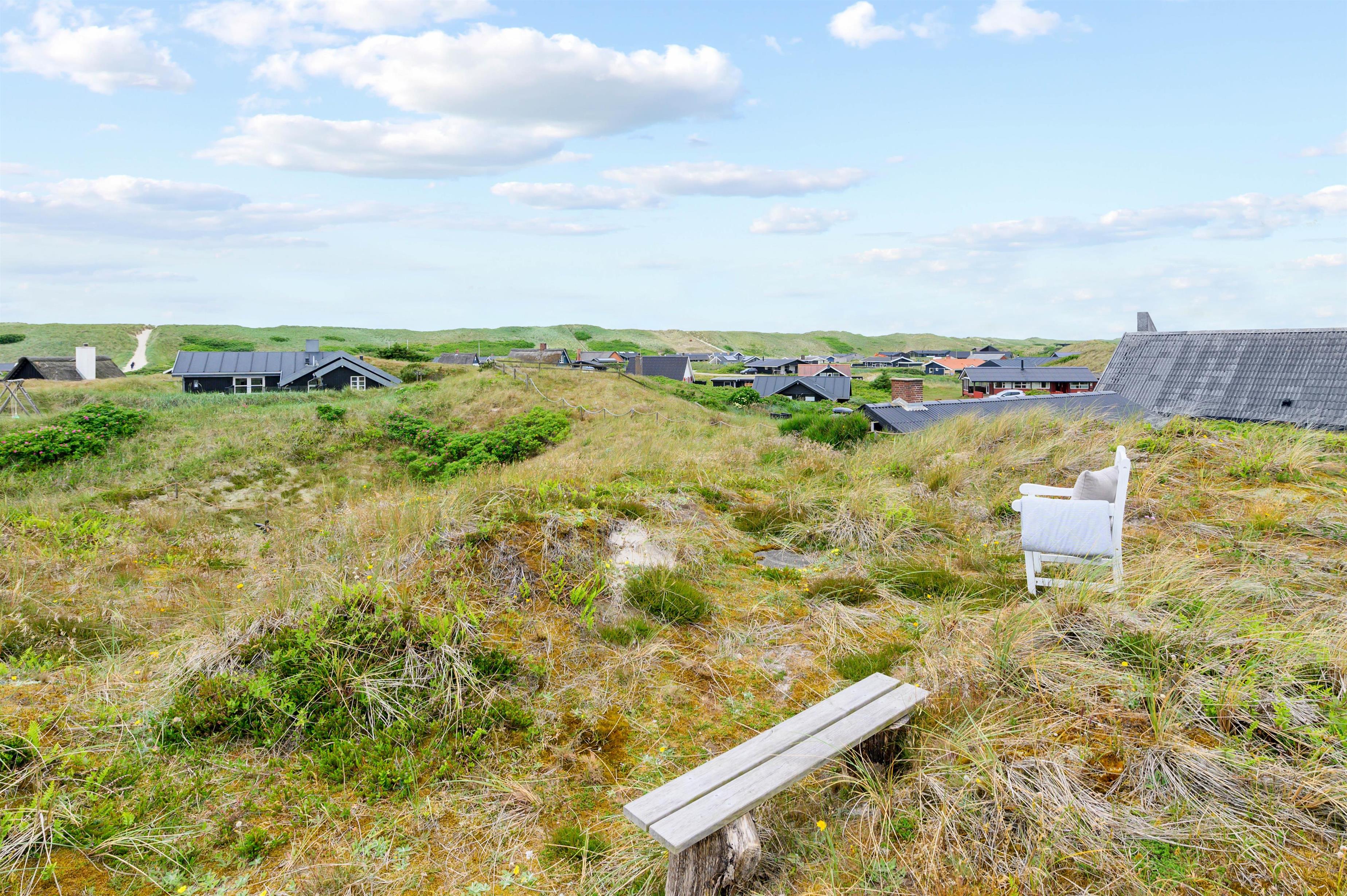 Sommerhuset ligger ugenert på en dejlig klitgrund kun 300 meter fra det herlige Vesterhav, så havets beroligende brusen kan høres fra grunden. Fra sommerhusets kuperede grund er der en flot 360 graders udsigt over området. Her er også en lille udsigtsbænk, hvorfra solnedgangen over sidste klitrække kan nydes.