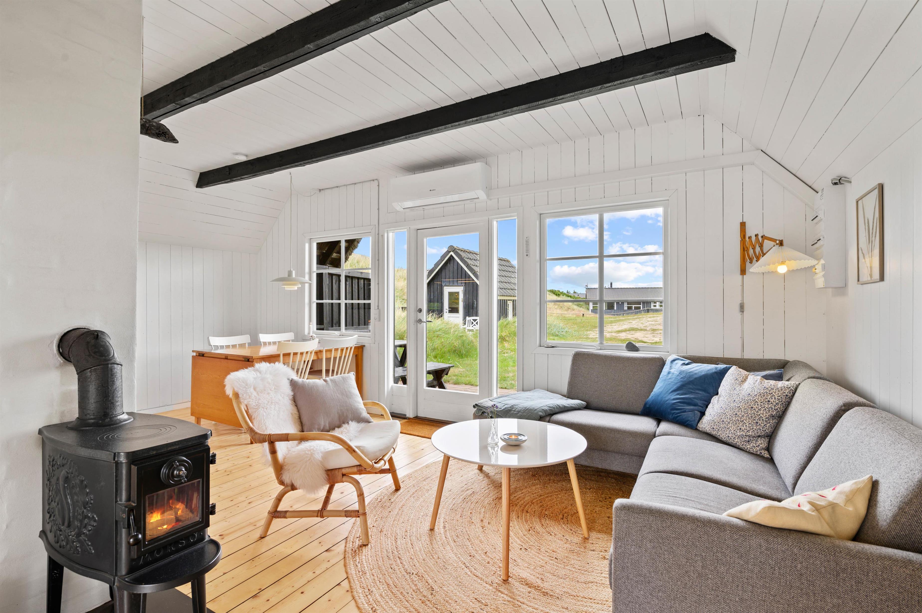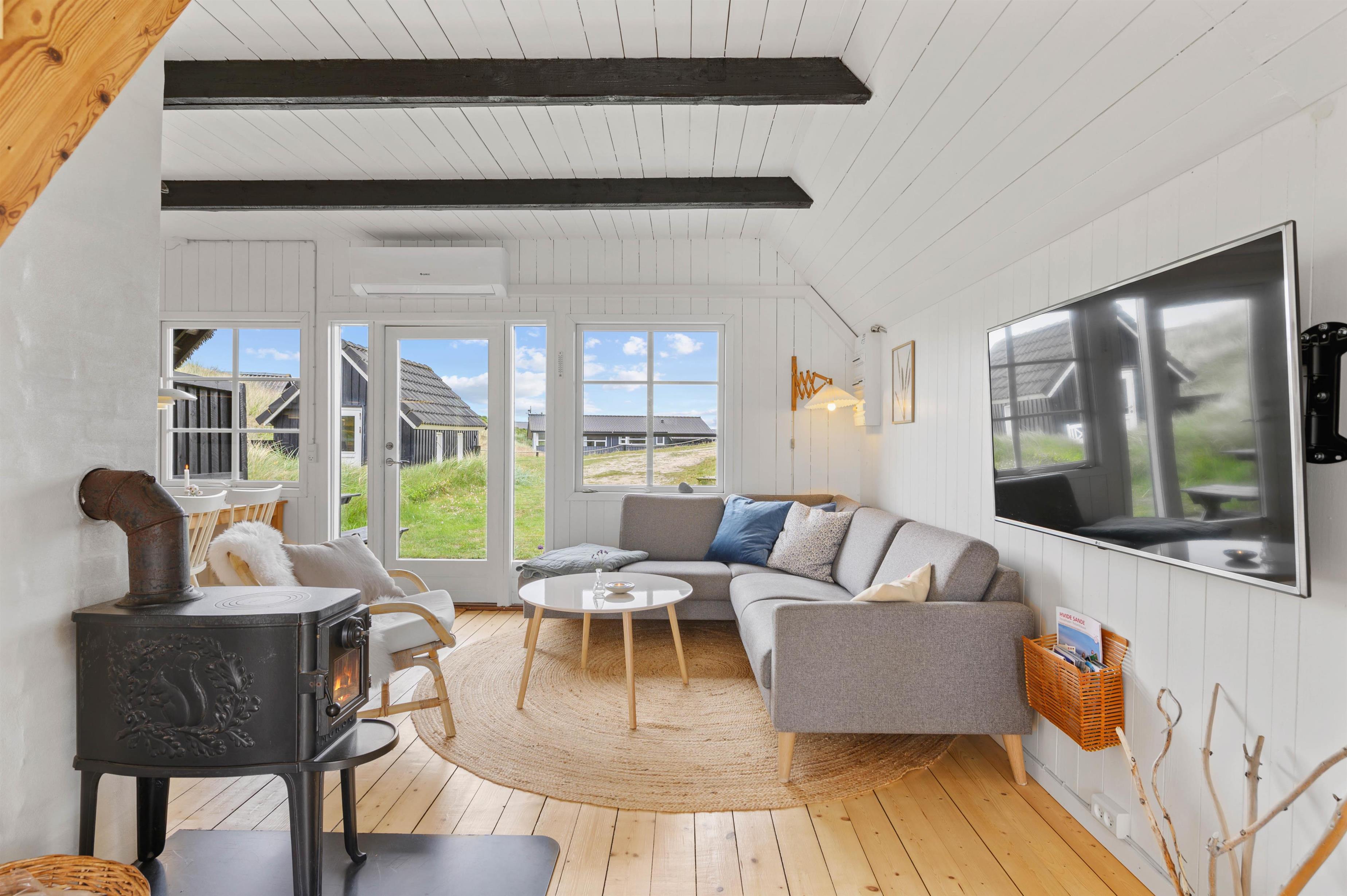 Klitly er et rigtig hyggeligt, stråtækt sommerhus, der i 2022 har gennemgået en omfattende renovering. Sommerhuset fremstår lyst og lækkert i nordisk badehotelstil med klassiske plankegulve og brændeovn men også med alt i moderne faciliteter. Her er blandt andet opvaskemaskine, 50" smart TV, varmepumpe og el-ladestander, så både du og bilen kan blive klar til at udforske det spændende vestjyske område.